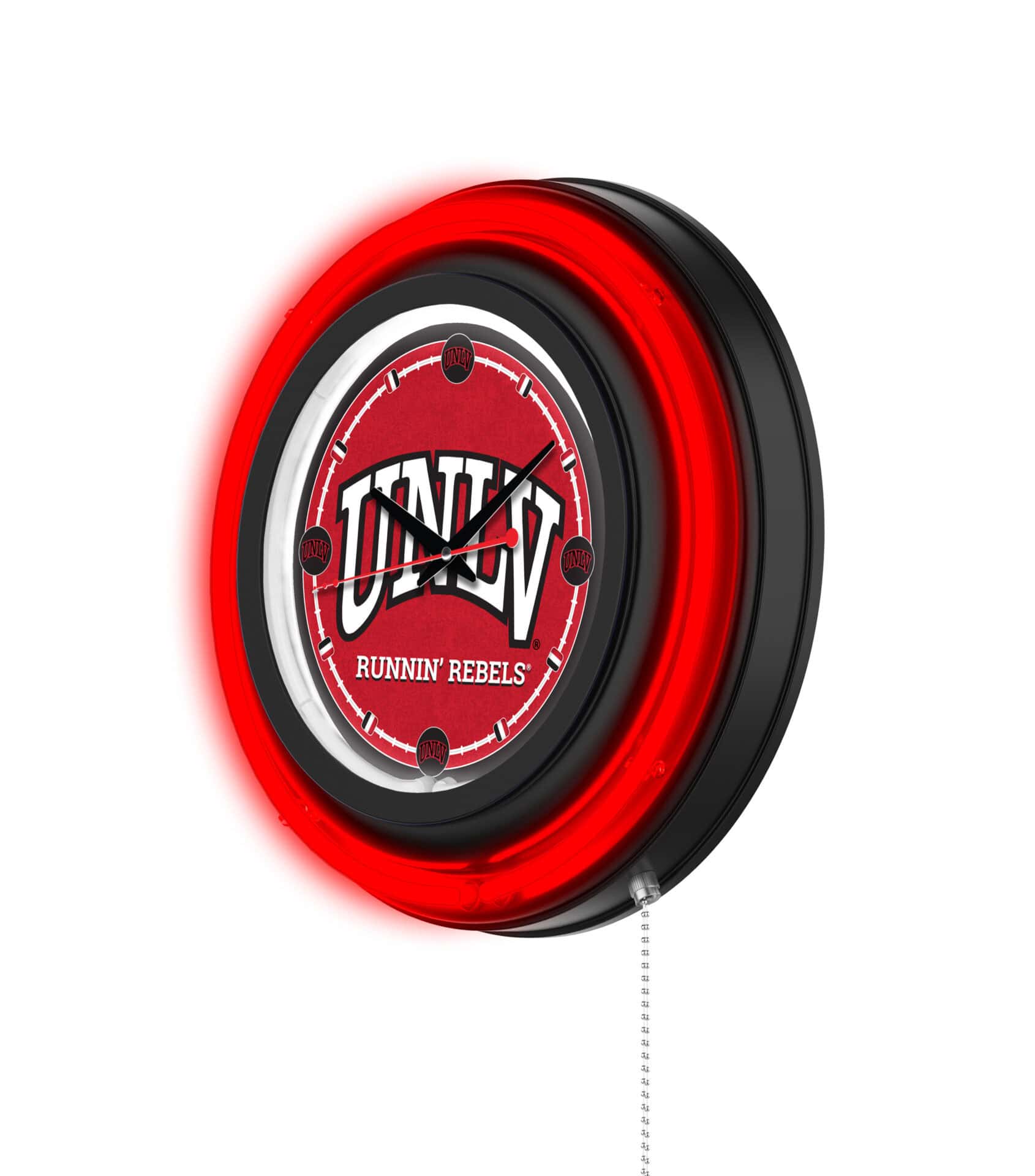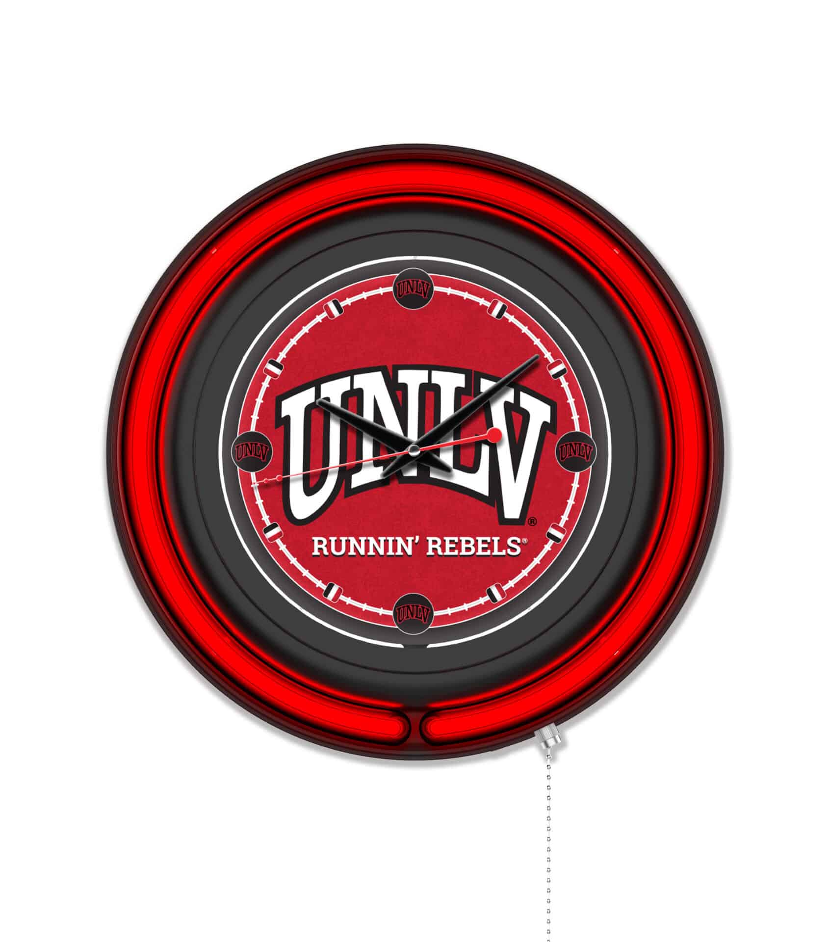 The “University of Nevada Las Vegas 15-Inch Neon Logo Clock in Black” is the perfect addition to any man cave, showcasing your school pride with its vibrant design. Featuring a sleek black casing and a team color-specific neon outer ring, this clock not only tells time but also adds a dynamic touch to your decor. The clock face is illuminated by a brilliant white inner neon ring, creating an eye-catching display. With an easy pull chain for turning the neon lights on and off, this clock combines functionality with style. The accurate quartz movement ensures you’ll always be on time, powered by a single AA battery (not included).