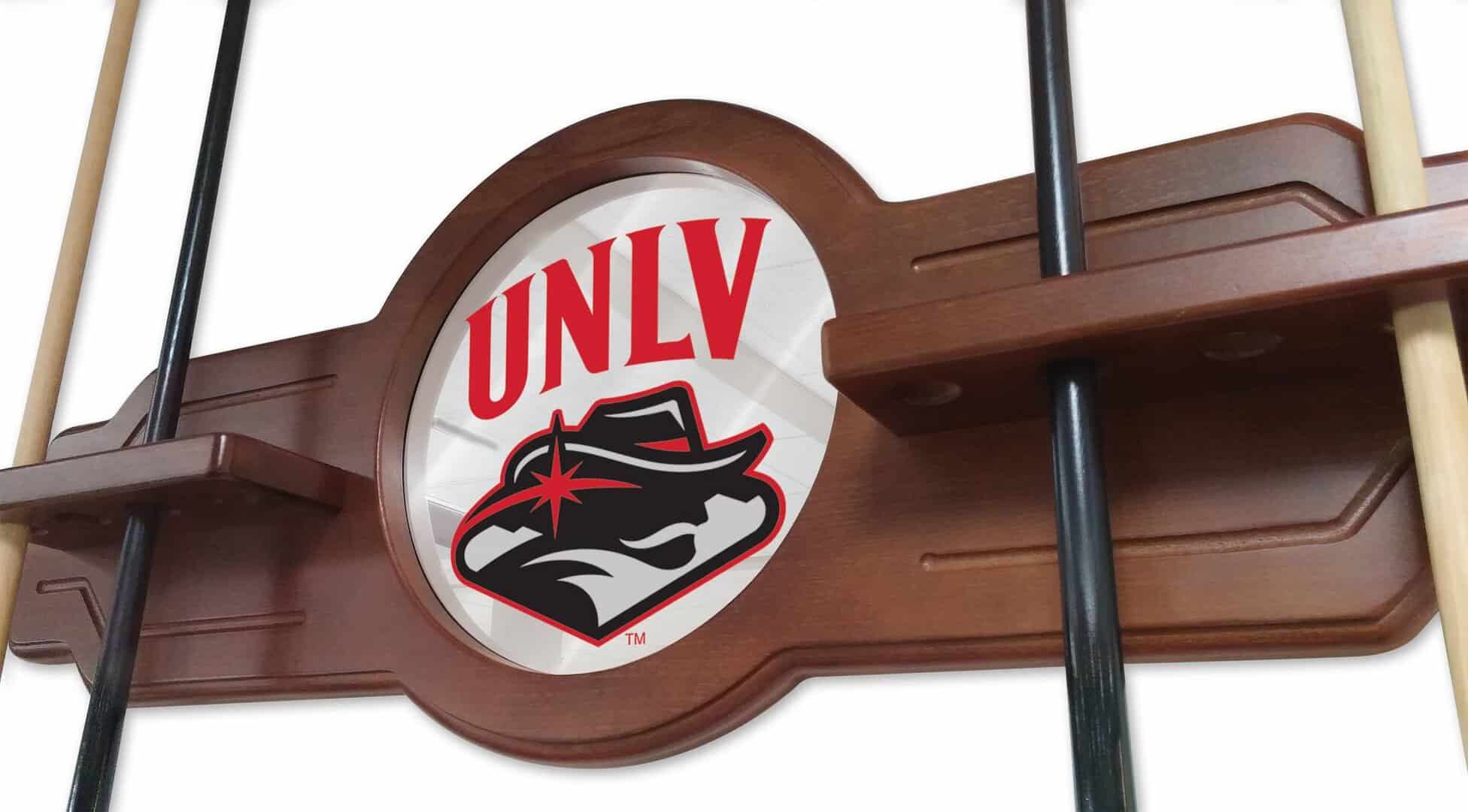 Elevate your game room with the University of Nevada Las Vegas Chardonnay Logo Cue Rack, a premium storage solution for pool enthusiasts. This expertly crafted cue rack offers both functionality and style, designed to securely hold and display your pool cues while showcasing your UNLV pride.