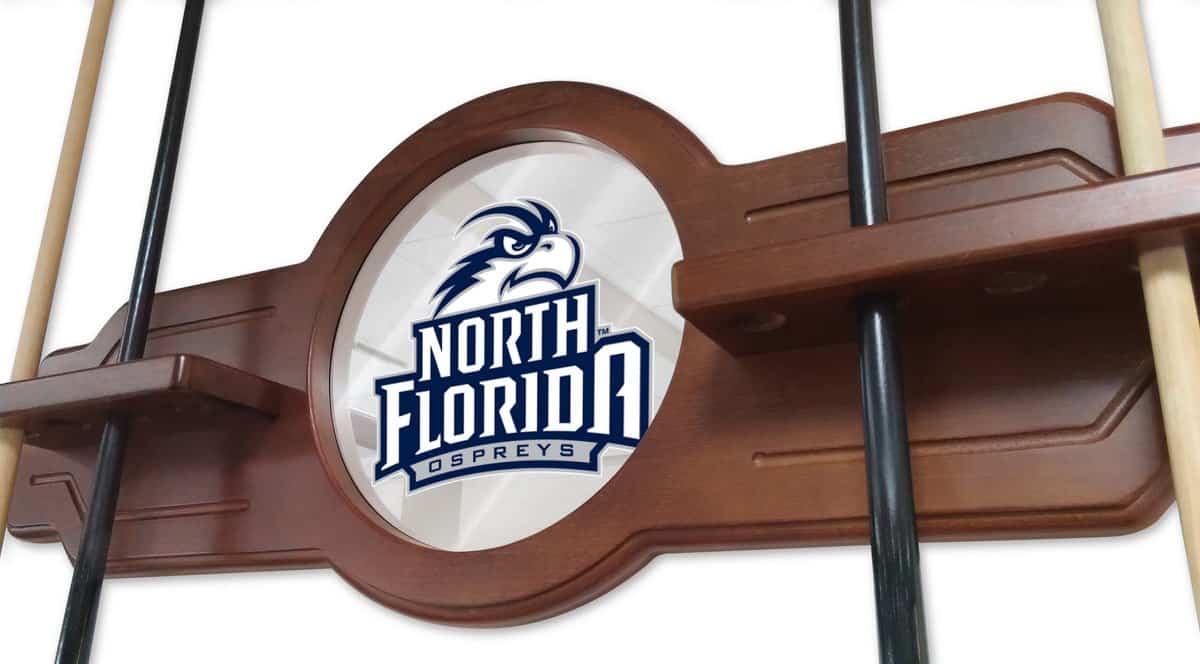 Elevate your game room with this premium University of North Florida Chardonnay Logo Cue Rack. Designed for serious pool enthusiasts, this exceptional cue rack combines functionality and stylish team spirit. Crafted with meticulous attention to detail, this cue rack provides a sophisticated storage solution for your pool cues while showcasing your university pride.