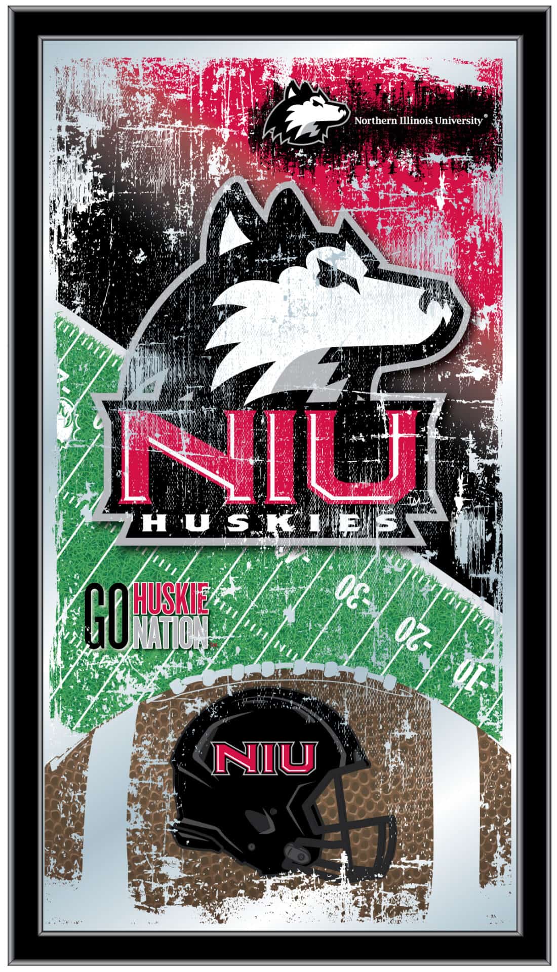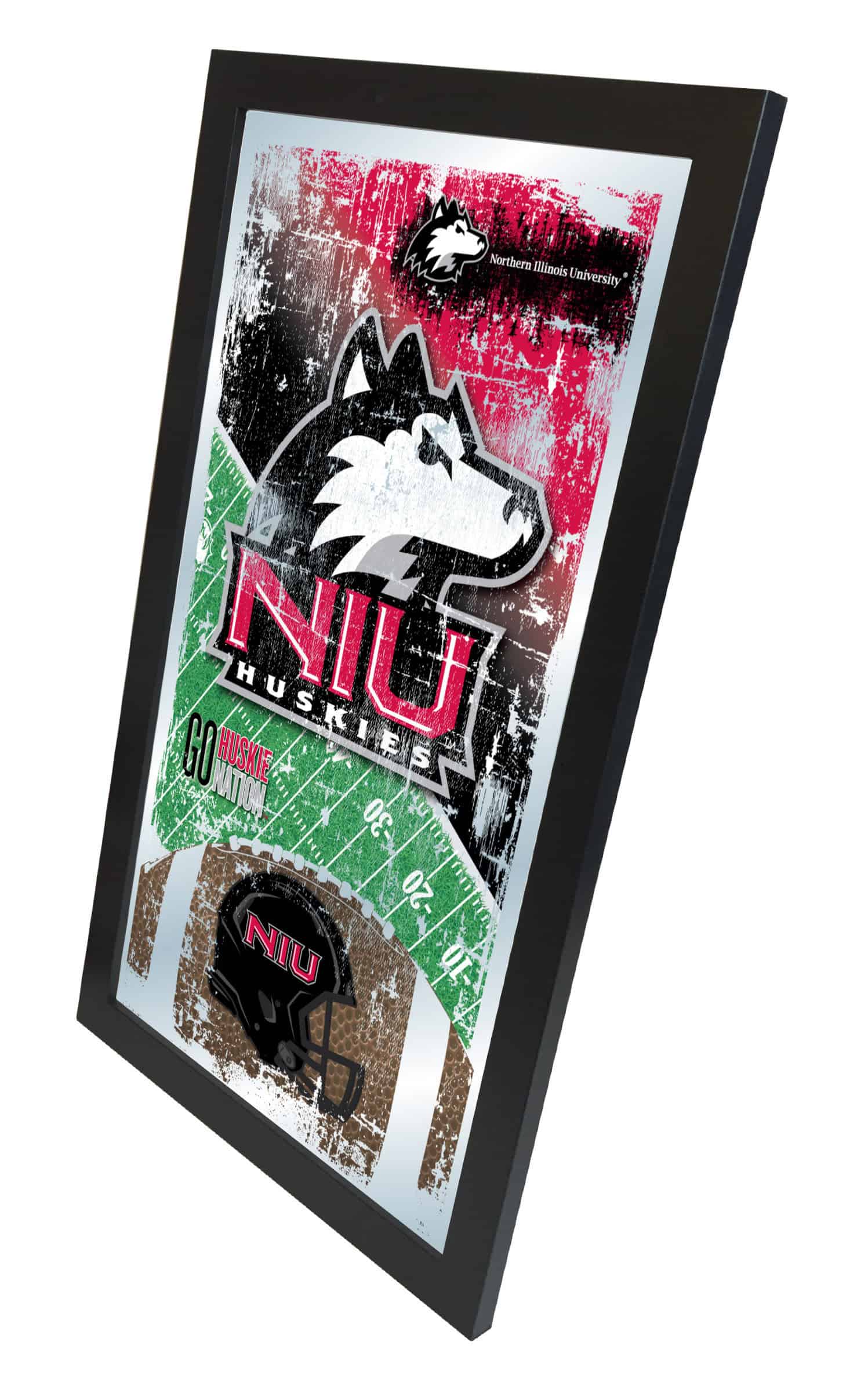 Show your school pride with the Official Licensed University of Northern Illinois 15×26 Football Wall Mirror. This mirror features a simple yet elegant design that showcases vibrant colors through the 1/8″ thick glass, enhanced by mirrored accents. Framed in a stylish black wood frame, this mirror is perfect for your office, garage, or any room in your home. Whether you’re buying it as a gift for a recent graduate, a sports super fan, or treating yourself, this mirror is a great choice to celebrate your team spirit.