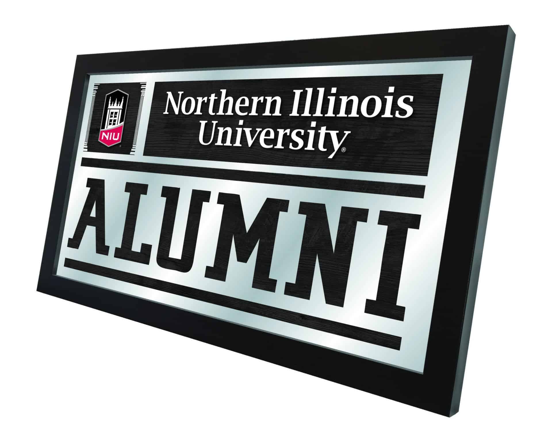 Show your school pride with the University of Northern Illinois 26×15 Alumni Wall Mirror. This mirror features a simple yet elegant design, allowing your school colors to shine through the 1/8″ thick glass that is enhanced by mirrored accents. The mirror is framed with a black, 1 1/4″ wrapped wood frame and includes saw tooth hangers for easy installation. Measuring 26 inches high by 15 inches wide, this mirror is perfect for your office, garage, or any room in your home. Whether you’re treating yourself or gifting a recent graduate, this mirror represents quality and school spirit.