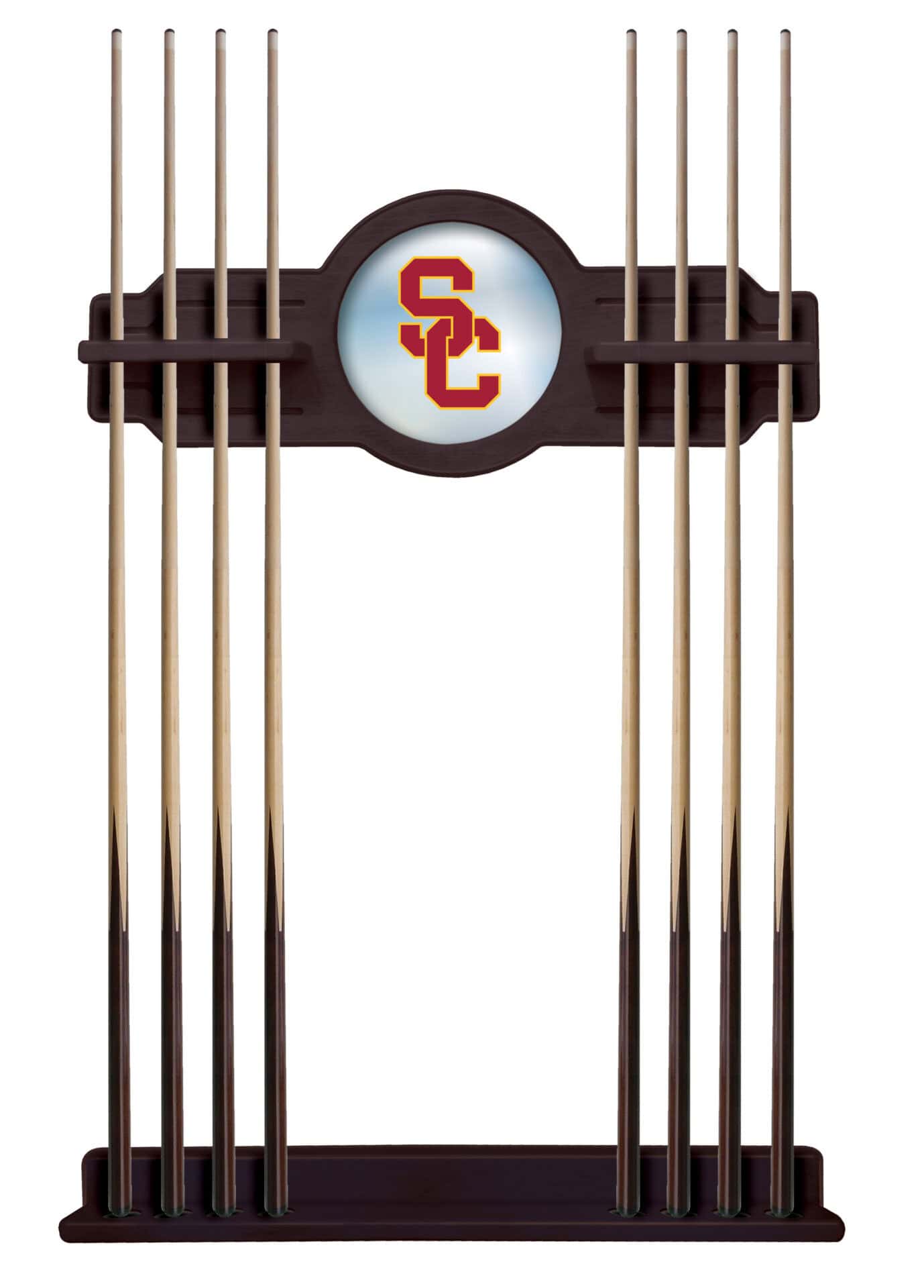 Elevate your game room with the University of Southern California English Tudor Logo Cue Rack, a premium pool table accessory designed for passionate sports fans and billiards enthusiasts. This exceptional cue rack combines superior craftsmanship, elegant design, and team pride in one stunning piece of furniture.