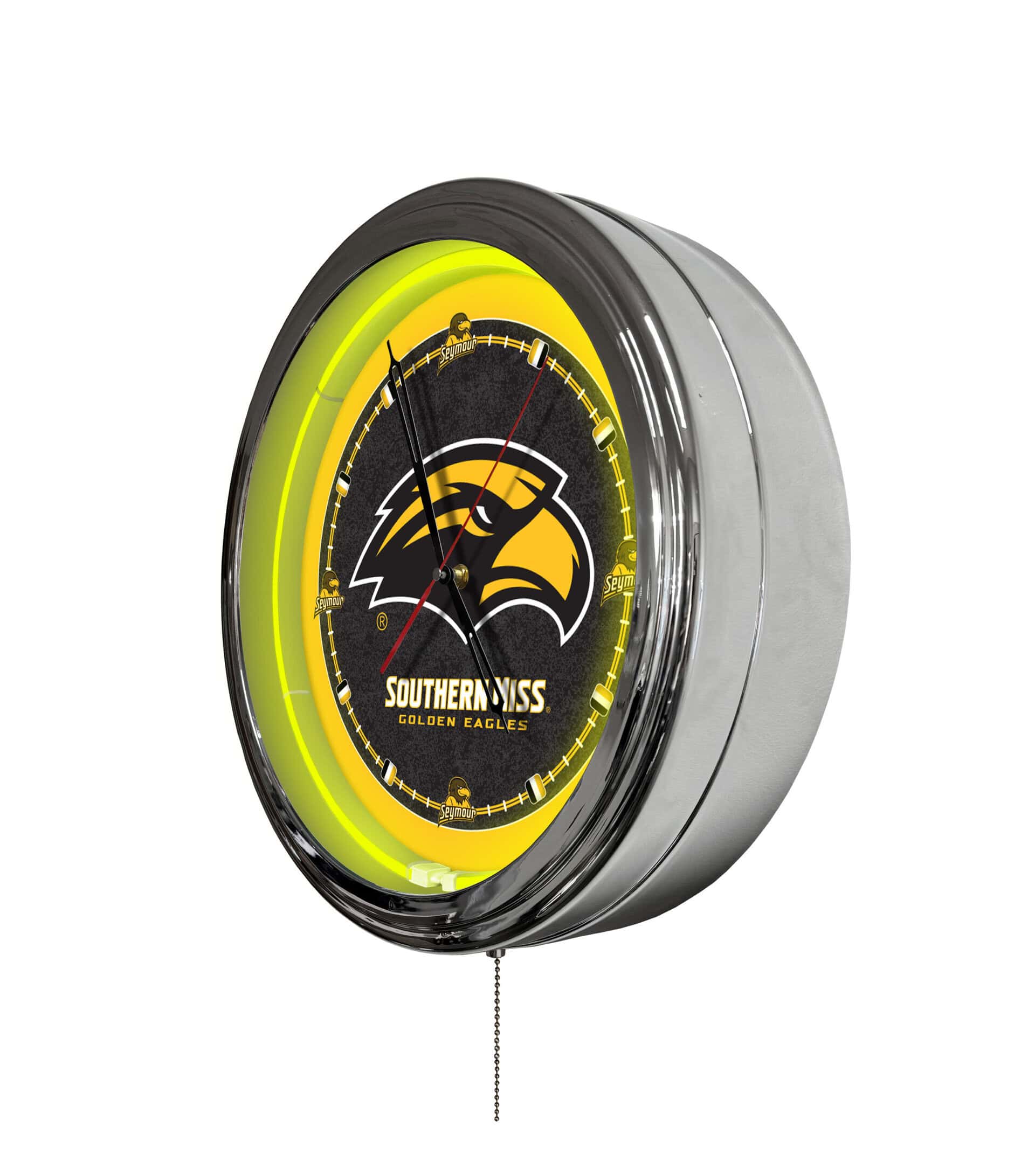 The University of Southern Mississippi 16-Inch LED Wall Clock in Chrome is a stunning addition to any man cave, showcasing vibrant logos with a modern twist. This clock combines functionality with style, featuring a multi-color LED display that enhances your space with a variety of eye-catching colors. With 20 static colors and 19 dynamic modes, you can easily adapt the ambiance to suit any occasion. The included wireless remote provides hassle-free control over colors, modes, speed, and brightness, making it perfect for any event.