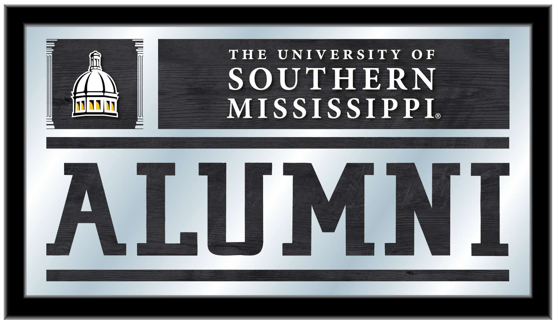 Show your school pride with the University of Southern Mississippi 26×15 Alumni Wall Mirror. Featuring a simple yet elegant design, this mirror showcases your school colors through a vibrant, full-color artwork that is officially licensed. The mirror is crafted with 1/8″ thick glass and mirrored accents, framed with a stylish black wood frame. Measuring 26″ in height and 15″ in width, it is perfect for decorating your office, garage, or any room in your home. Ideal as a gift for a recent graduate or a personal addition, this mirror offers both style and functionality.