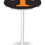 Upgrade your bar, game room, or man cave with this high-quality 42-inch pub table. Designed for durability and style, it features a vibrant, full-color sublimated laminate top that resists scratches and stains. The sturdy, triple chrome-plated base ensures exceptional stability and a sleek, polished finish. Easy to assemble and equipped with adjustable feet, this table is perfect for any floor surface, making it a versatile addition to your space.