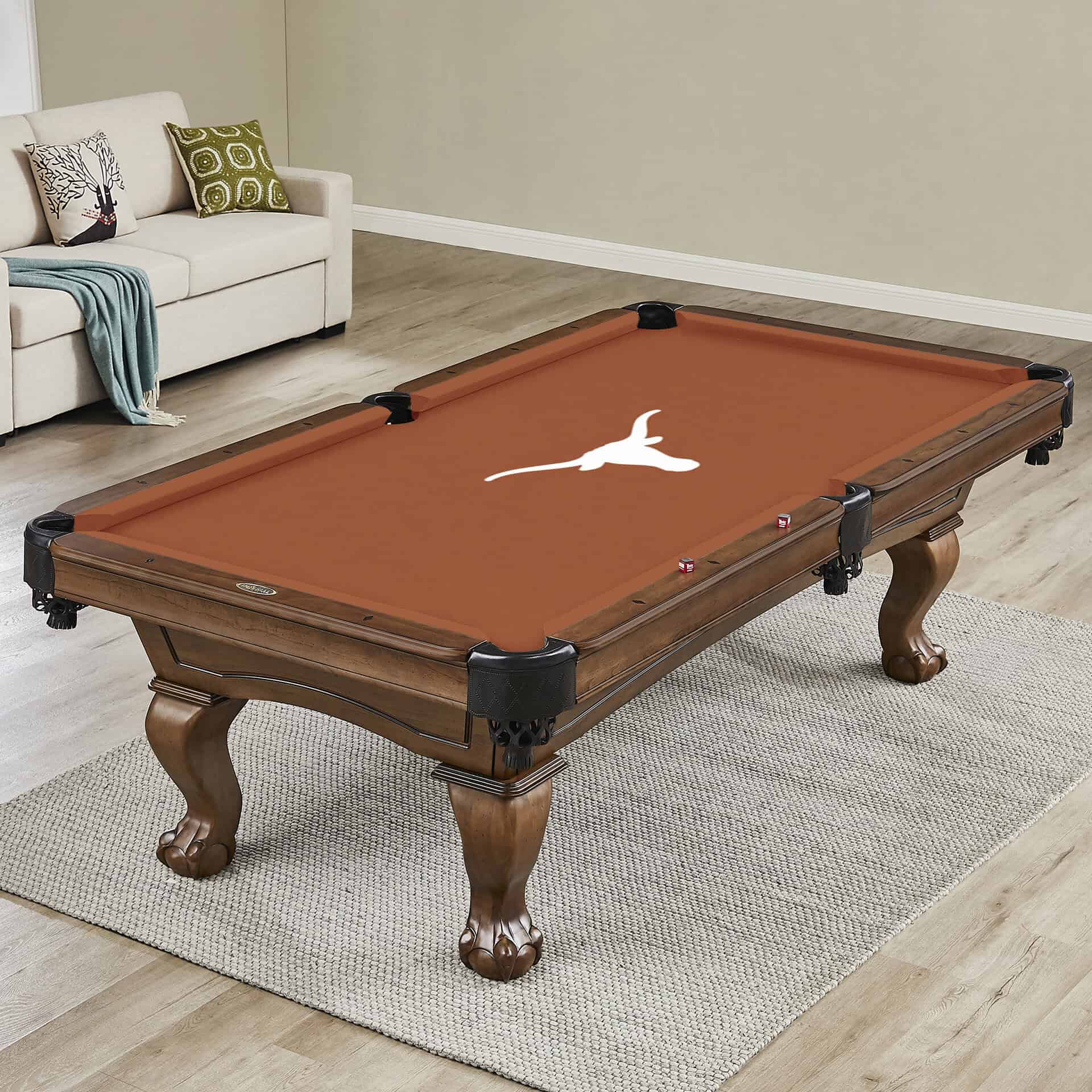 - Officially licensed Texas Longhorns pool table cloth.