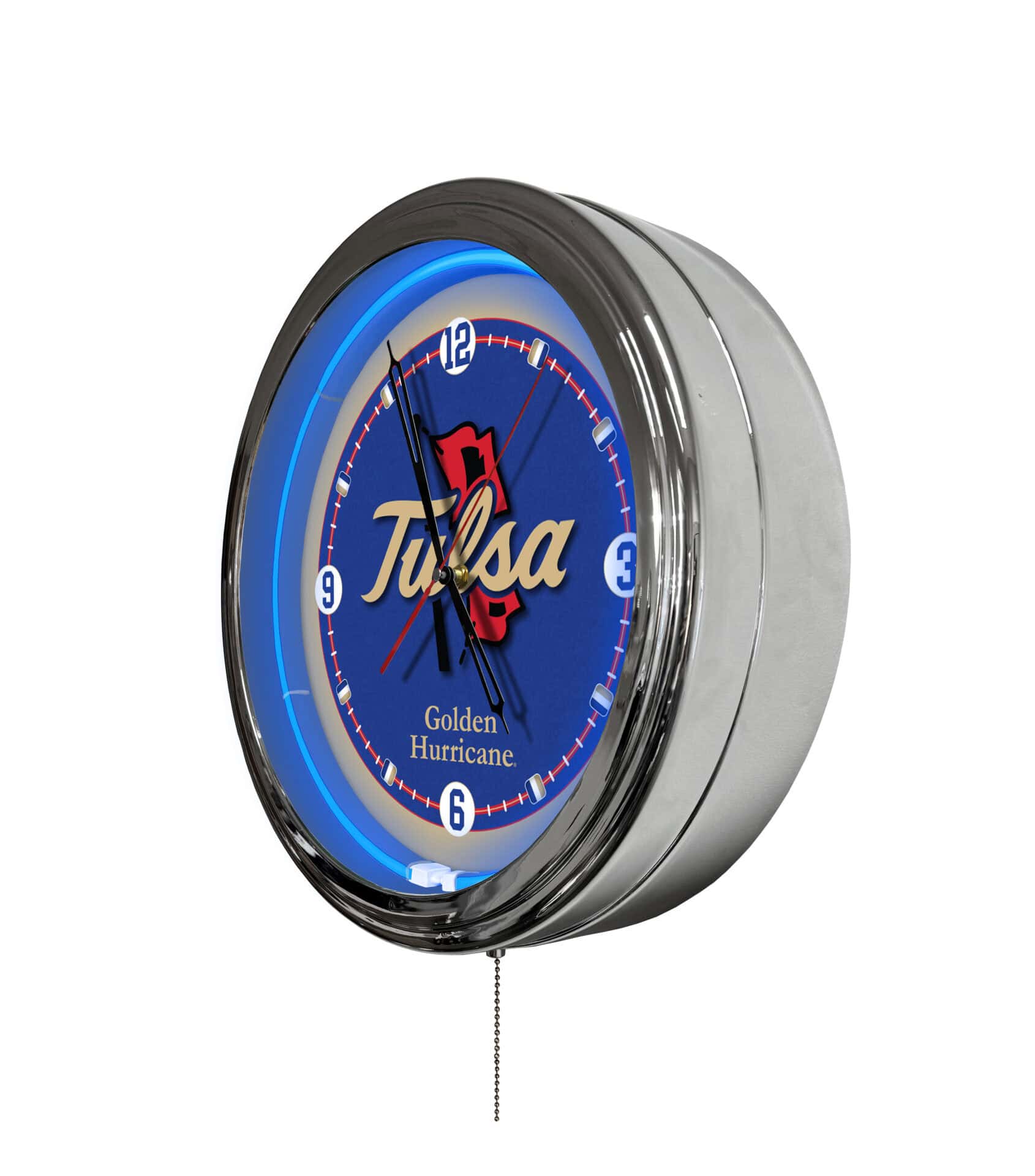 The University of Tulsa 16-Inch LED Wall Clock in Chrome is a stylish and functional addition to your space, perfect for showcasing your team spirit. This high-quality clock features a vibrant multi-color LED design that brings your favorite logo to life with 20 static colors and 19 dynamic modes. Its sleek chrome casing and adjustable brightness make it an eye-catching piece that can easily adapt to any atmosphere, whether in a man cave or game room.