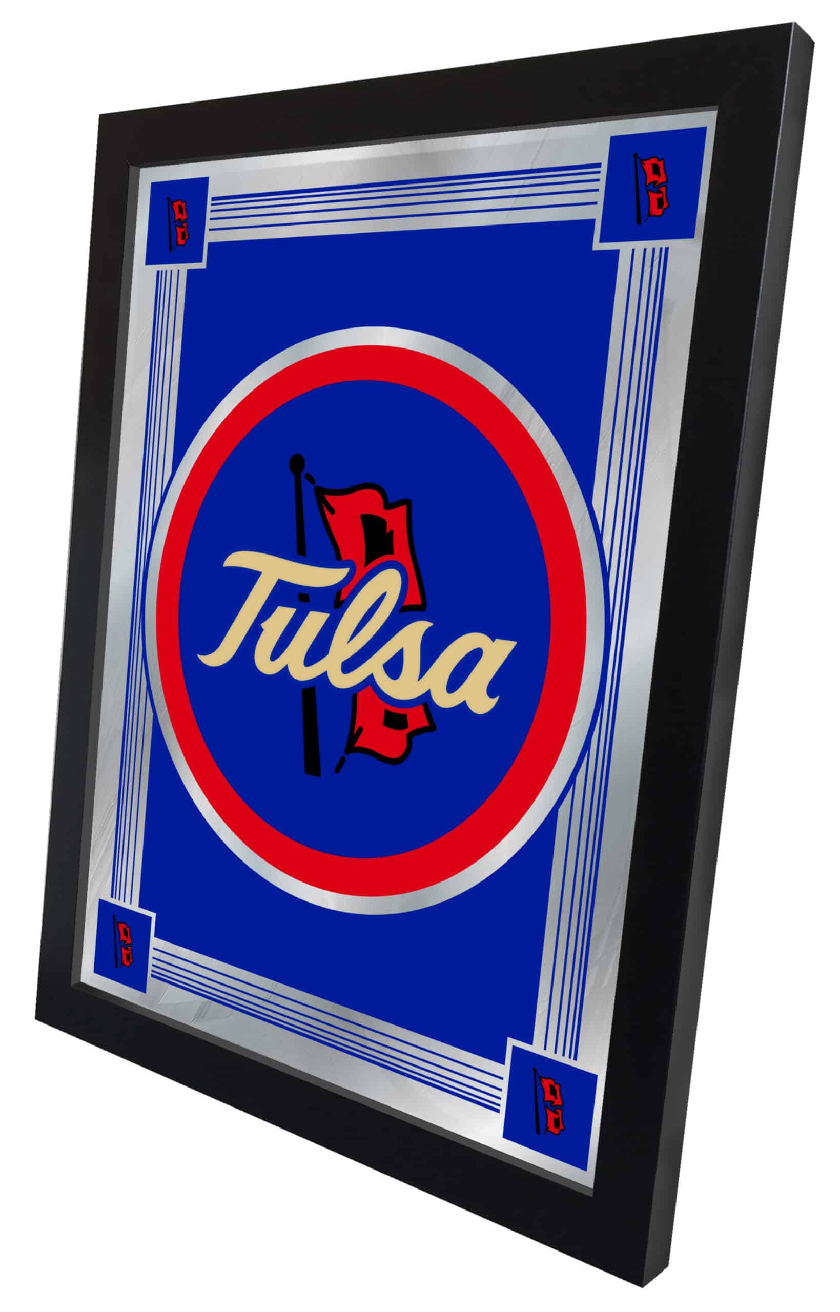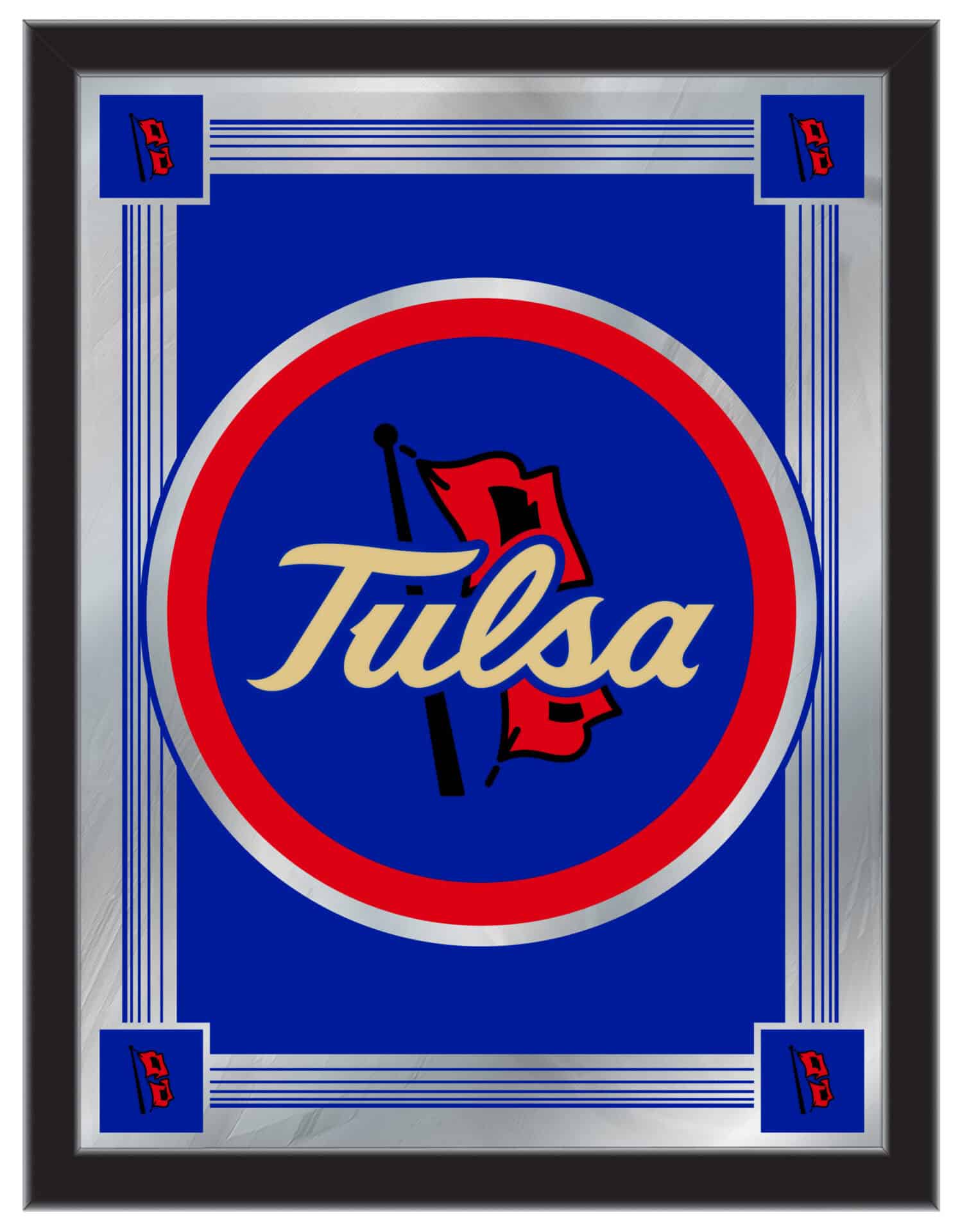 Show your school pride with this Official Licensed Logo Mirror. Featuring a simple yet elegant design, the vibrant colors burst through the 1/8″ thick glass and are beautifully highlighted by the mirrored accents. This mirror is framed with a sleek black, 1 1/4″ wrapped wood frame and includes saw tooth hangers for easy installation. Measuring 17″ in width and 22″ in height, it is perfect for your office, garage, or any room in your home. Whether you’re purchasing it as a gift for a recent graduate, a sports superfan, or for yourself, you can take pride in knowing you’re choosing a quality product.
