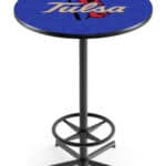 Elevate your bar, game room, or man cave with this high-quality 42-inch pub table. Designed for durability and style, this pub table features a scratch-resistant, vibrant laminate top showcasing a full-color design and a sturdy star base with a sleek black wrinkle powder-coated finish. Its commercial-grade steel construction ensures long-lasting stability, even under heavy use, while the adjustable floor glides allow for a steady table on uneven surfaces. Easy to assemble and maintain, this table is a perfect addition to your space, offering both functionality and aesthetic appeal.