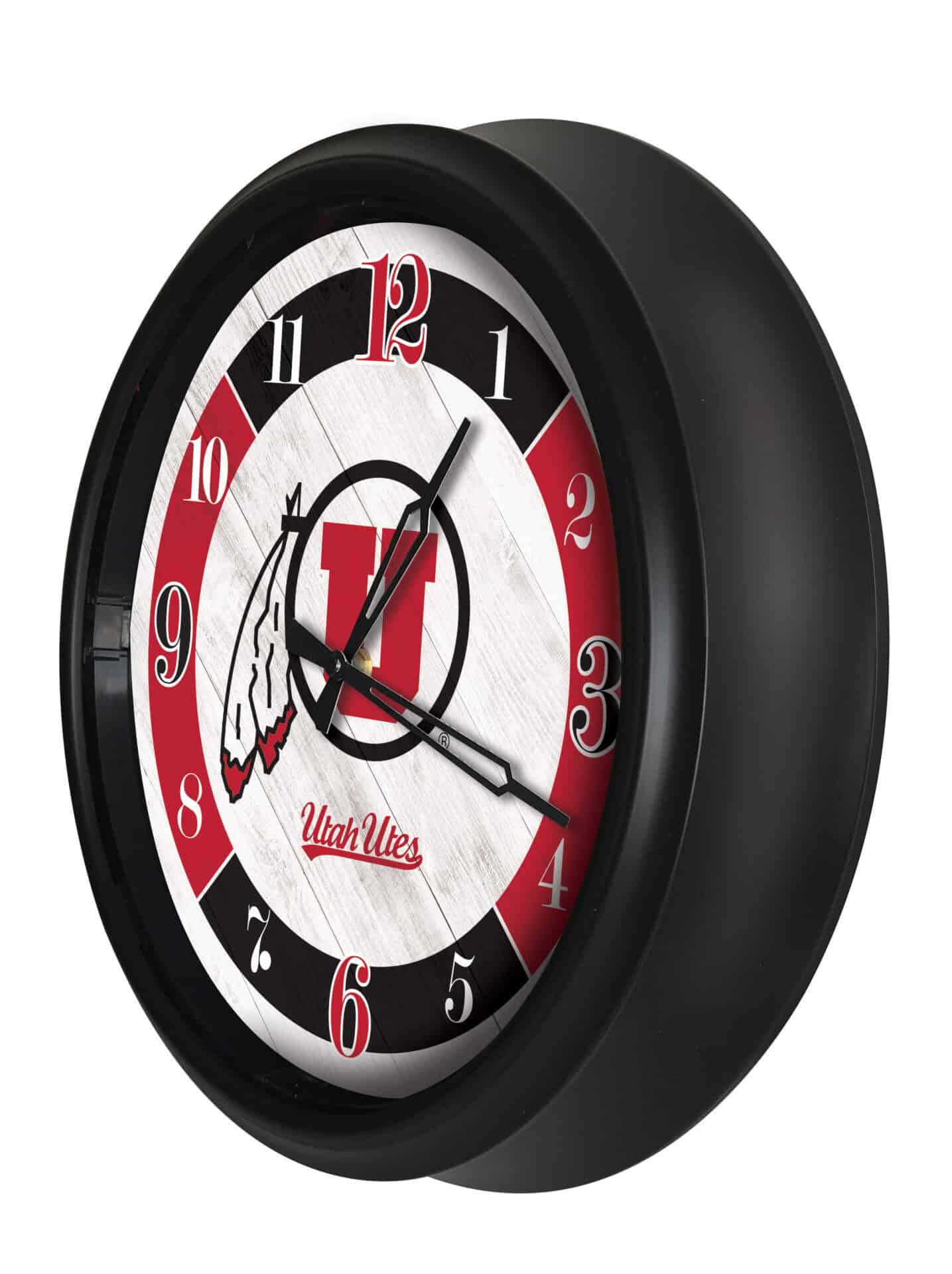 The University of Utah 14-Inch Indoor/Outdoor LED Wall Clock in Black is the ideal addition to any fan’s space, combining functionality with team spirit. This clock is designed to withstand outdoor conditions while showcasing vibrant, fade-resistant artwork. Featuring a strong UV resistant casing and an illuminated face that activates automatically in low light, this clock ensures you never miss a moment. Perfect for your man cave, patio, or as a gift, this clock is a must-have for any dedicated sports enthusiast.