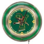 The University of Vermont 15-Inch Neon Logo Clock in Chrome is the ultimate addition to any man cave, showcasing your school pride with style. This clock features a stunning chrome casing and vibrant team-colored neon rings that illuminate the custom printed clock face with a brilliant white inner light. Easily control the neon illumination with a convenient pull chain, making it perfect for any occasion. The accurate quartz movement ensures you’ll always be on time, powered by a single AA battery (not included). Ideal as a gift for graduates, sports fans, or for personal use, this clock combines functionality with a striking design.