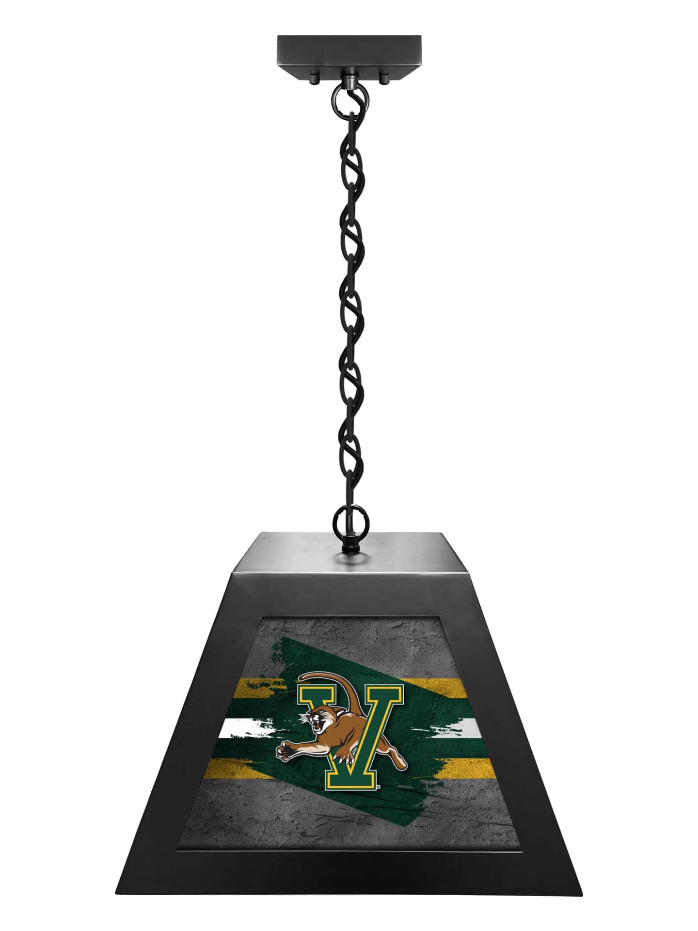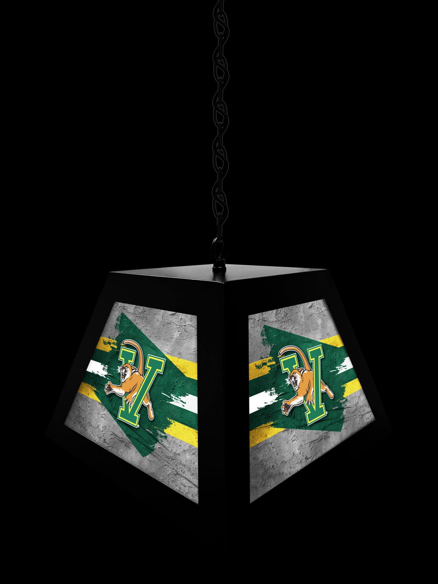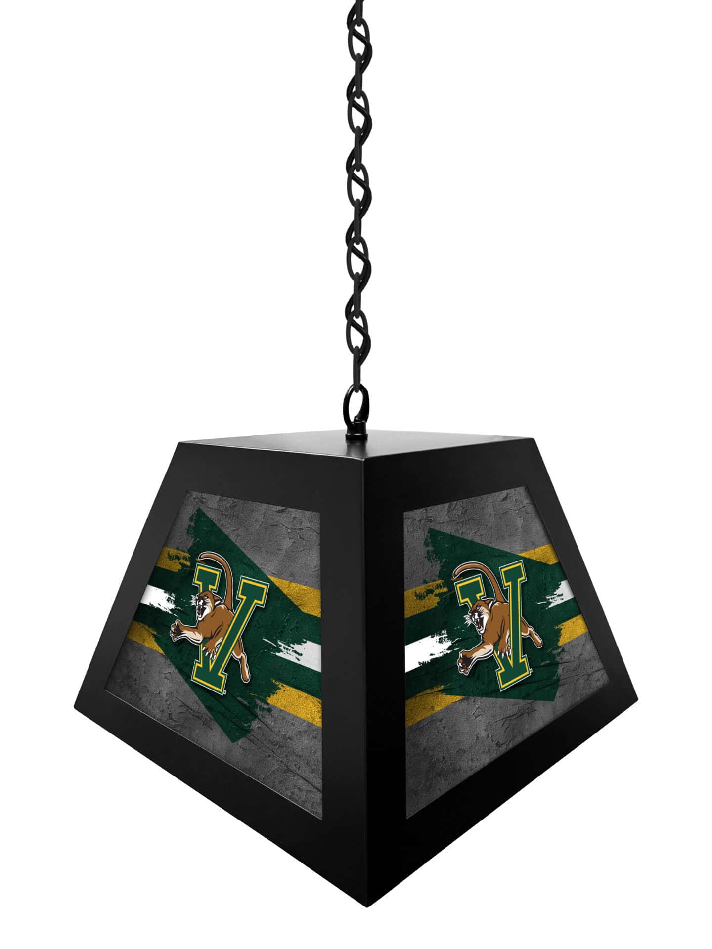 Brighten up your game room, bar, or pub table with the University of Vermont Pendant Box Light! This stylish and durable light fixture features a metal frame construction and a bright backlit design, making it the perfect addition to any space. Showcase your team pride while providing excellent illumination for your favorite games and activities.