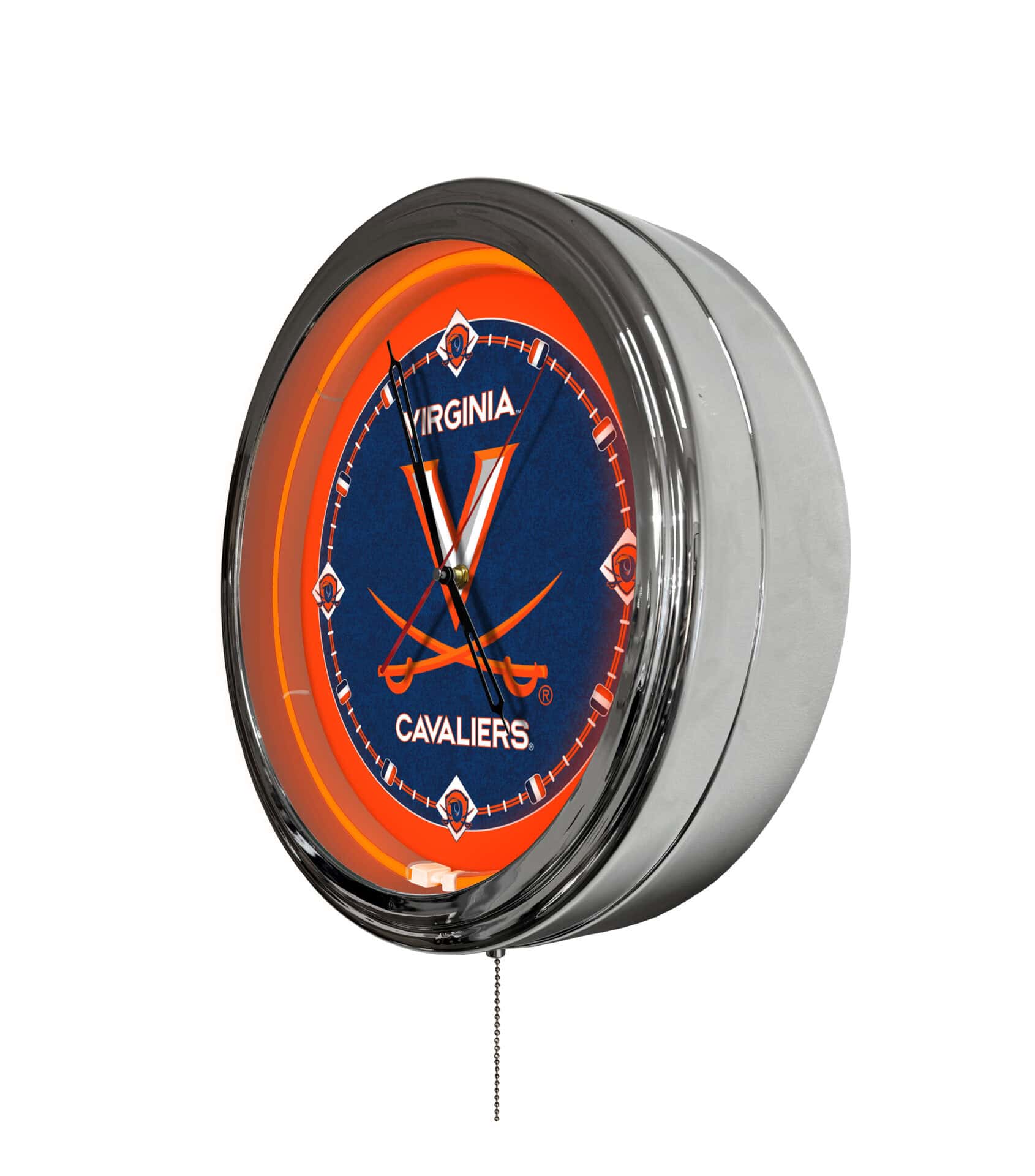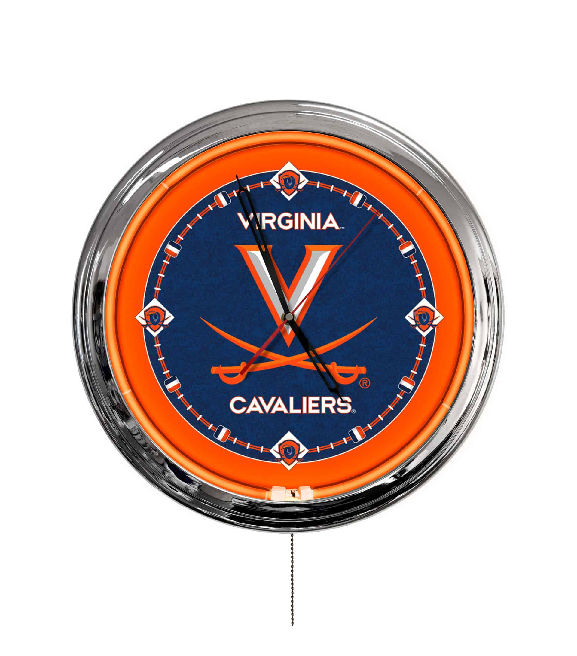 This University of Virginia 16-Inch LED Wall Clock in Chrome combines modern style with functionality, making it the perfect addition to any man cave. With its sleek chrome casing and vibrant multi-color LED illumination, this clock not only tells time but also enhances your space with a touch of personality. Featuring 20 static colors and 19 dynamic modes, you can easily adapt the ambiance to suit any occasion. The included wireless remote allows for seamless transitions in color, speed, and brightness, providing a truly customizable experience.