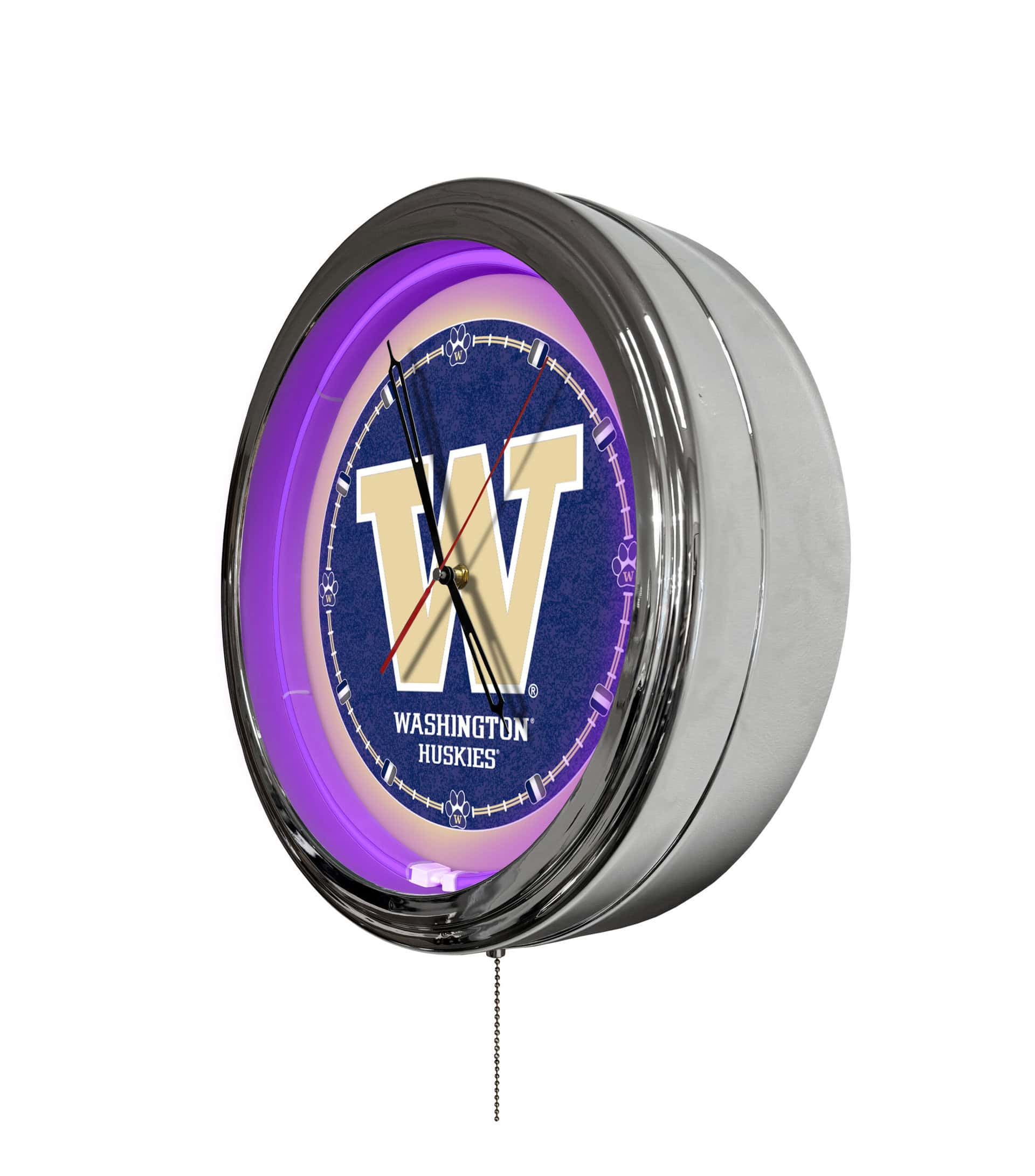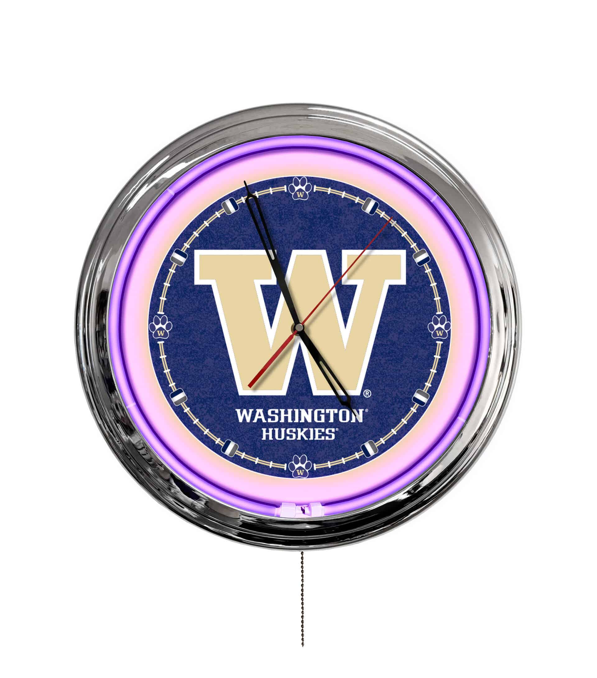 The University of Washington 16-Inch LED Wall Clock in Chrome is a stylish and functional addition to any man cave. This innovative clock features a vibrant multi-color LED display that lights up your favorite team logo against a sleek chrome casing. With its variety of colors and dynamic modes, you can easily set the mood for any occasion. The clock’s adjustable speed and brightness, along with a wireless remote, provide convenient control, making it perfect for parties or relaxing evenings at home.