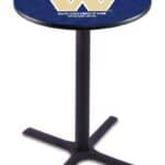 Enhance your bar, game room, or man cave with this premium 42-inch pub table featuring a 36-inch top and a sturdy cross base. Designed for both durability and style, this table adds a touch of sophistication to any setting. Its vibrant, scratch-resistant laminate top ensures long-lasting quality and easy maintenance. The commercial-quality cross base, finished with a sleek black wrinkle powder coating, provides exceptional stability and strength, making it perfect for any space.