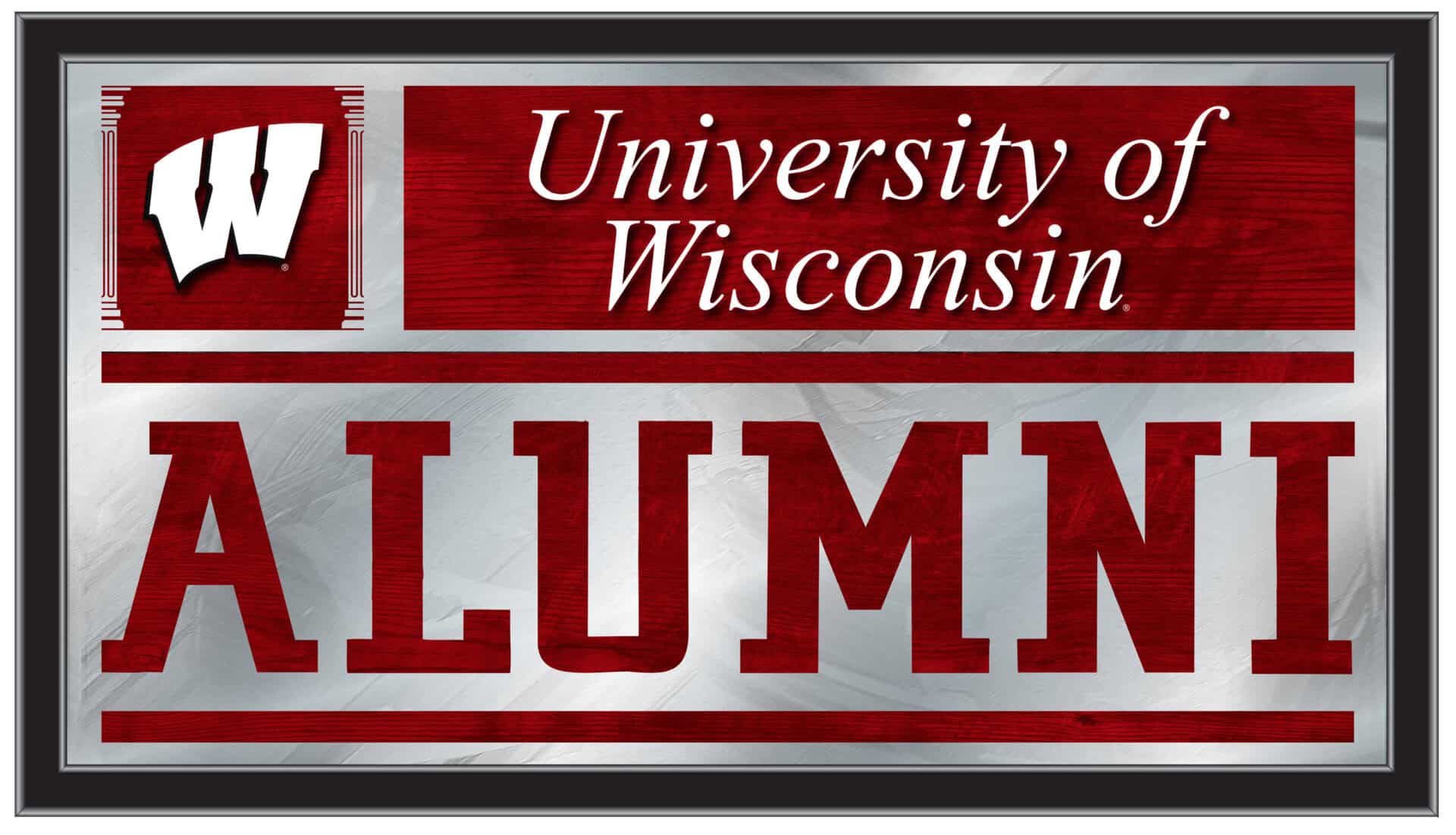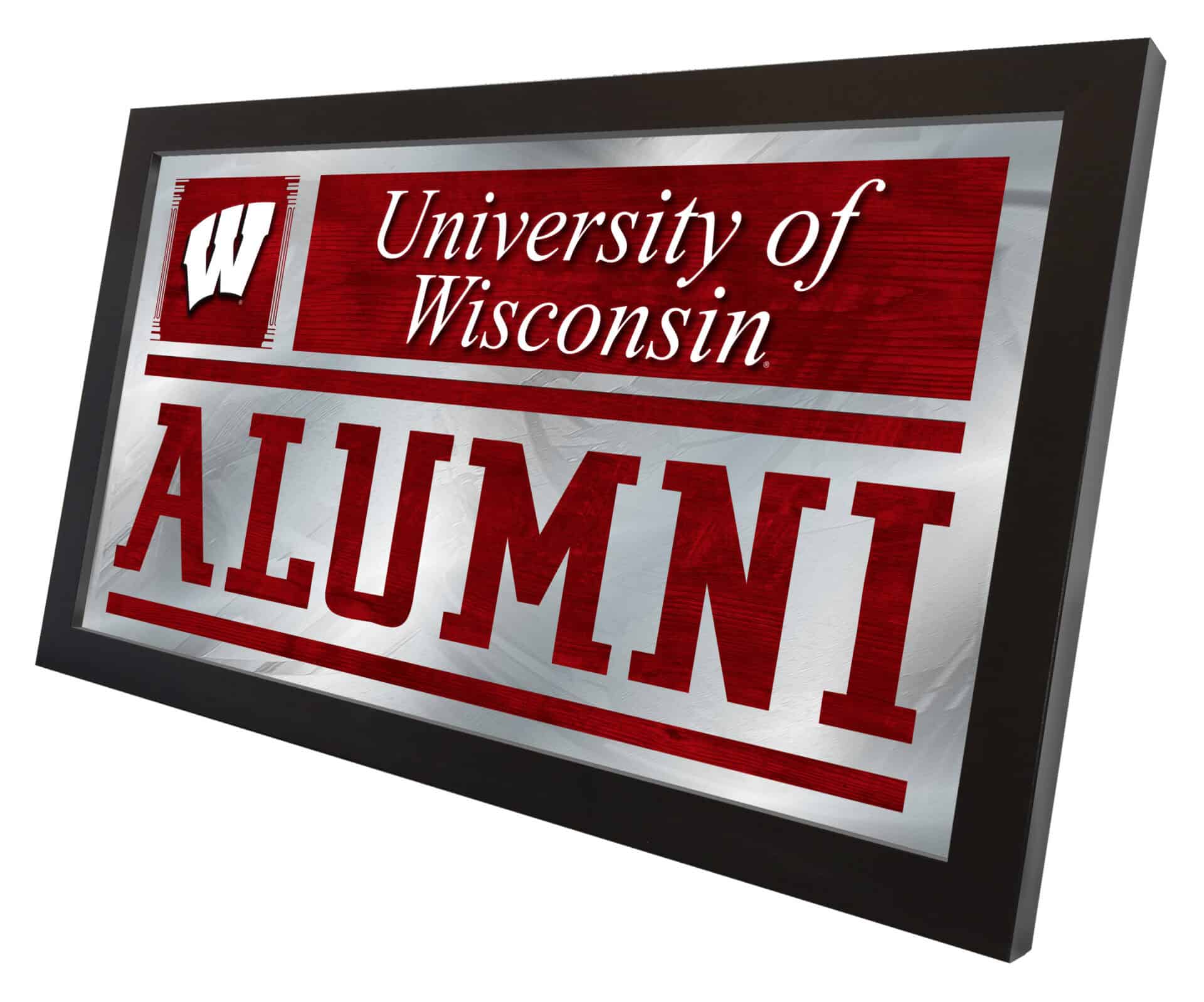 Show your school pride with the University of Wisconsin 26×15 Alumni Wall Mirror. With its simple yet elegant design, your school colors burst through the 1/8″ thick glass and are beautifully highlighted by mirrored accents. This mirror is framed with a sleek black, 1 1/4″ wrapped wood frame featuring saw tooth hangers, making it ideal for your office, garage, or any room in your home. Whether you’re purchasing it as a gift for a recent grad or for yourself, you can take satisfaction knowing you’re choosing a high-quality mirror.