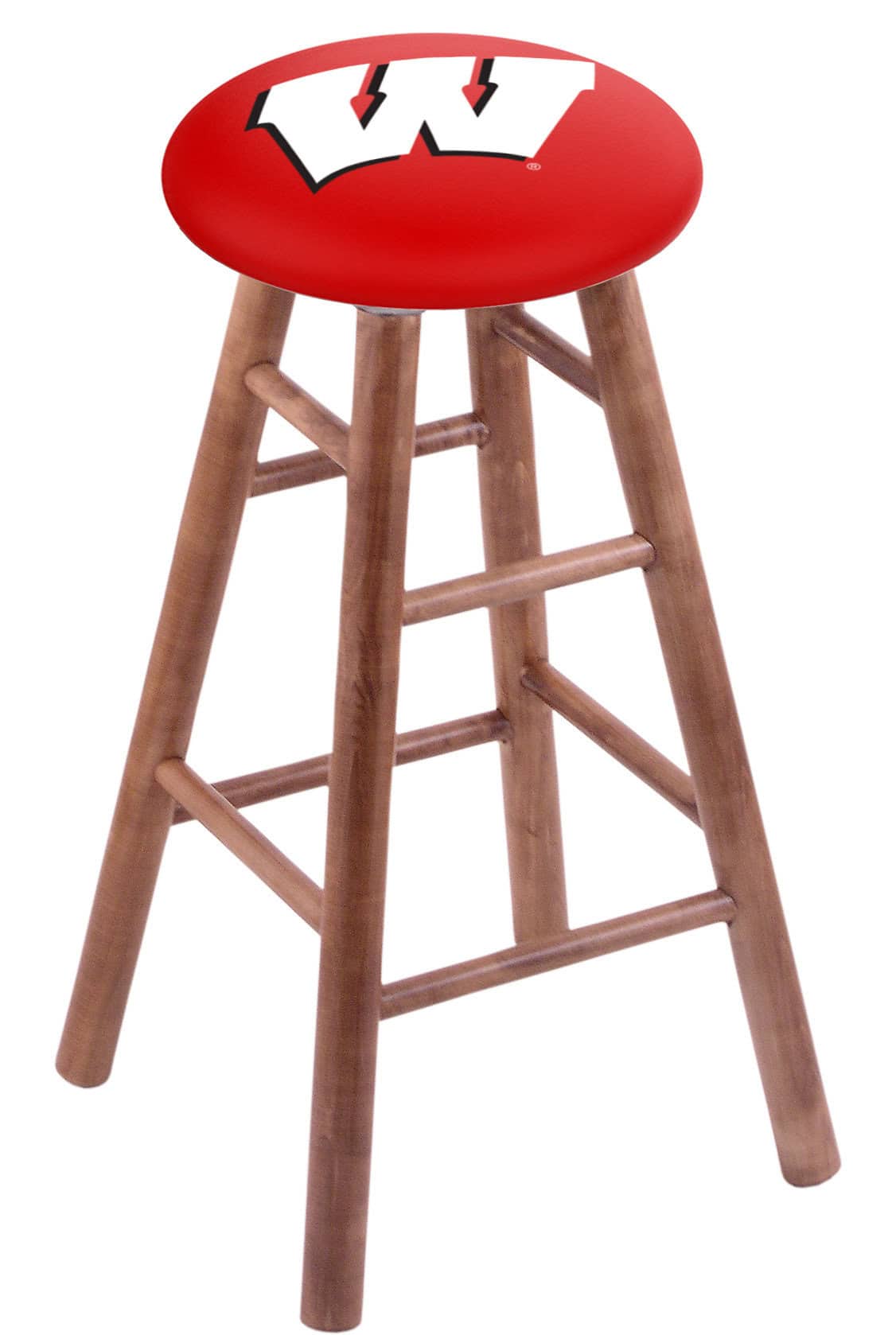 The University of Wisconsin 30″ Swivel Maple Bar Stool in Medium Finish (“W” Logo) is a premium addition to any sports fan’s space. Designed for both style and durability, this stool features a sharp, long-lasting logo and outstanding craftsmanship. Constructed with solid maple wood and a high-density cushion, it offers exceptional comfort and support. Its 52-ball bearing swivel ensures smooth rotation, making it a functional and stylish choice for your bar or man cave.