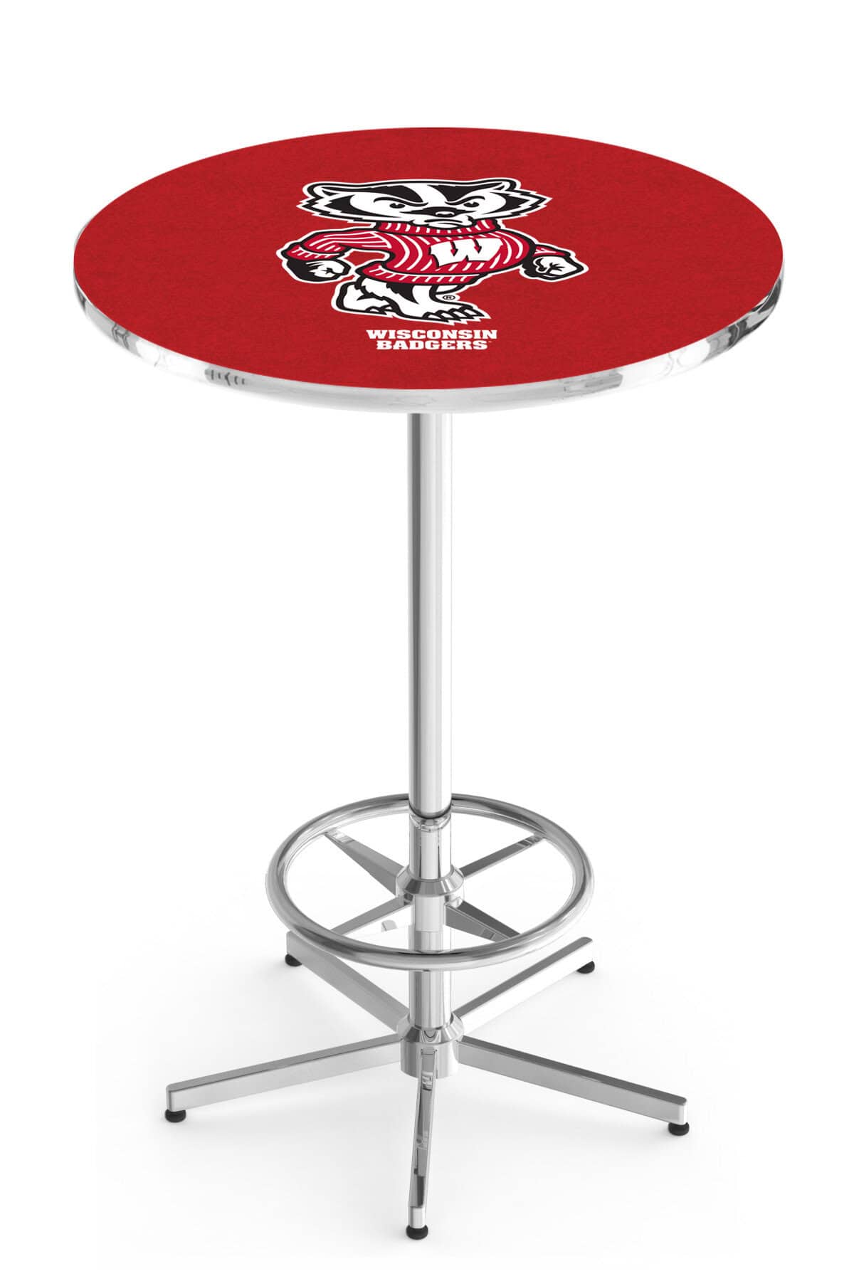 Perfect for sports enthusiasts, this 42-inch pub table with a 36-inch top is a stylish and functional addition to any man cave, bar, or game room. Featuring a vibrant, full-color laminate top, a sleek chrome finish, and a sturdy star base, this table combines durability with modern aesthetics. Its scratch-resistant surface ensures long-lasting appeal, while adjustable floor glides provide stability on uneven surfaces. Easy to assemble and maintain, this table is built to withstand years of use, making it a great choice for entertaining friends and family.