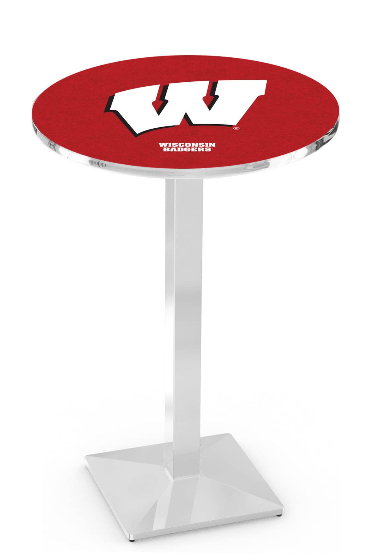 Elevate your bar, game room, or man cave with this premium 36-inch pub table, featuring a sleek chrome finish and a durable square base. Designed to combine style, functionality, and durability, this table is perfect for sports fans looking to showcase their loyalty with pride. The table boasts a scratch-resistant, vibrant laminate top that is easy to clean, making it ideal for entertaining guests. Its commercial-quality construction ensures stability and long-lasting use, while adjustable feet accommodate any floor surface for added convenience.