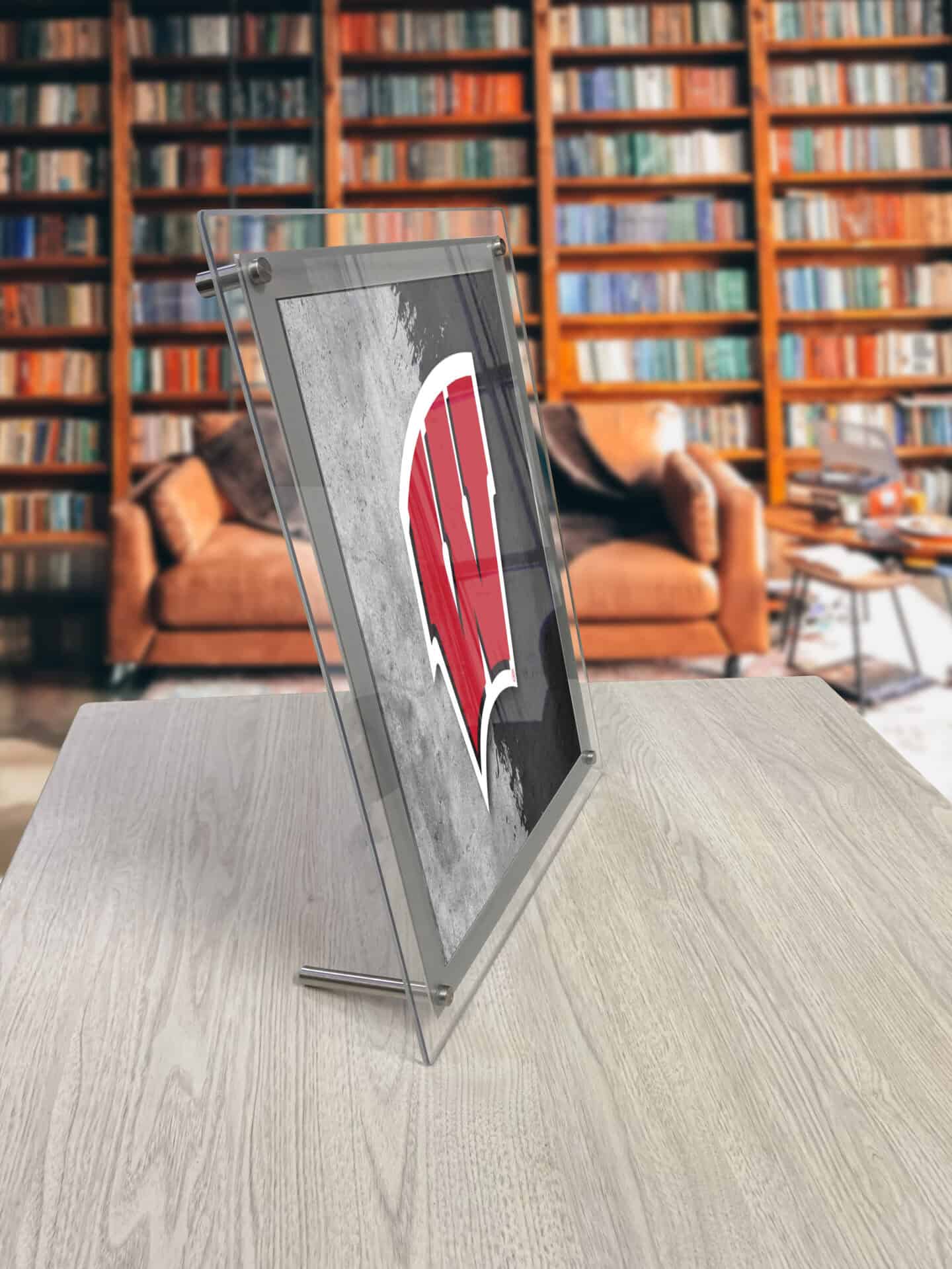 - Mounting Options: Includes hardware for wall mounting (1″ stand-offs) or desktop display (3 3/4″ foot).