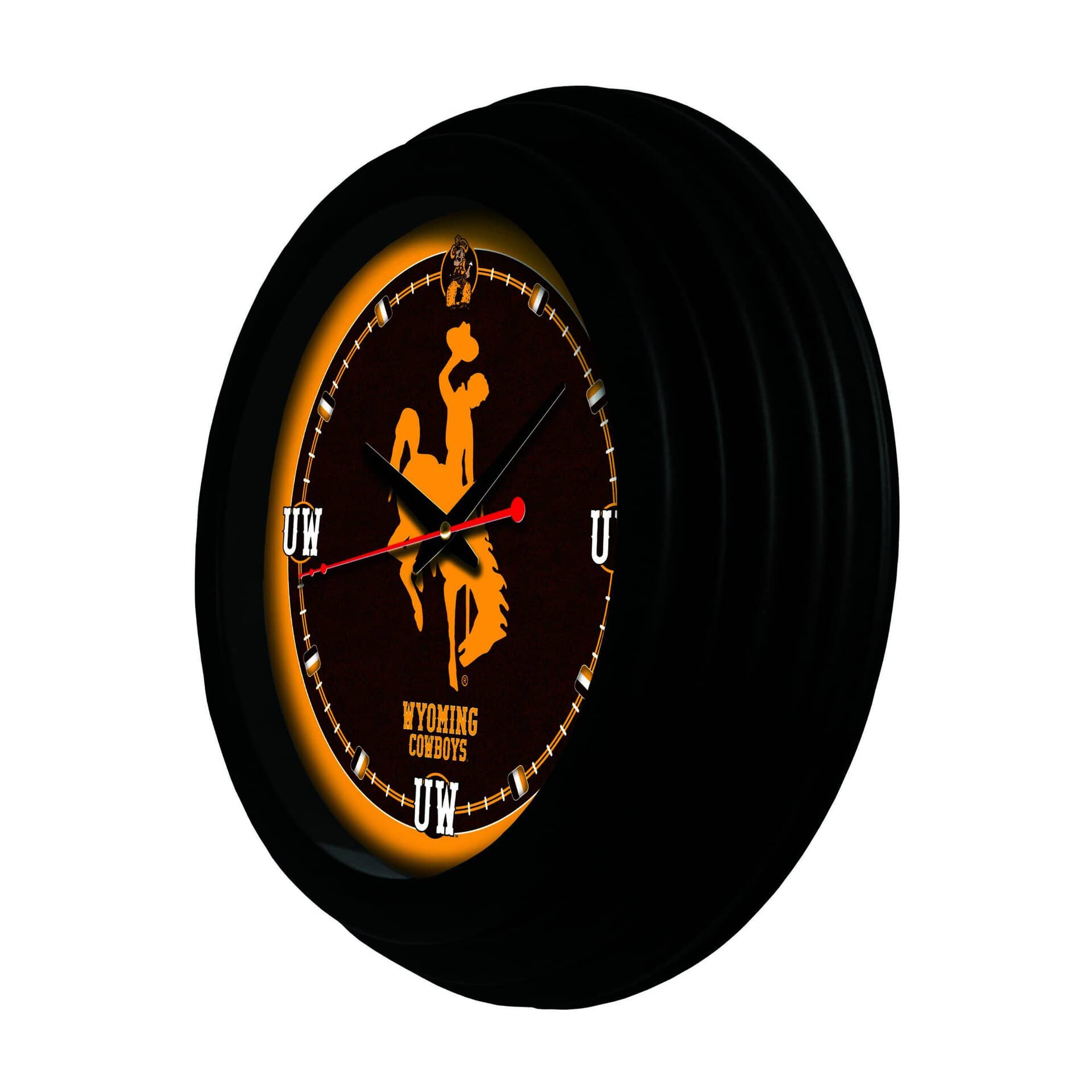 This 15-Inch Wall Clock in Black is an ideal way to showcase your university pride. Featuring vibrant, full-color digitally printed graphics, this officially licensed clock is protected behind a durable glass lens face. With accurate quartz movement powered by a single AA battery (not included), you can trust in its timekeeping precision. The recessed hanger ensures a sleek, flat profile against the wall, creating a polished look for any room. Perfect as a gift for graduates or sports enthusiasts, this clock is a great addition to your decor.