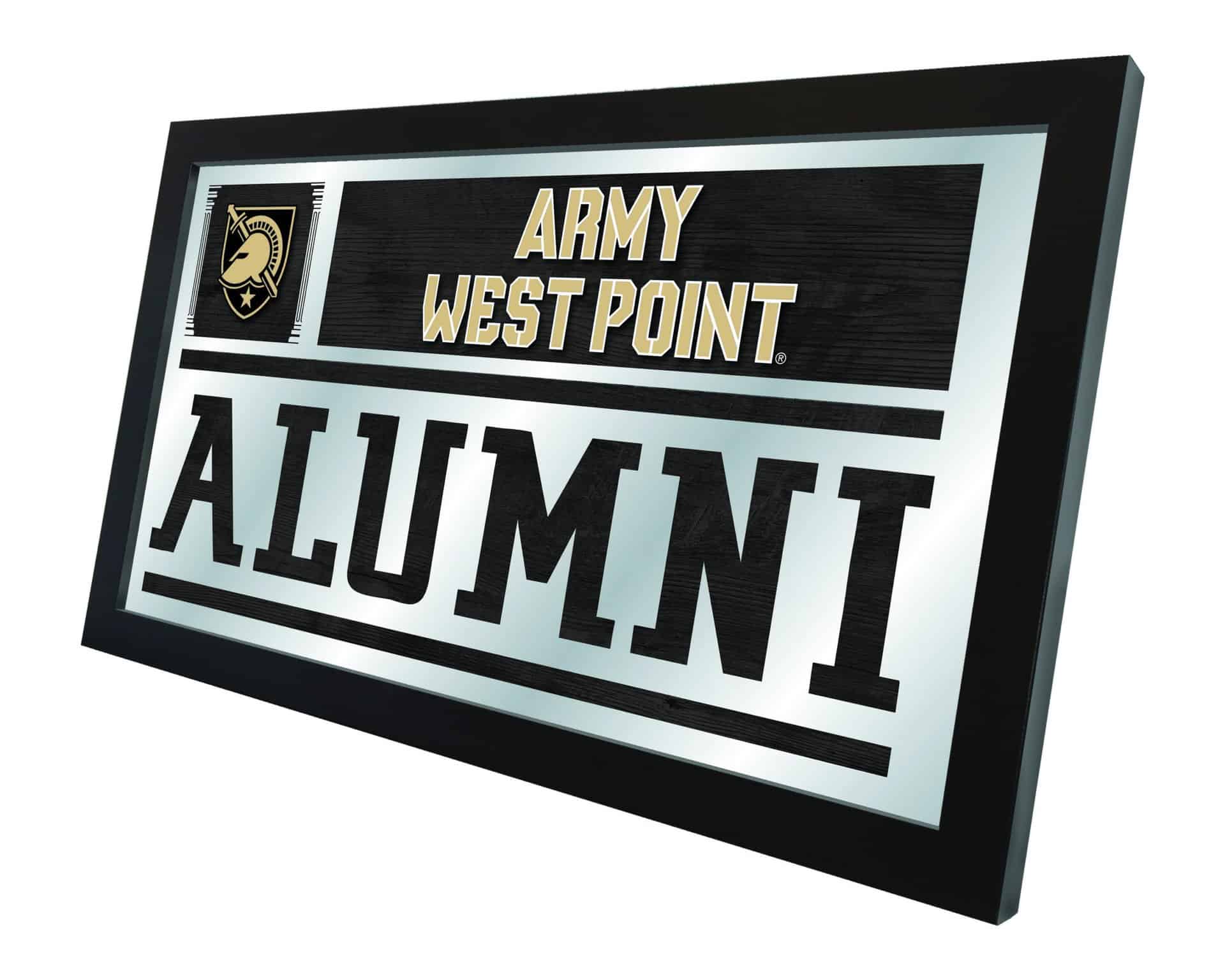 Show your school pride with the US Military Academy 26×15 Alumni Wall Mirror. This mirror features a simple yet elegant design that showcases your school colors through the 1/8″ thick glass, complemented by mirrored accents. Framed in a sleek black, 1 1/4″ wrapped wood frame with saw-tooth hangers, this mirror is perfectly sized at 26″ (H) x 15″ (W), making it an ideal addition to your office, garage, or any room in your home. Whether you’re treating yourself or looking for a thoughtful gift for a recent graduate, you can take pride in purchasing a product that is proudly made in the USA.