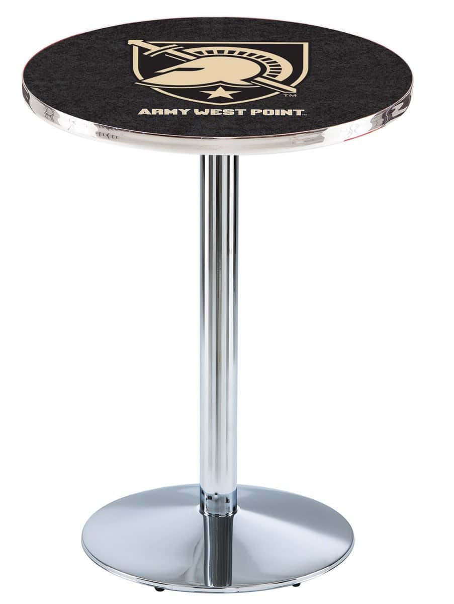 Upgrade your bar, game room, or man cave with this high-quality pub table. Featuring a durable and vibrant design, this table combines style and functionality, making it the perfect centerpiece for any space. Its commercial-grade construction ensures long-lasting stability, while the scratch-resistant laminate top showcases a vibrant full-color design. Adjustable feet provide stability on any surface, and the sleek chrome finish adds a touch of sophistication.