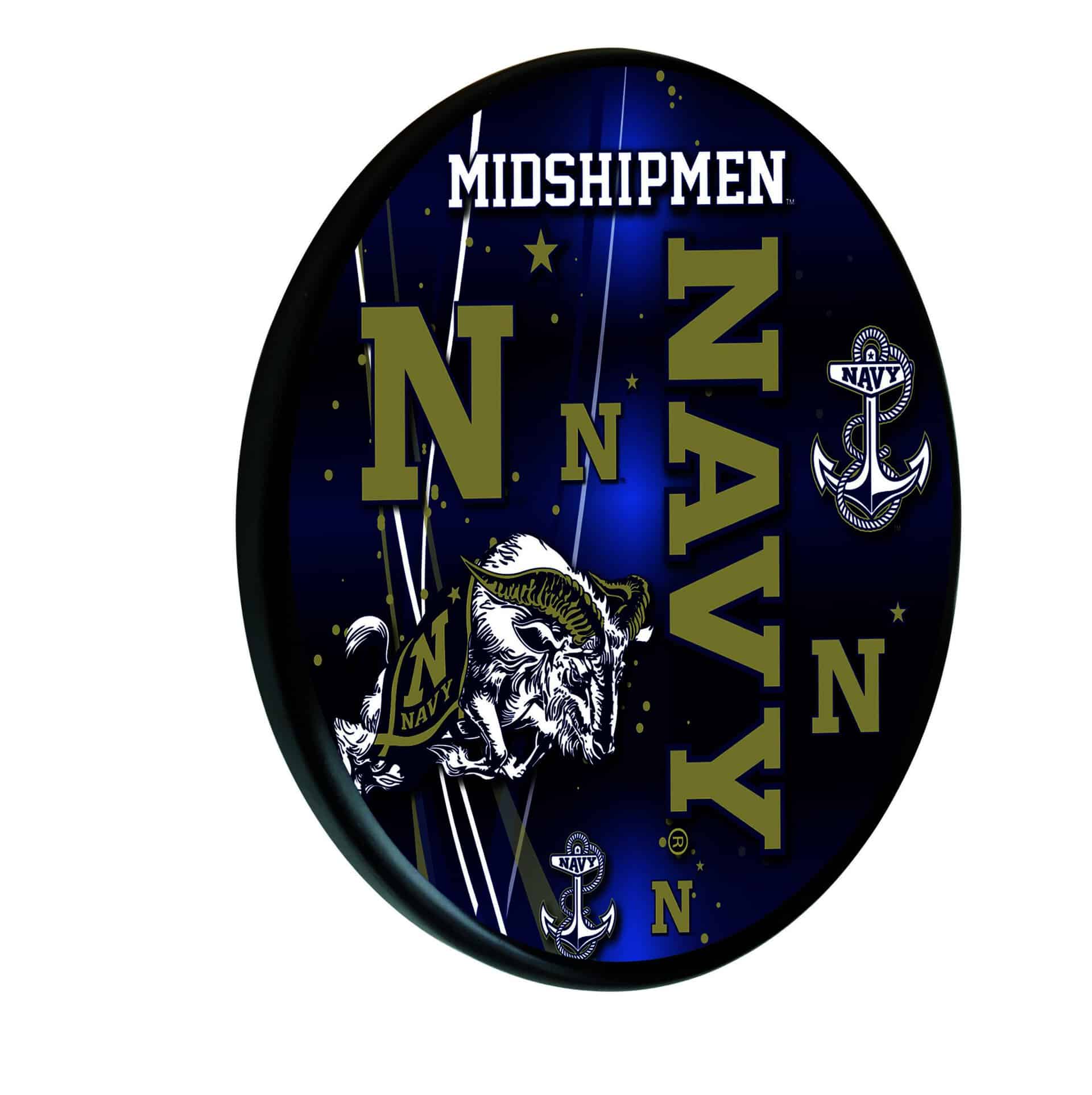 Show your Naval Academy pride with this exceptional 13″ Solid Wood Logo Sign. Designed for passionate alumni, students, and sports enthusiasts, this officially licensed wooden wall art delivers premium quality and striking visual appeal. The sophisticated black design features first surface, digitally printed graphics that maintain their vibrant look over time, making it an ideal decorative piece for homes, offices, or man caves.