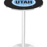 Elevate your bar, game room, or man cave with this sleek and stylish pub table. Designed for ultimate durability and a touch of class, this table features a vibrant, scratch-resistant laminate top with a chrome-plated base, ensuring both functionality and aesthetic appeal. Perfect for any sports fan, this table combines high-quality materials with practical features, making it a must-have addition to your space. Its adjustable feet make it suitable for all floor surfaces, and assembly is quick and hassle-free. Add this table to your setup and enjoy a sturdy, eye-catching centerpiece.