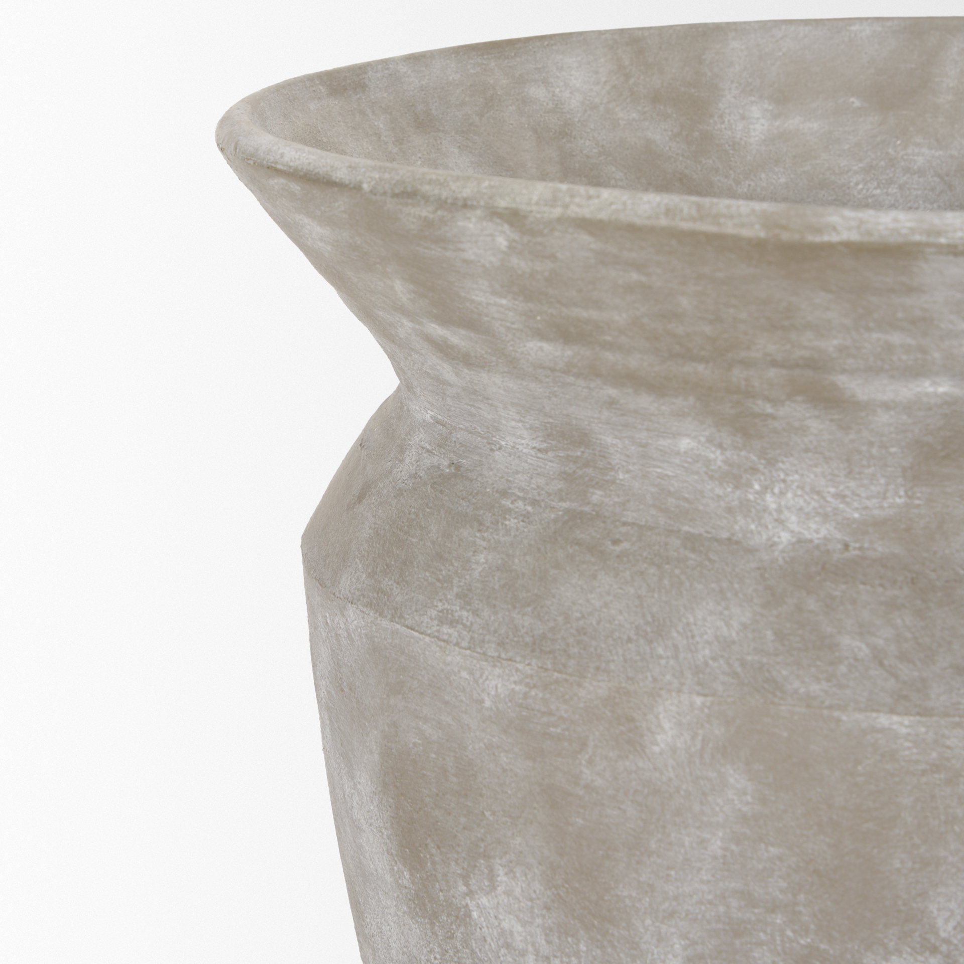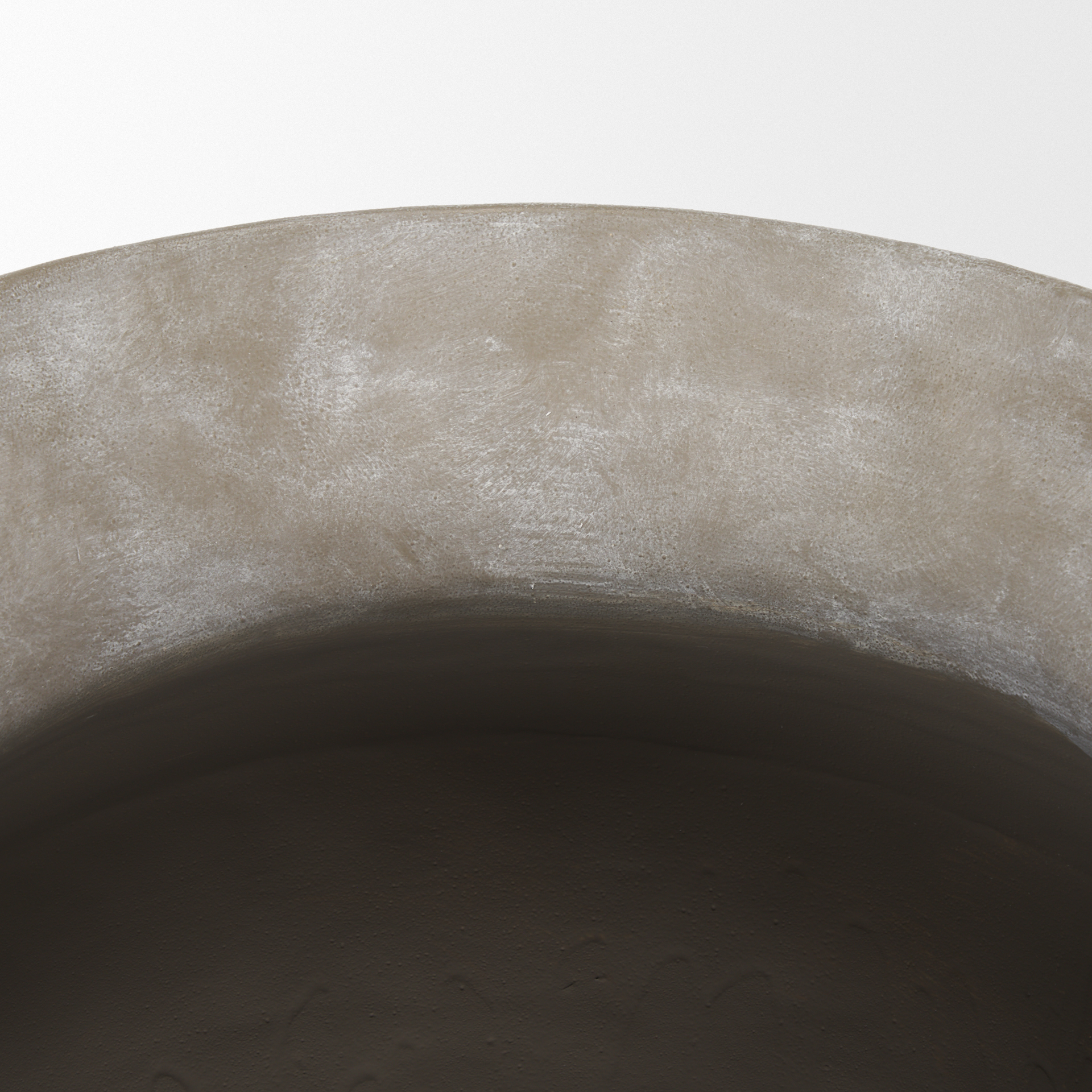 Get ready to make a statement with the Utari Vase! This oversized gray-brown vase features a minimalist silhouette and a unique powdered white overlay that adds an artisanal touch. Perfect for displaying tall branches or standing alone, this watertight vase effortlessly blends modern aesthetics with rustic charm. Its substantial size makes it ideal for enhancing large spaces!