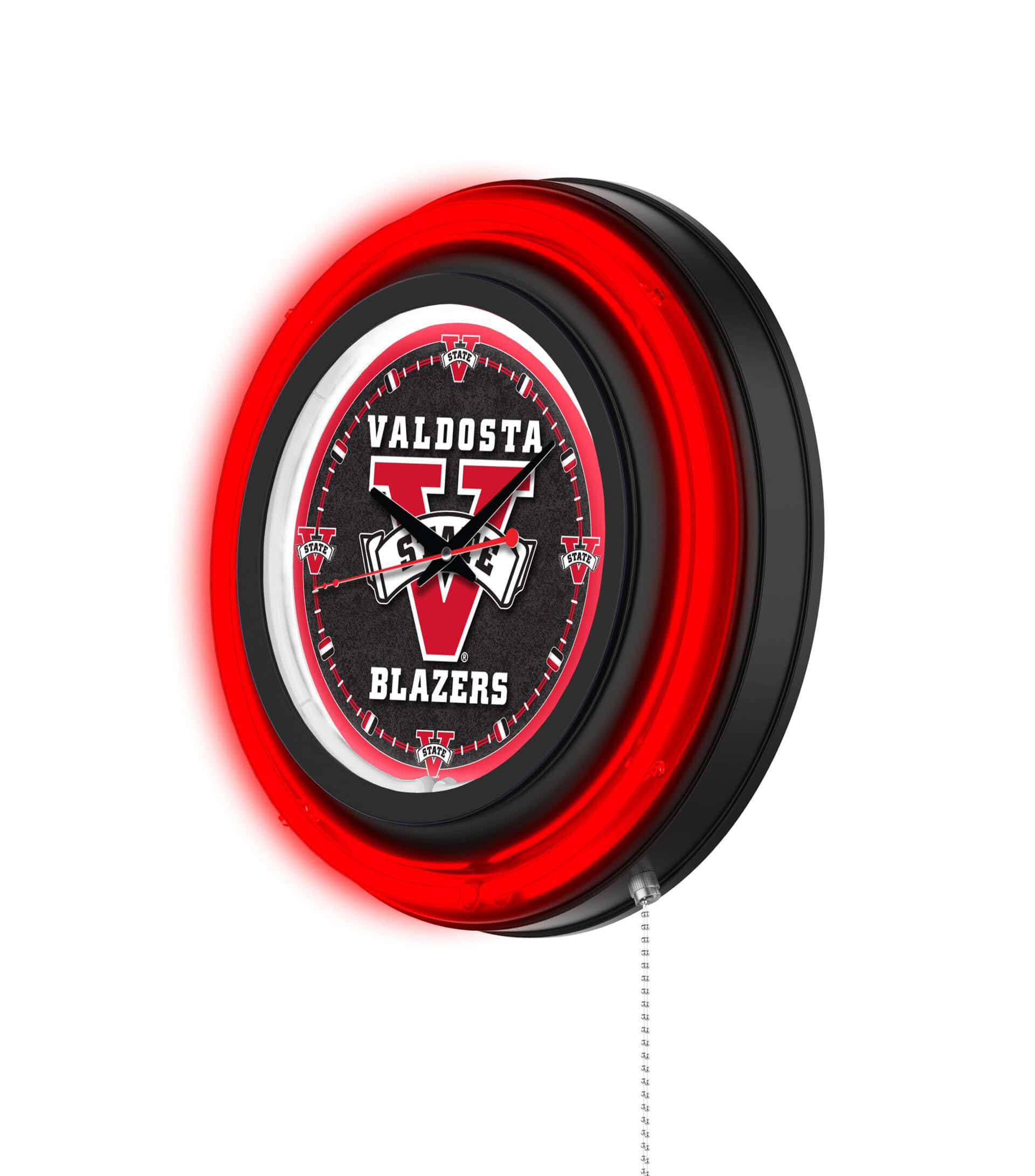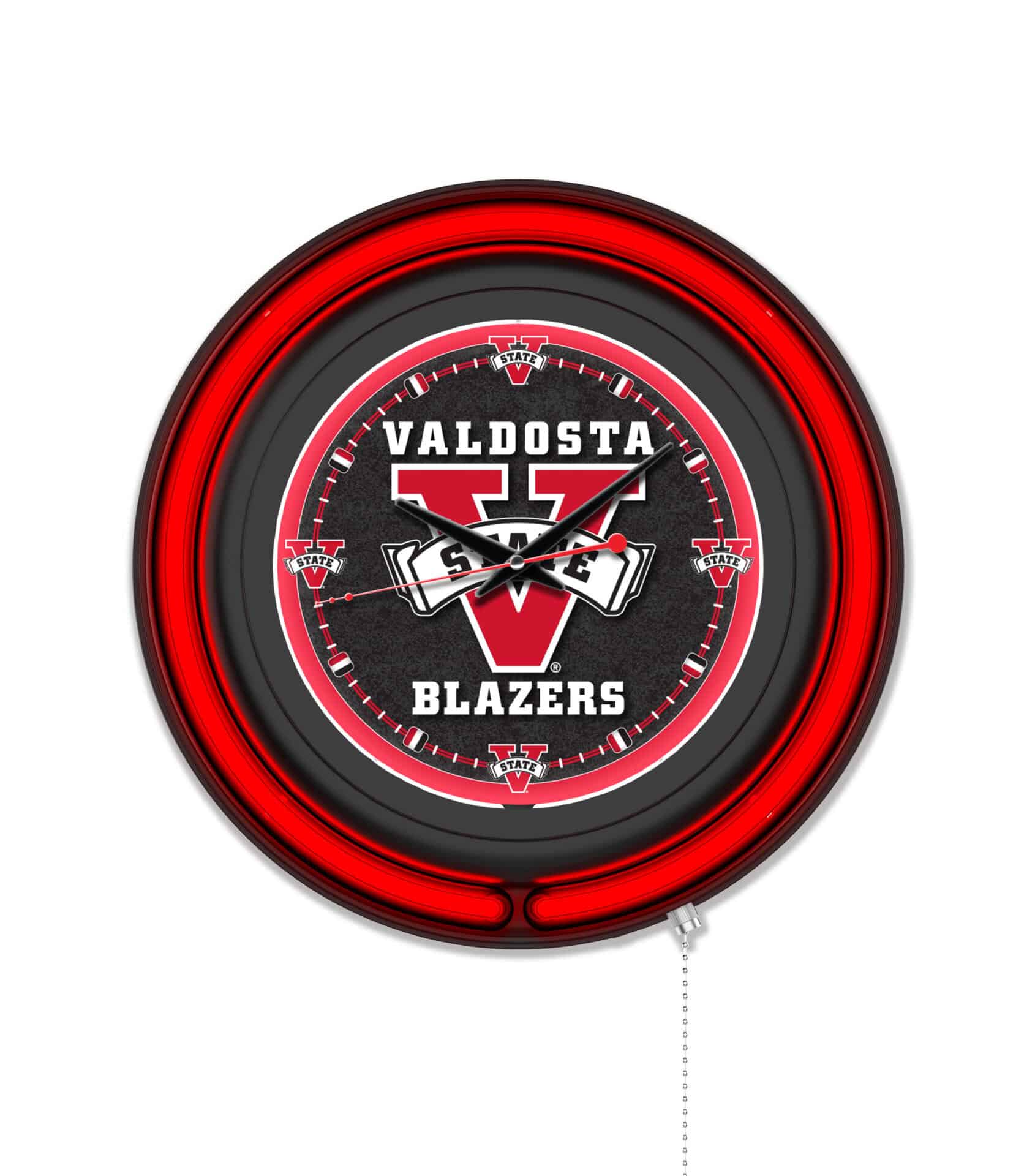 The Valdosta State University 15-Inch Neon Logo Clock in Black is the perfect addition to any fan’s decor, showcasing school pride in a vibrant and functional design. This clock features a classic black casing with a striking neon outer ring that highlights the custom printed clock face, illuminated by a brilliant white inner neon ring. With easy operation and reliable timekeeping, it makes a great gift for graduates, sports enthusiasts, or as a stylish piece for your own collection.