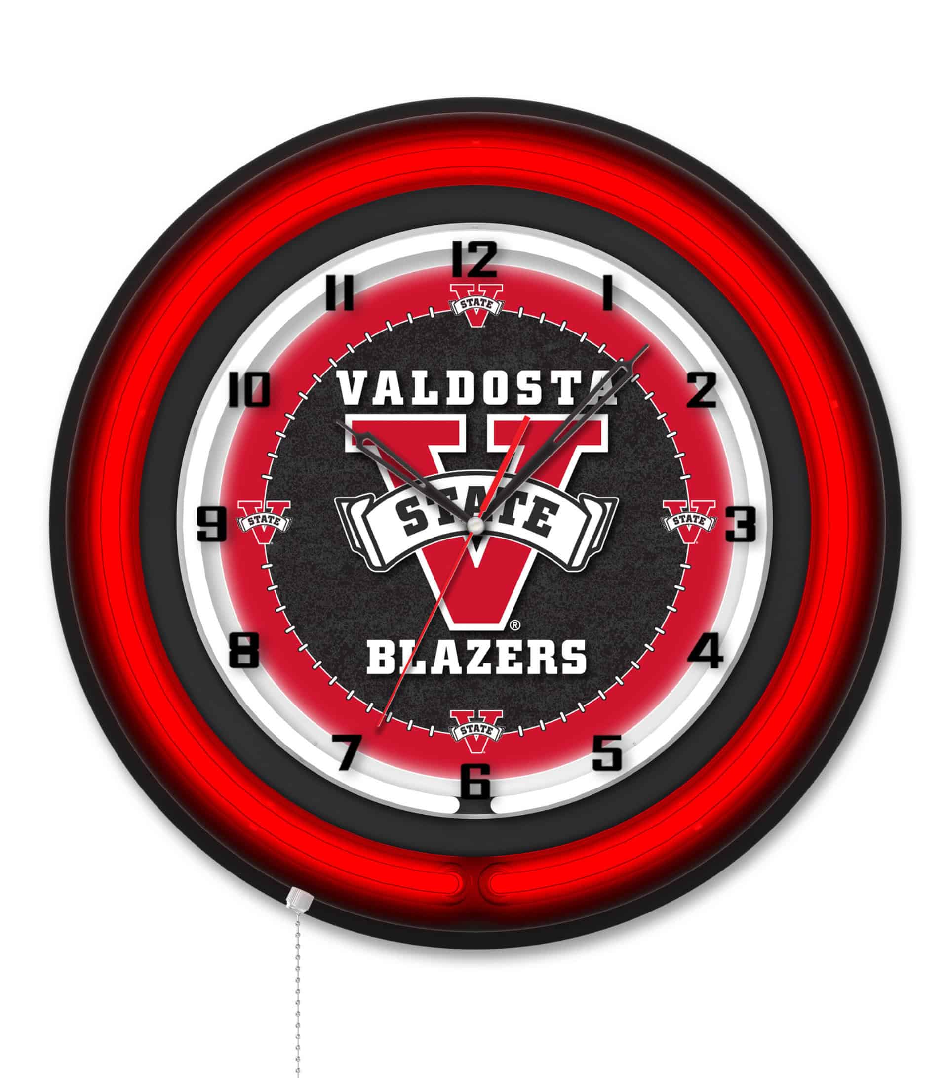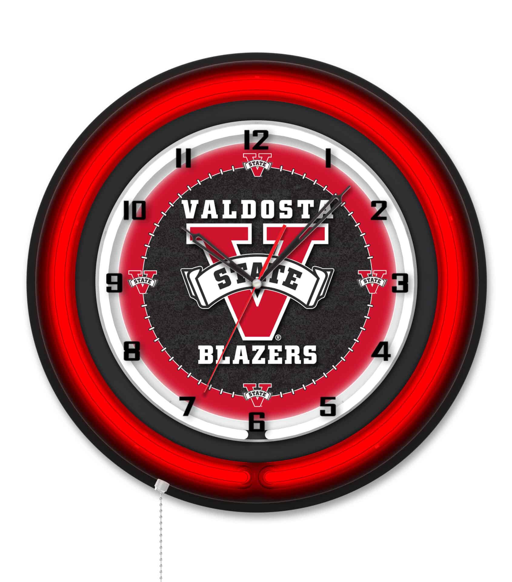 The Valdosta State University 19-Inch Neon Logo Clock in Black is the ultimate addition to any man cave, showcasing your school pride while providing essential timekeeping. Featuring a sleek black casing and vibrant neon accents, this clock not only serves a functional purpose but also enhances your decor. The brilliant white inner neon ring illuminates the custom printed clock face, making it a standout piece. With easy operation through a pull chain and reliable quartz movement, it’s perfect for any sports super fan or recent graduate.