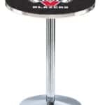 Designed for the ultimate sports enthusiast, this 36-inch pub table combines style, functionality, and durability to elevate your bar, game room, or man cave. Featuring a vibrant, full-color, scratch-resistant laminate top, it ensures longevity and an eye-catching design. The sturdy, commercial-quality round base with a sleek chrome finish provides exceptional stability and a modern aesthetic. Easy to assemble and maintain, this table is the perfect addition to any setting, delivering both practicality and a touch of class.