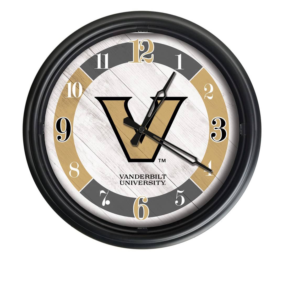 The Vanderbilt University 14-Inch Indoor/Outdoor LED Wall Clock in Black is the perfect addition to any fan’s space, whether indoors or outdoors. This clock combines functionality with team spirit, featuring a robust design that withstands various environmental conditions. The casing is crafted from UV-resistant black ABS plastic, ensuring durability while the rubber gasket around the glass face lens protects against weather elements. With four LED lights controlled by a photo eye, the clock illuminates automatically in low light, providing clear visibility at all times. This clock not only serves as a practical timepiece but also showcases vibrant, fade-free artwork that brings your school pride to life.