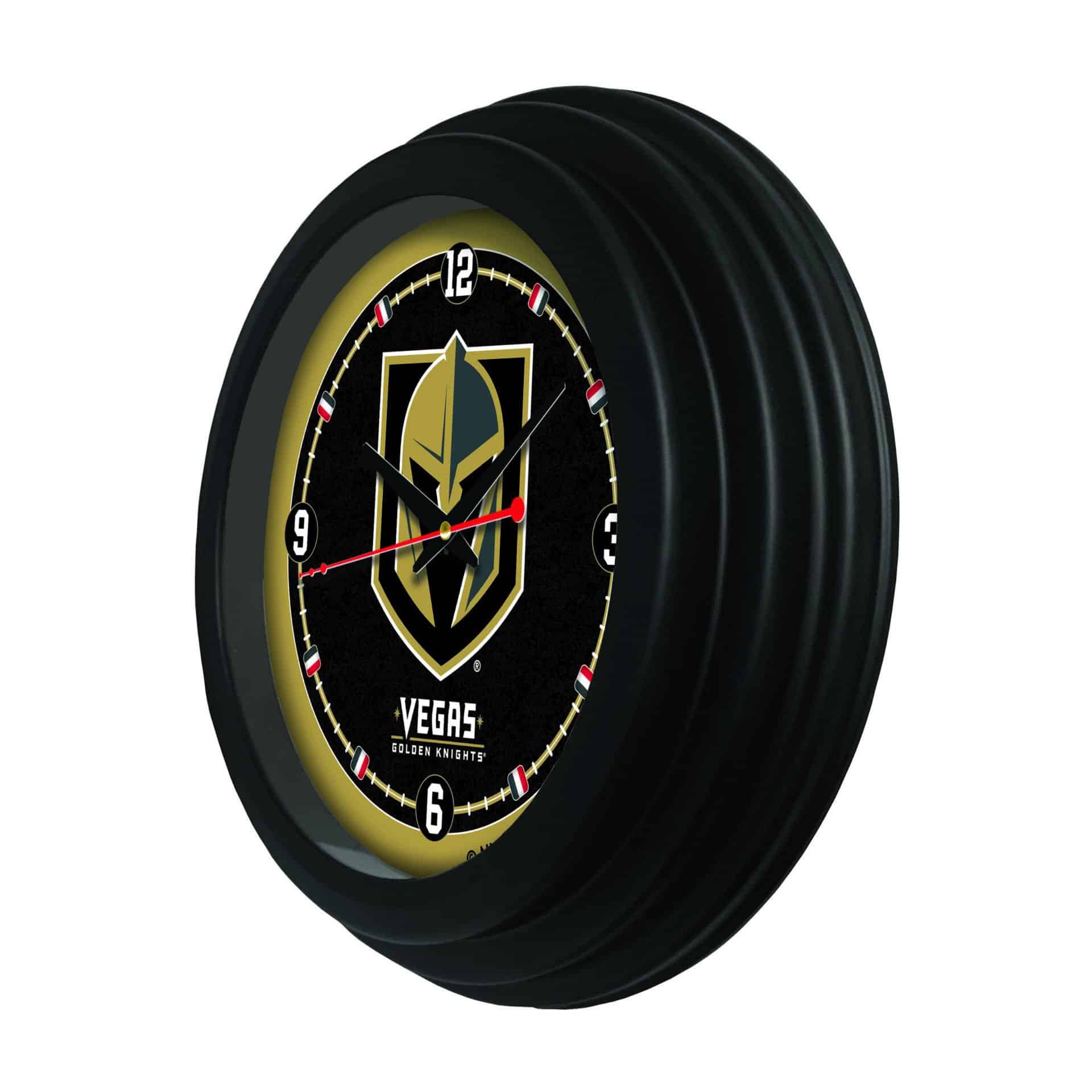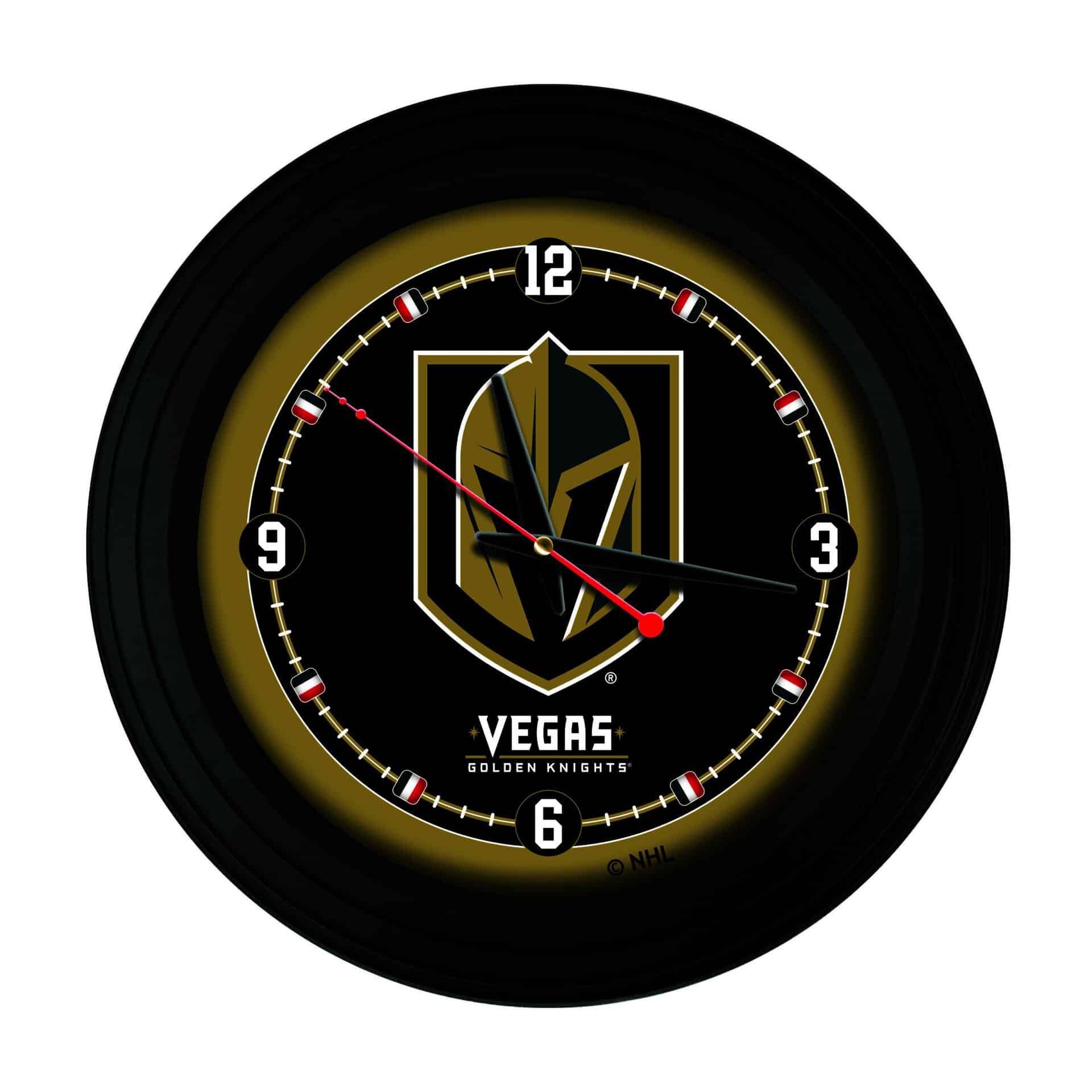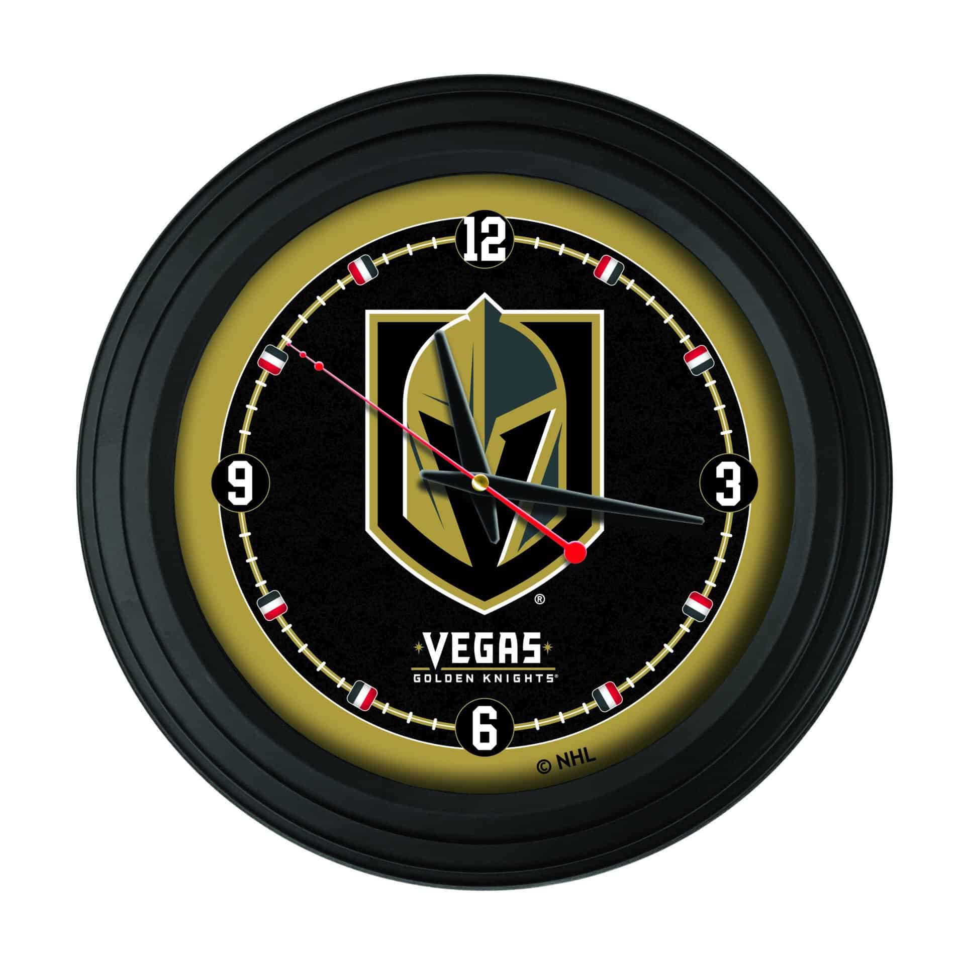 This black cased 15-Inch Traditional Logo Clock is the perfect way to show your team pride. Featuring vibrant, full-color digitally printed graphics protected behind a glass lens face, this clock ensures both style and functionality. With accurate quartz movement powered by a single AA battery (not included), you can rely on this clock for precise timekeeping. The recessed hanger allows it to hang flat against the wall, providing a clean and finished look. Whether for yourself or as a gift for a sports super fan, this clock is an excellent addition to any man cave.