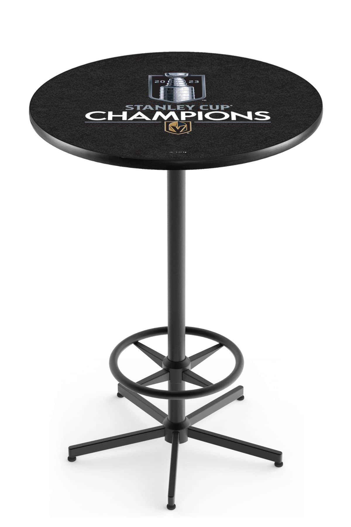 Celebrate the 2023 Stanley Cup Champions with this officially licensed pub table. Designed with style and durability in mind, this 42-inch tall table is a perfect addition to your bar, game room, or man cave. Its vibrant, full-color, scratch-resistant laminate top ensures a stunning look that lasts for years. Crafted with a sturdy, black wrinkle powder-coated steel base, it provides exceptional stability and a sleek finish. Easy to assemble and maintain, this table is built to withstand frequent use and keep your space looking great. Adjustable floor glides ensure stability even on uneven surfaces, making this table a reliable and stylish choice for any setting.