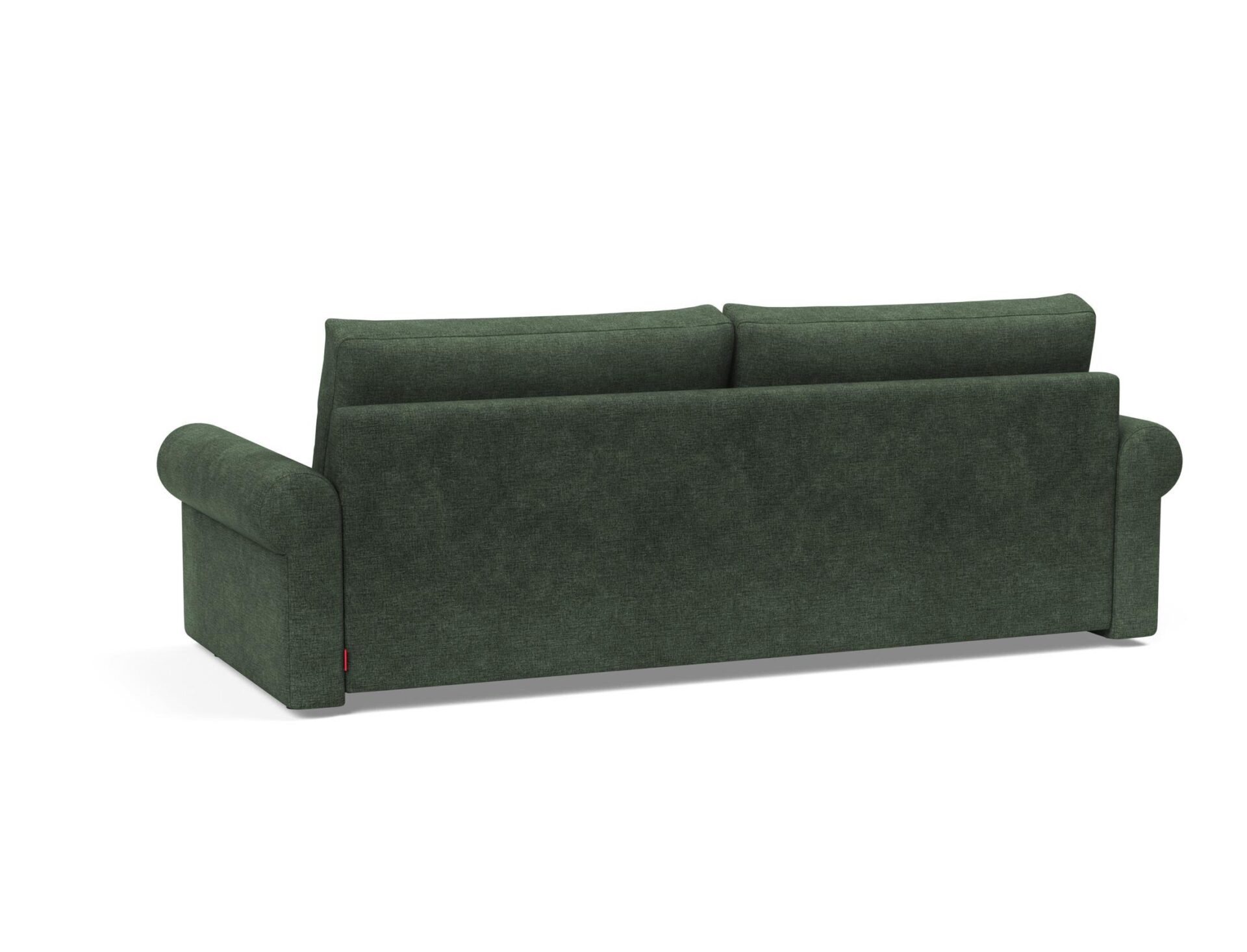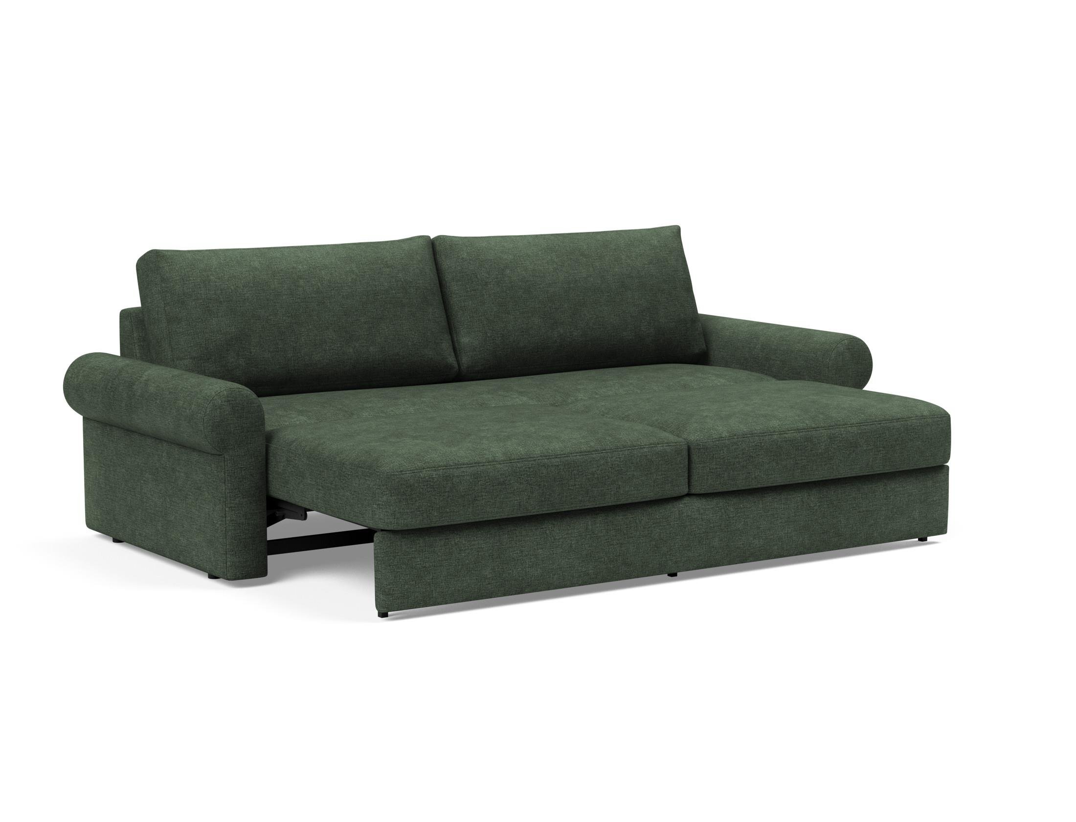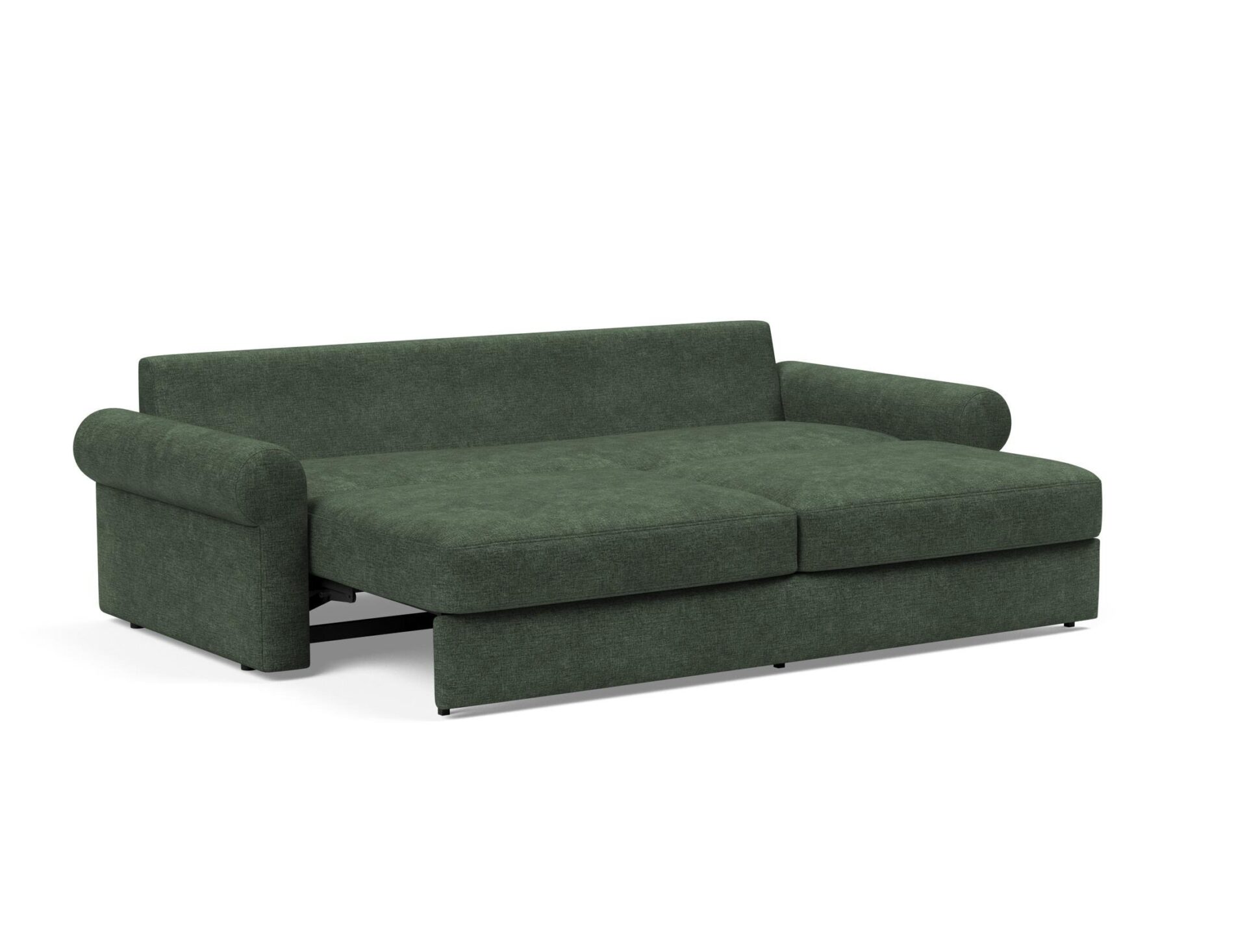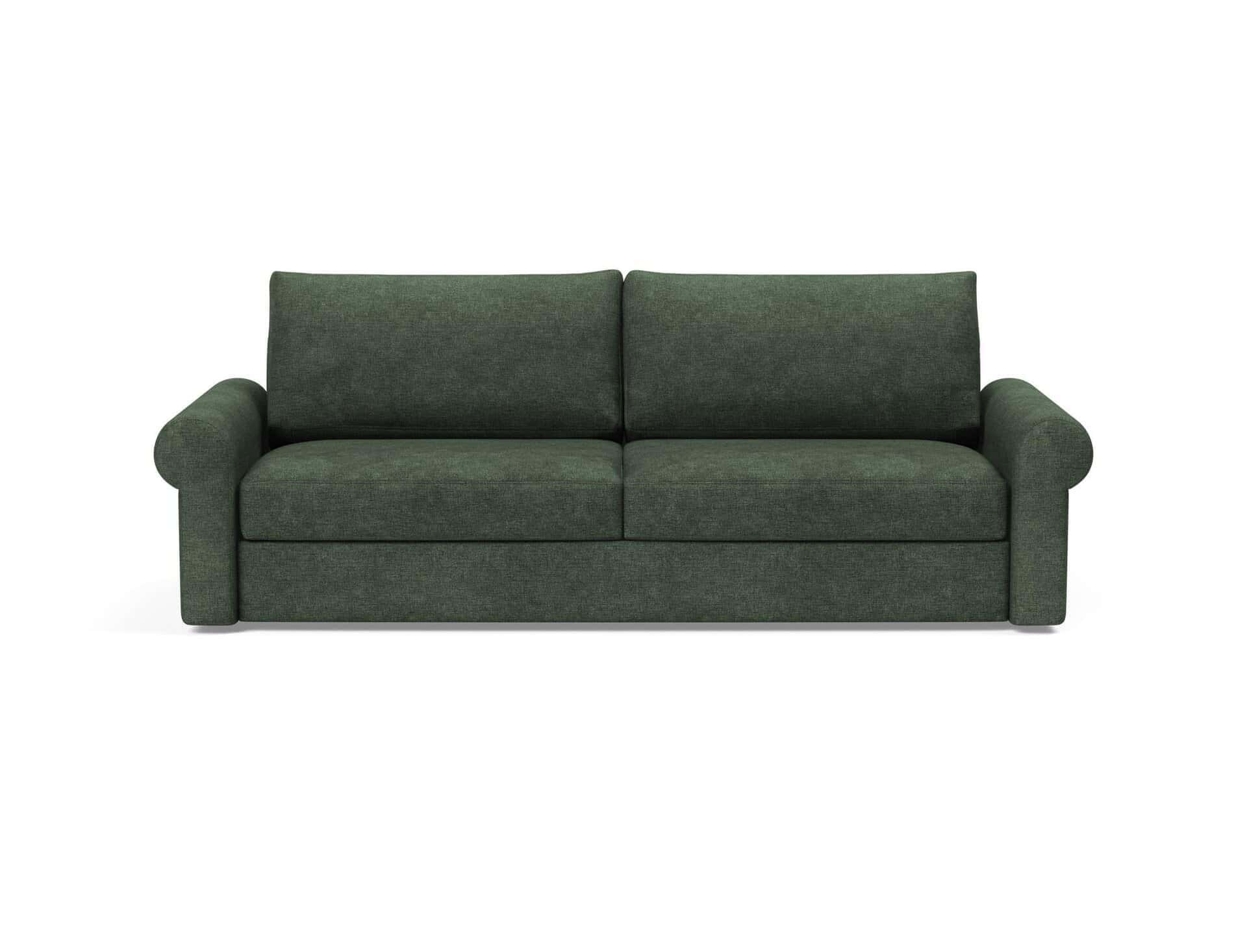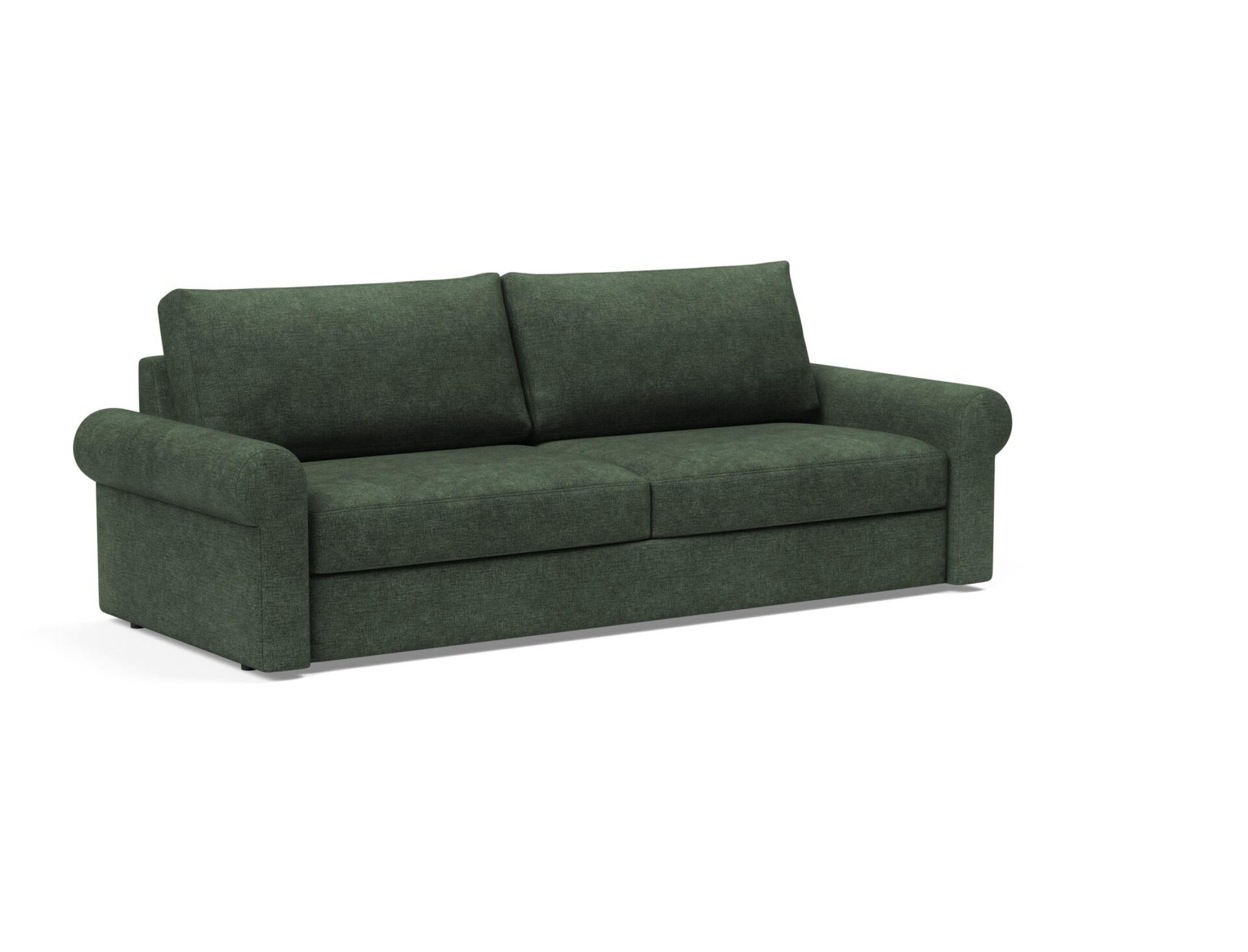 The Vilander Sofa Bed With Roll Arms offers a perfect blend of classic charm, modern functionality, and versatile design. This 3-seater sofa effortlessly transforms into a full-size bed or family lounger, making it ideal for small spaces, guest rooms, or man caves. With its automatically foldable legs and Double Spring technology, it provides exceptional comfort and support whether used as a sofa or a bed. The Avella Pine Green fabric adds a sophisticated touch to any setting, while the durable frame and upholstery ensure long-lasting use.