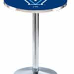 Elevate your bar, game room, or man cave with this sleek and stylish 36-inch pub table. Designed for durability and visual appeal, this table features a scratch-resistant, sublimated laminate top with vibrant, full-color graphics. Its commercial-quality construction ensures stability and longevity, while the chrome finish adds a touch of sophistication. Adjustable feet make it suitable for any floor surface, and assembly is quick and easy. Perfect for entertaining or showcasing your loyalty to your favorite team, this pub table is a must-have addition to your space.