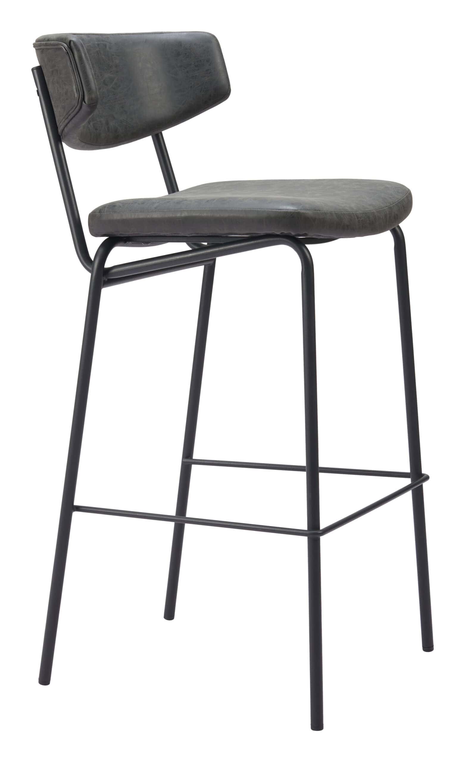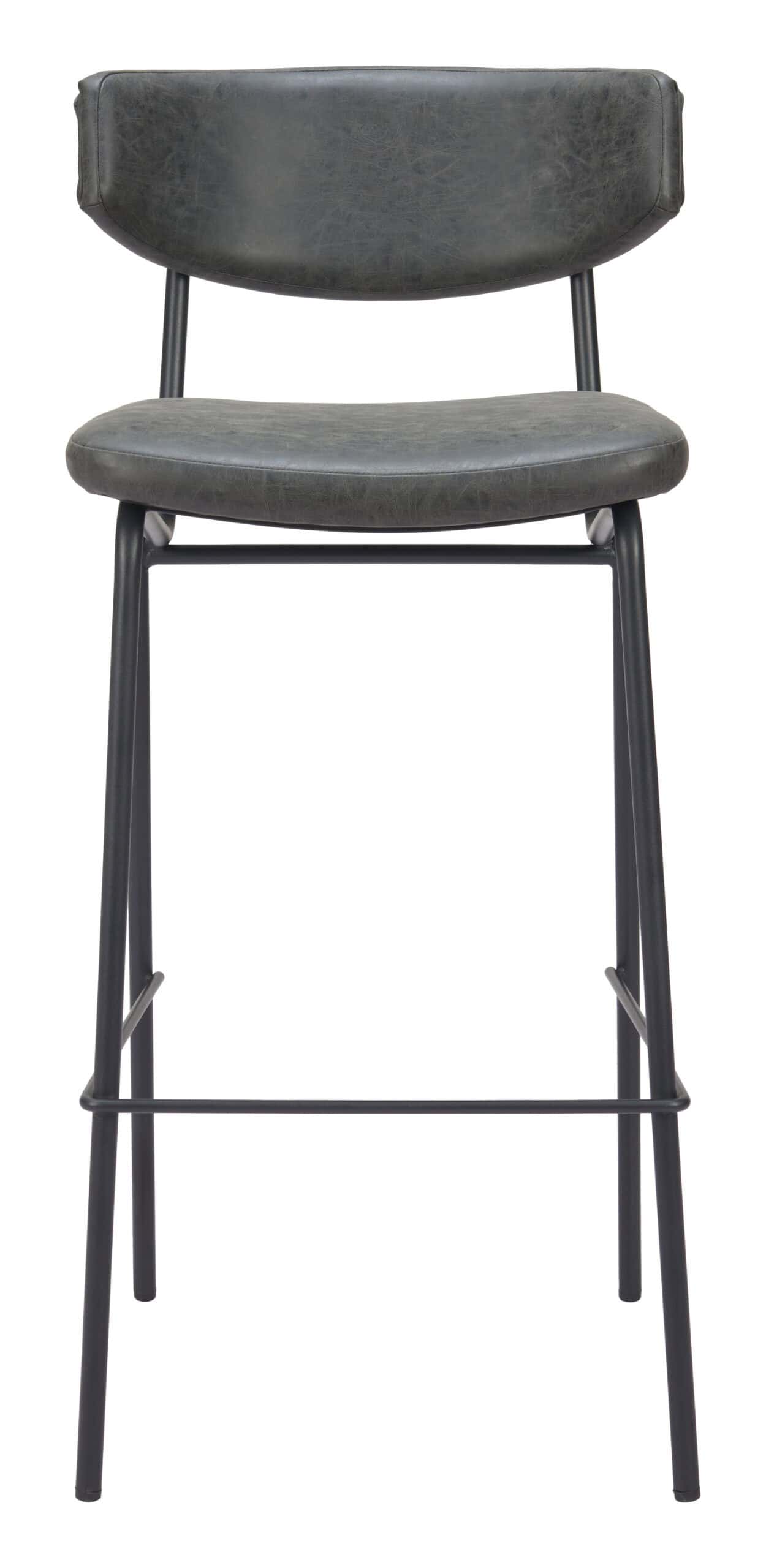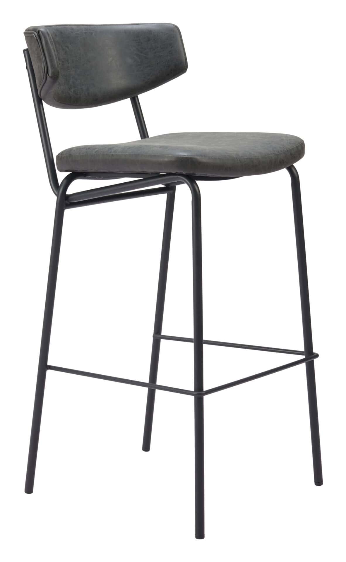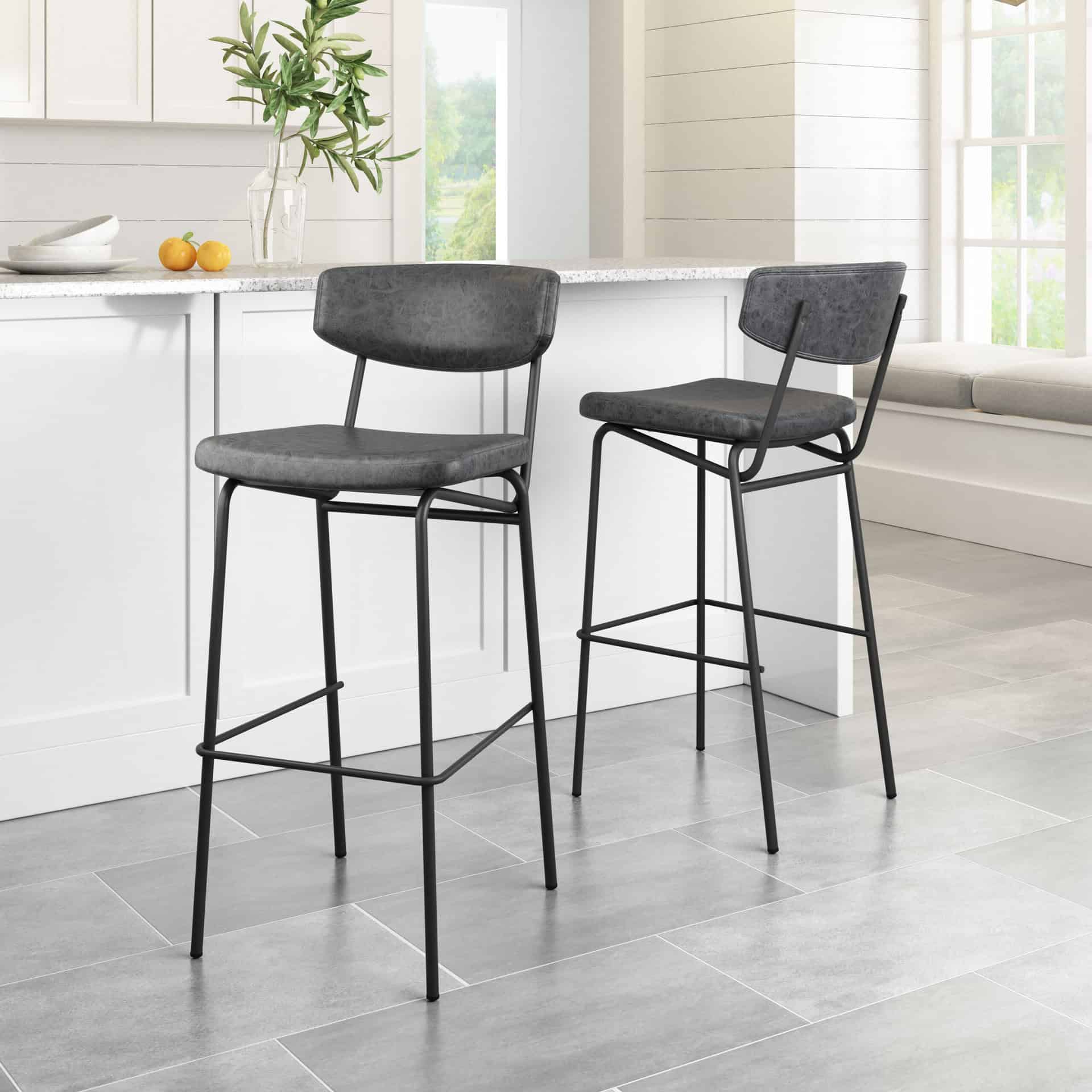 Comfy and Bauhaus-inspired, the Vintage Black Faux Leather Barstools with Steel Frame (Set of 2) seamlessly blend into any space—whether it’s a dining room, home bar, or kitchen. With a sleek, modern minimalism and a touch of boho industrial design, these barstools offer both style and functionality. A sturdy steel frame with powder-coated legs ensures durability, while the plush faux leather upholstery guarantees comfort. The built-in footrest adds to the ergonomic design, making these barstools perfect for long conversations over drinks or casual dining.