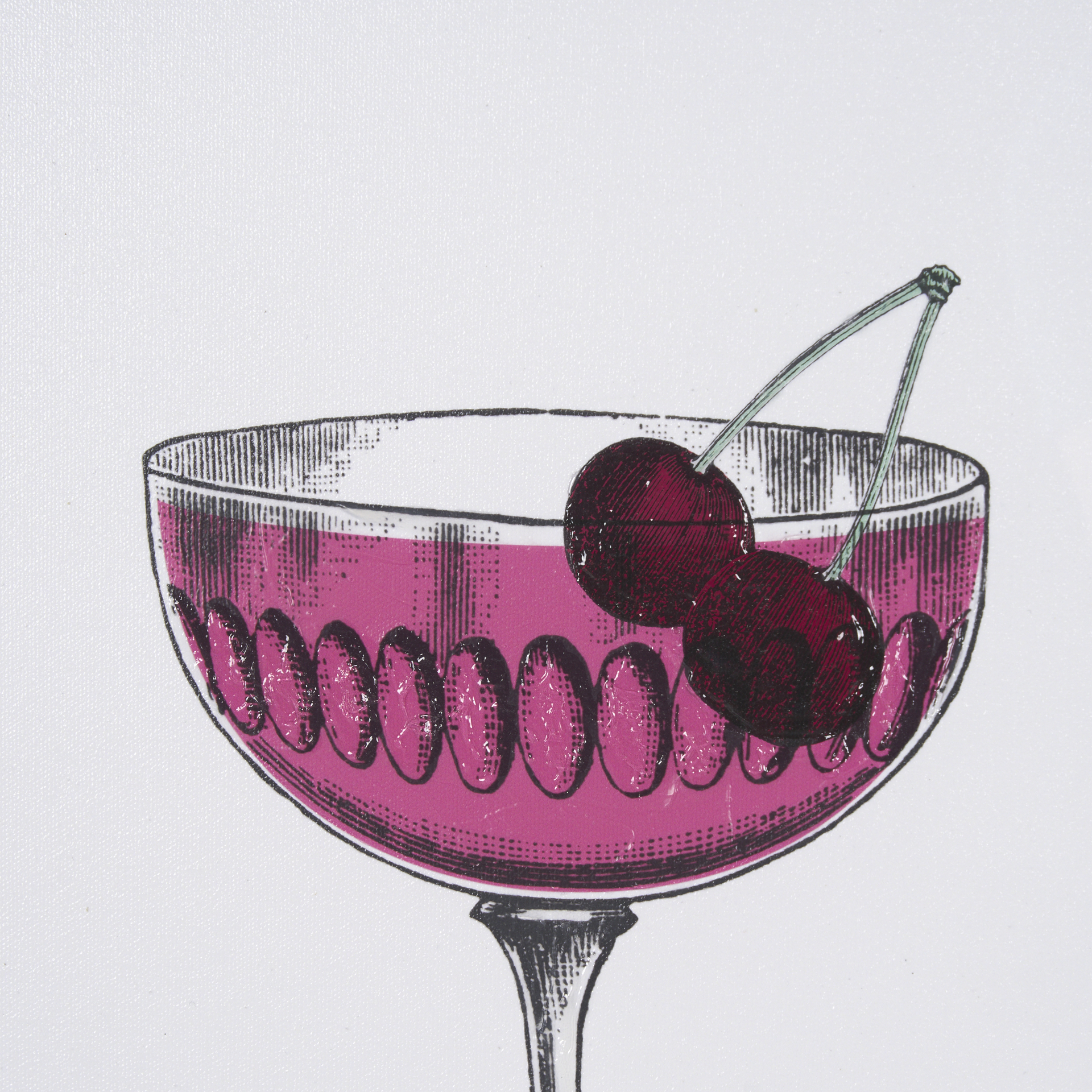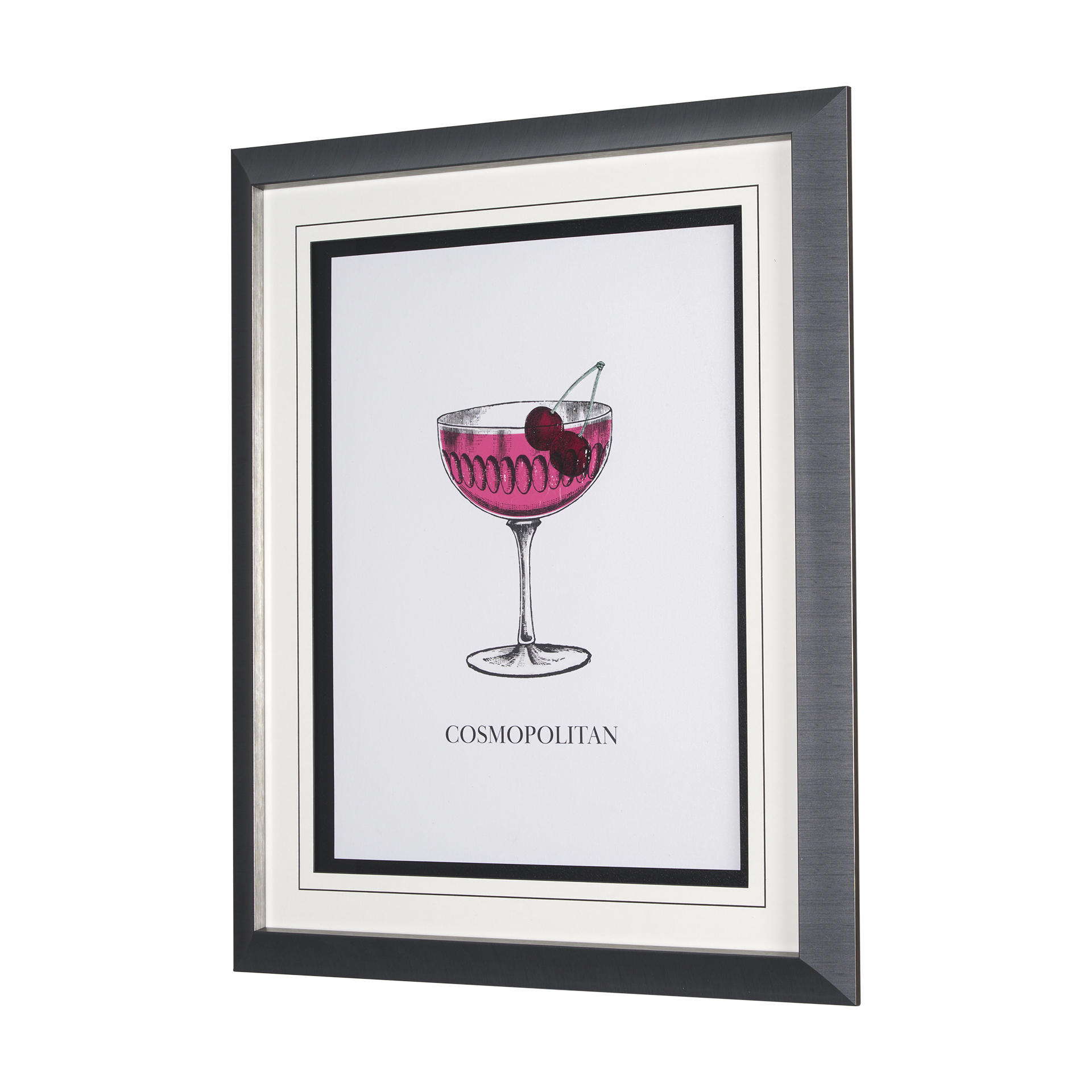 This hand-embellished textured framed art print, “Vintage Cocktails-Cosmo” by Gwen Aspell, adds a touch of glam to any space. Its captivating design is matted under glass, enhancing its visual appeal and protecting the artwork.