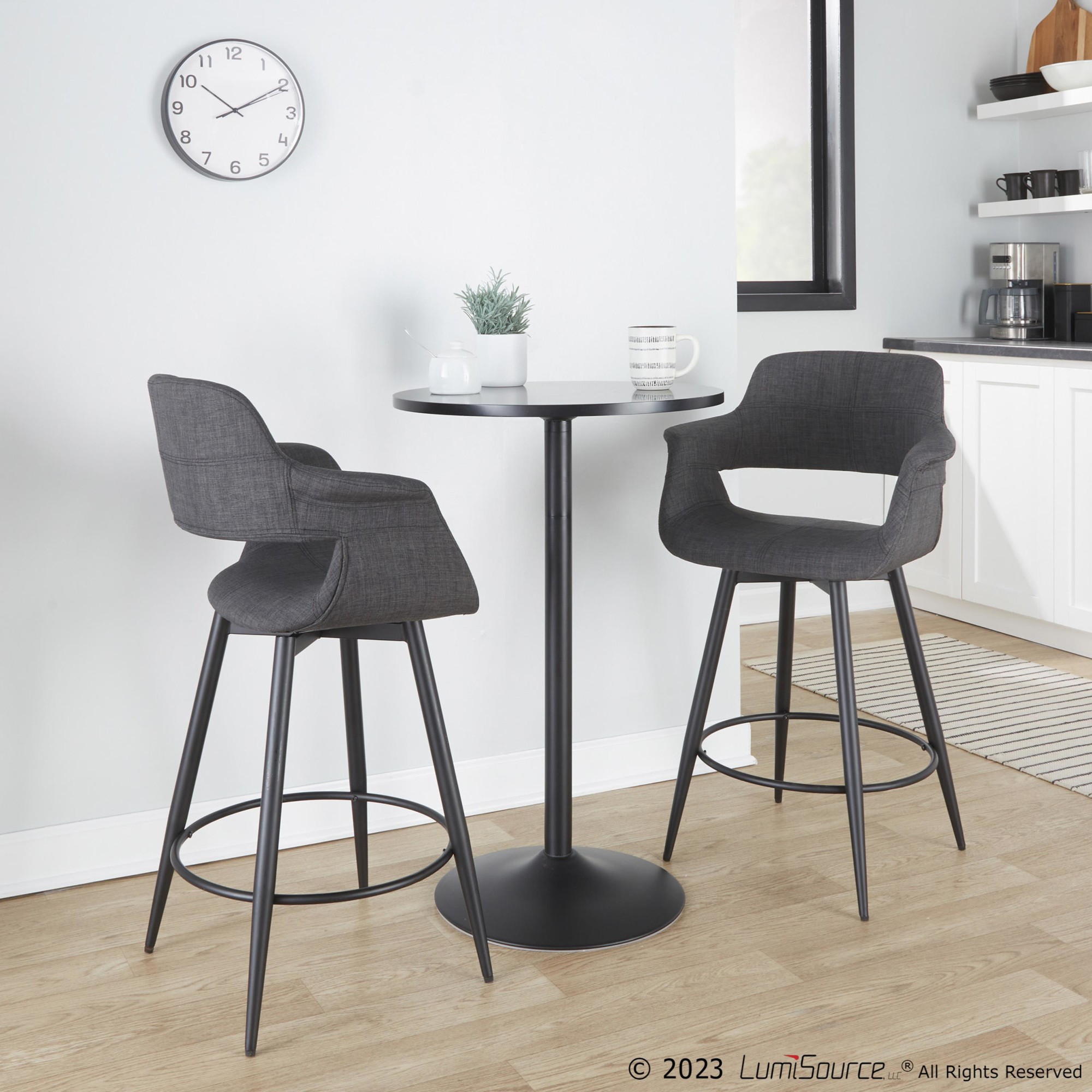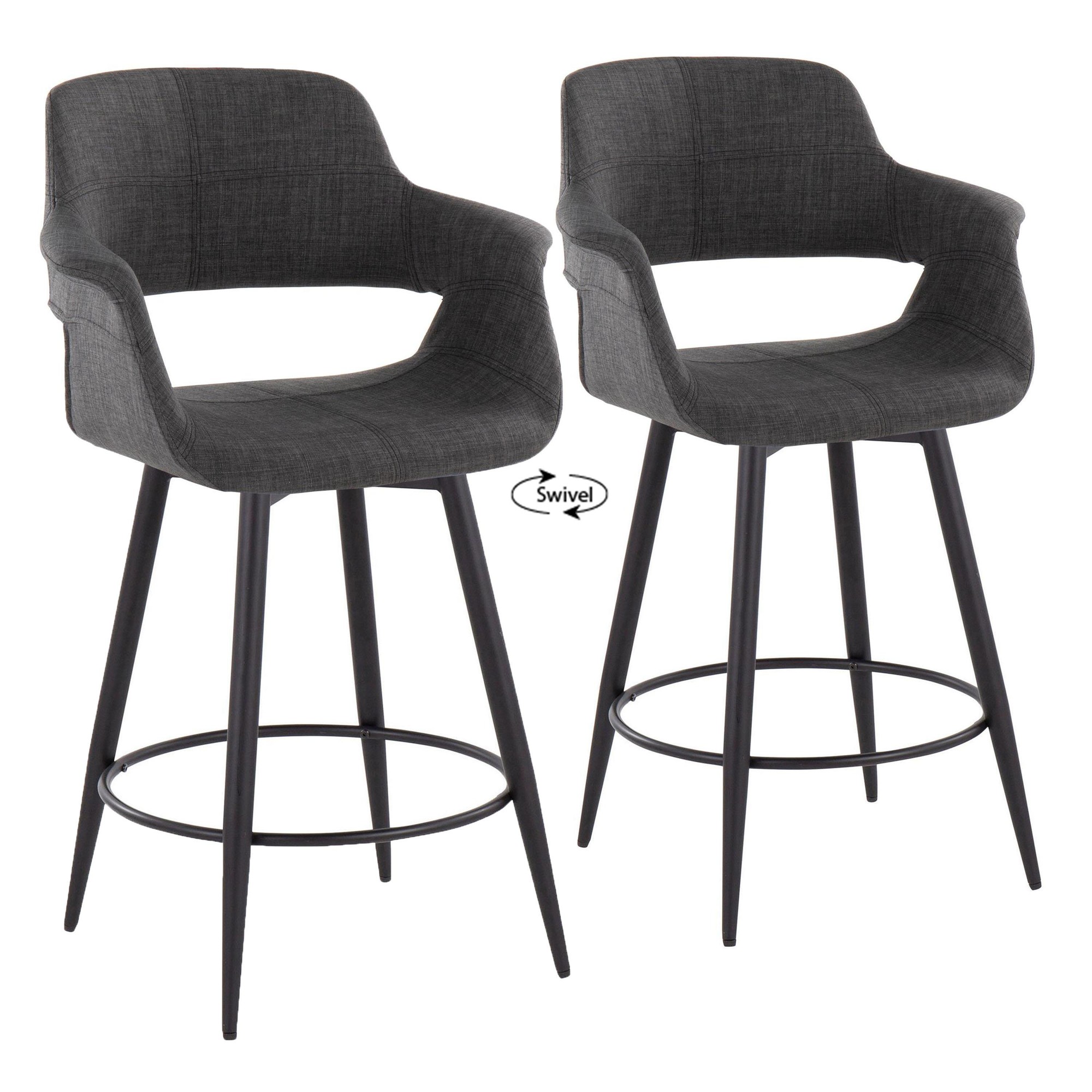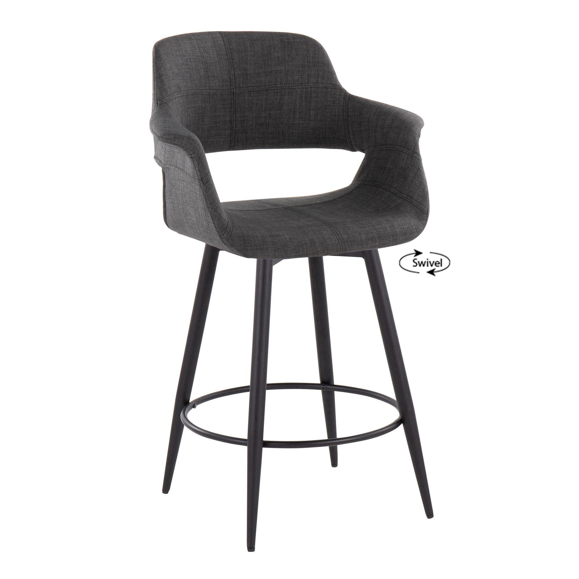 The Vintage Flair 26-Inch Mid-Century Charcoal Swivel Counter Stools offer a delightful blend of retro charm and contemporary elegance. These stools are designed to be a standout addition to any kitchen island or bar table, offering both style and comfort.