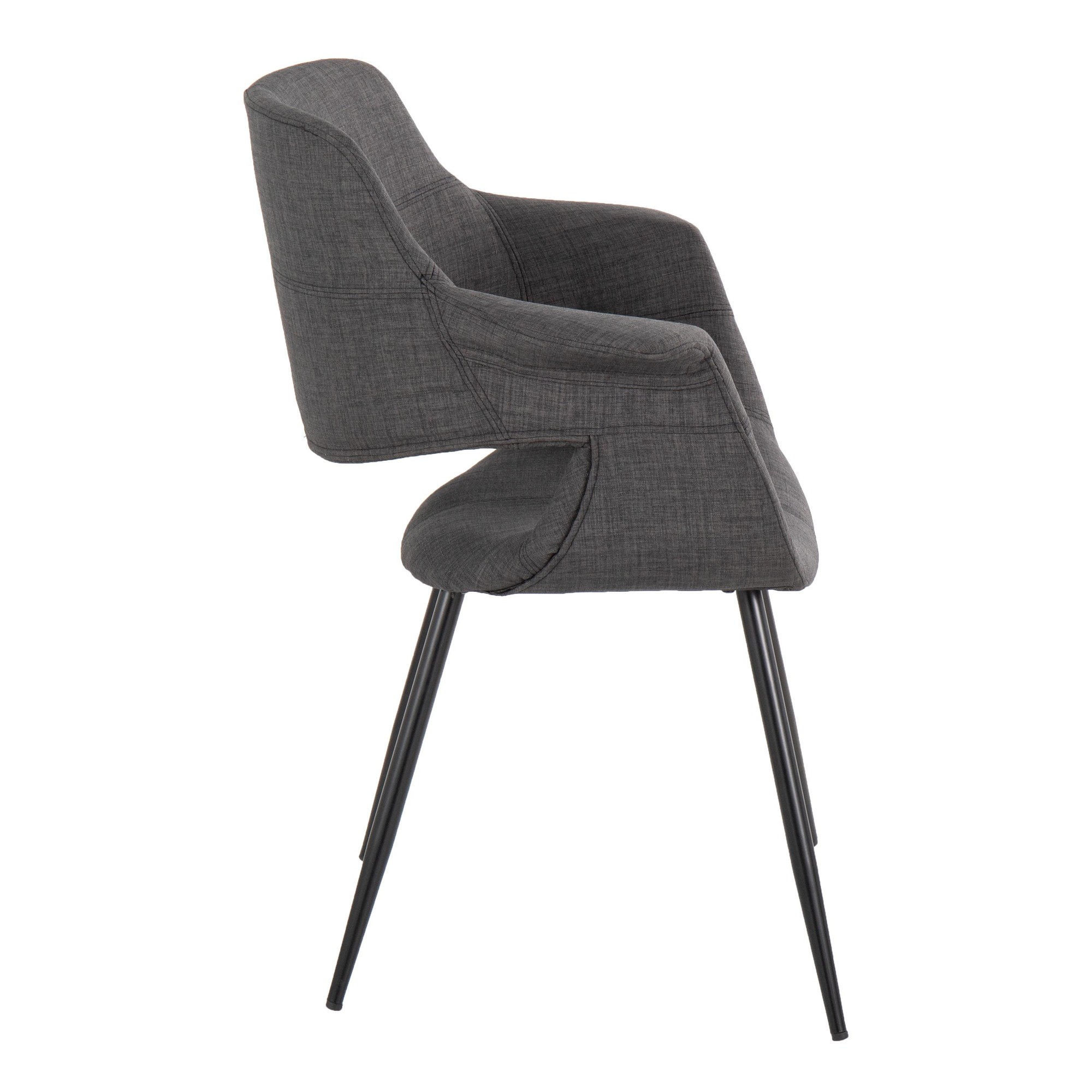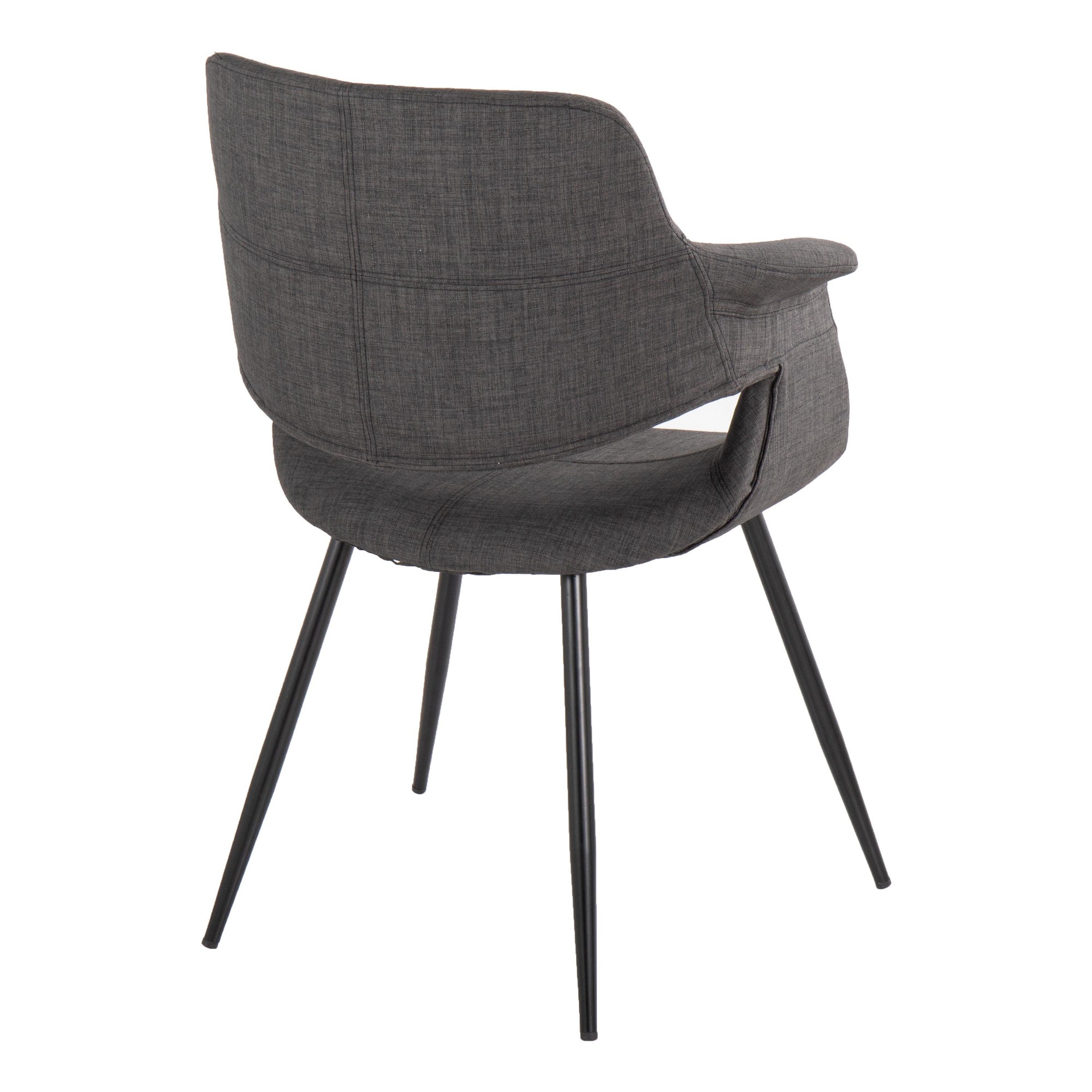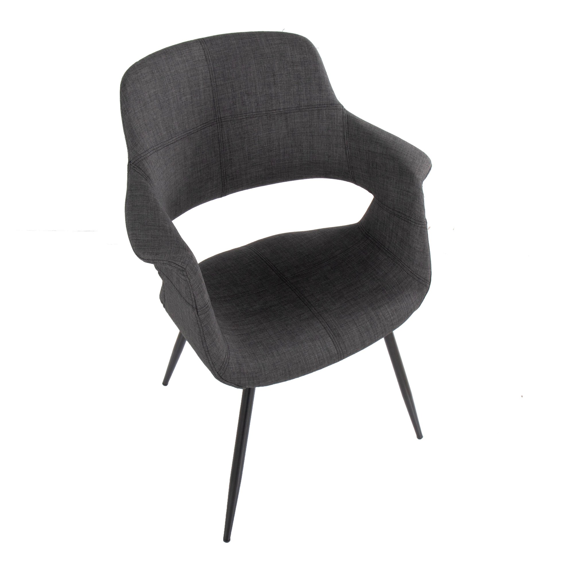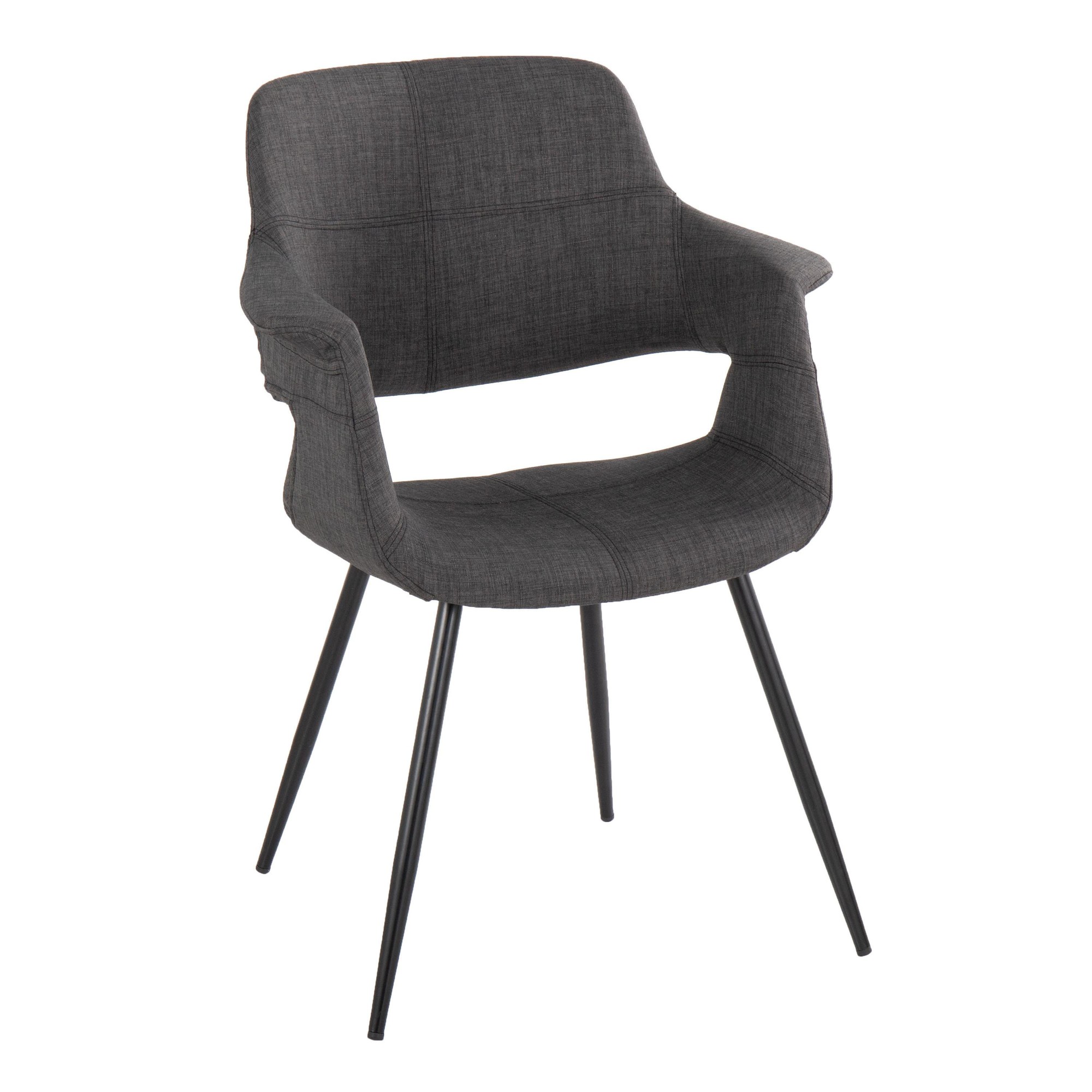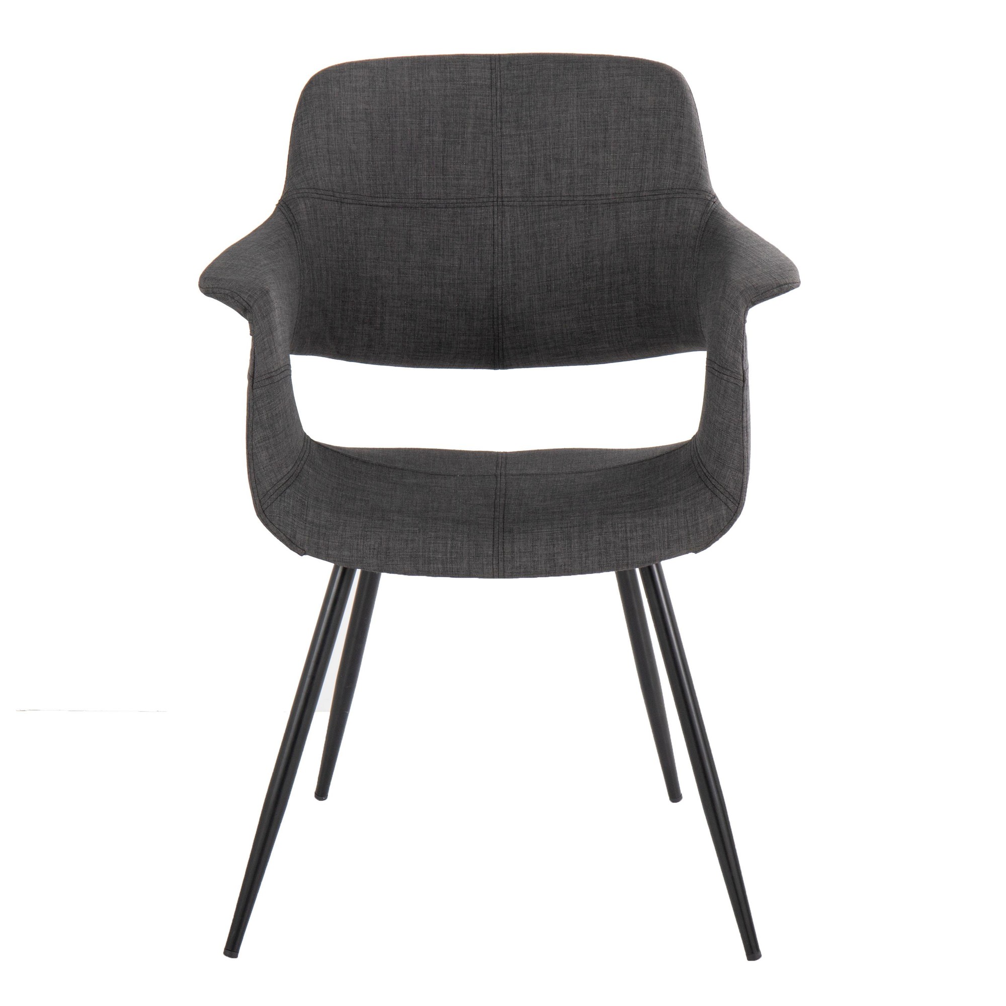 Add a touch of vintage charm to your man cave with these Vintage Flair Accent Chairs. With a sleek black metal frame and comfortable charcoal fabric upholstery, these chairs bring mid-century modern style to your dining room, living room, or home office. Enjoy the open design backrest and cushioned seat and armrests for ultimate comfort. This set includes two chairs. Assembly Required. Dimensions: 22″L × 26″W × 32.5″H. Seat Height: 16.5″. Weight Limit: 250 lbs. Material: Polyester Fabric, Foam, Metal.