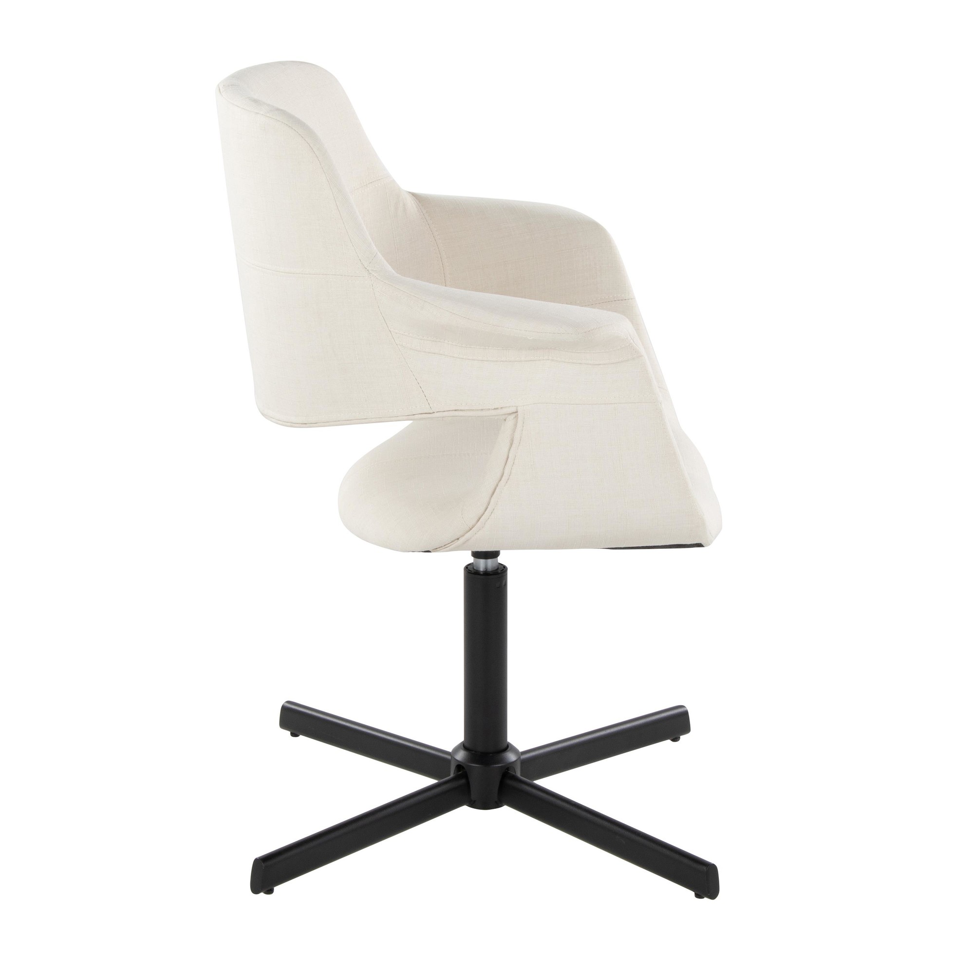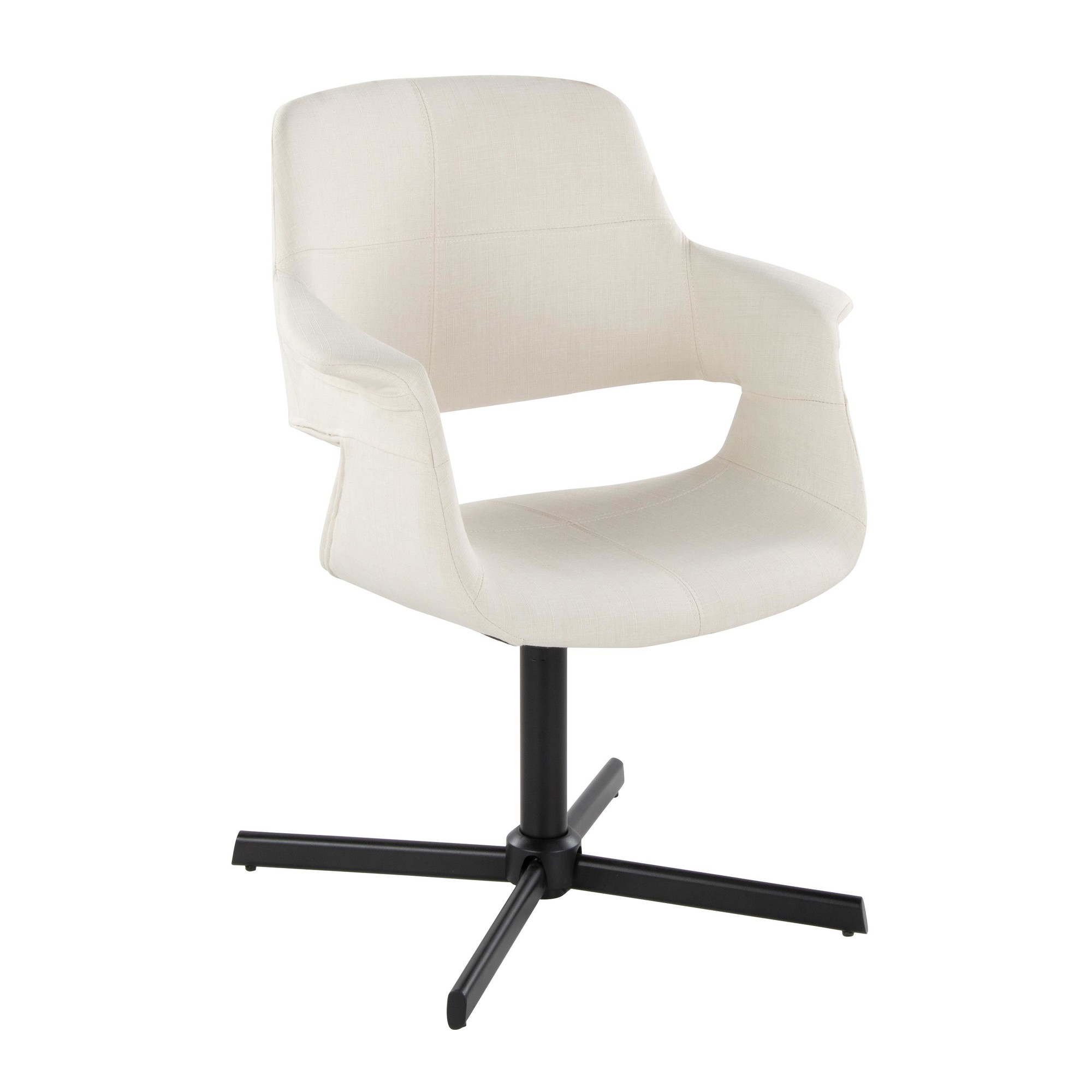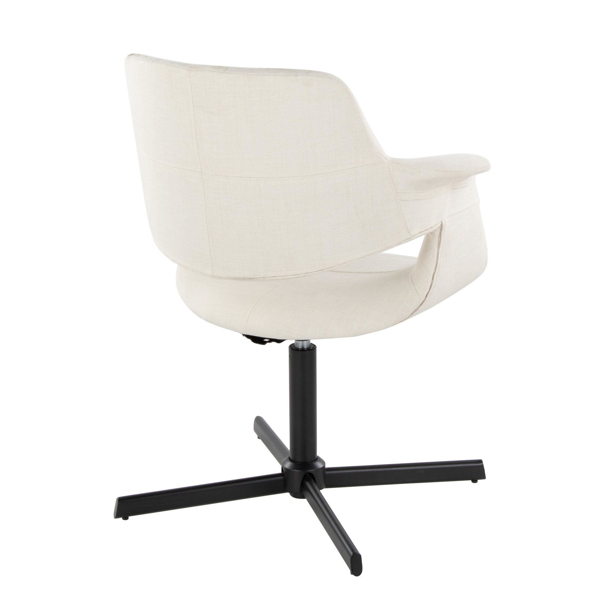 The Vintage Flair Cream Mid-Century Modern Swivel Accent Chair is a unique blend of retro charm and contemporary sophistication. This chair is a standout piece perfect for adding character to your office or living room. Its swivel feature and comfortable design make it as practical as it is stylish.