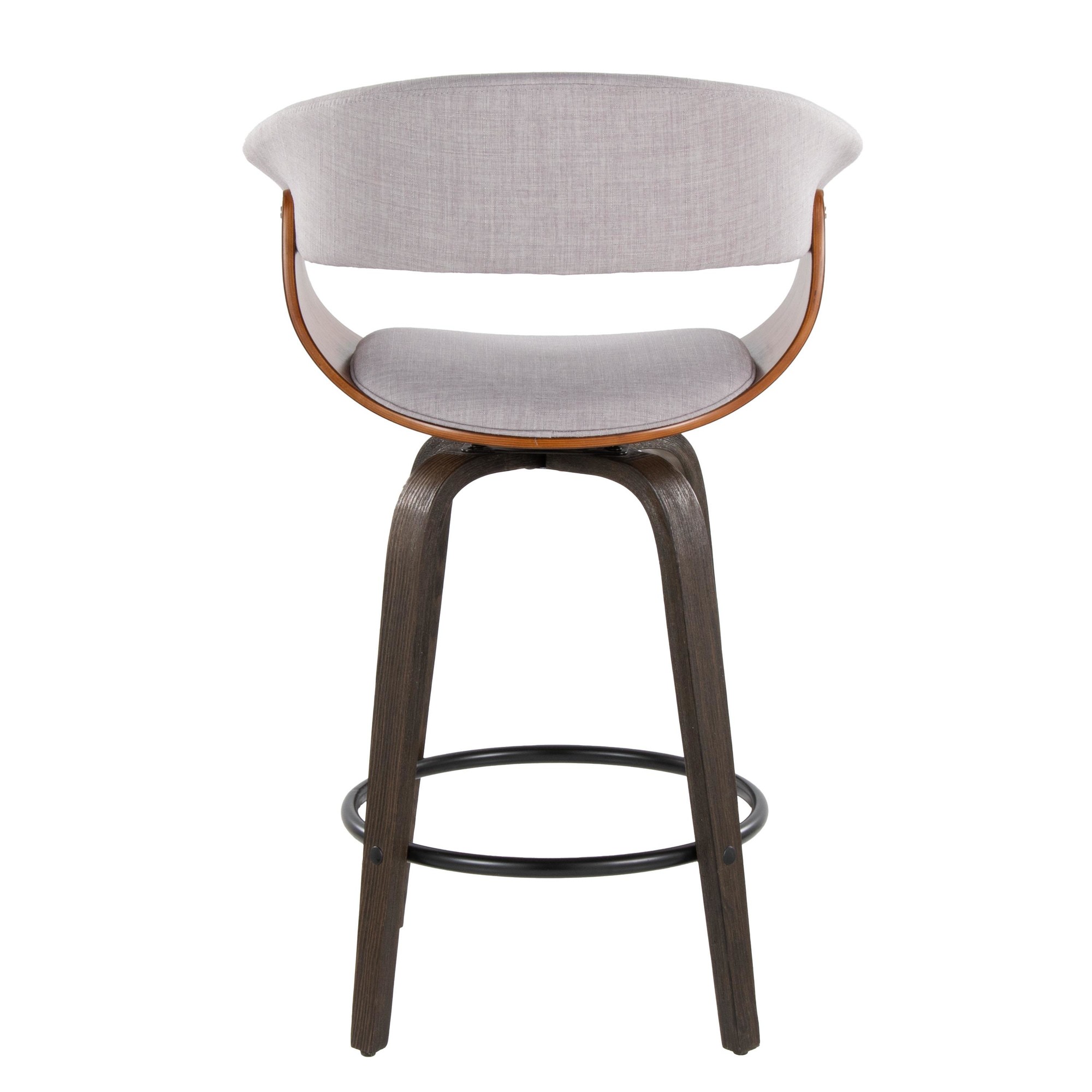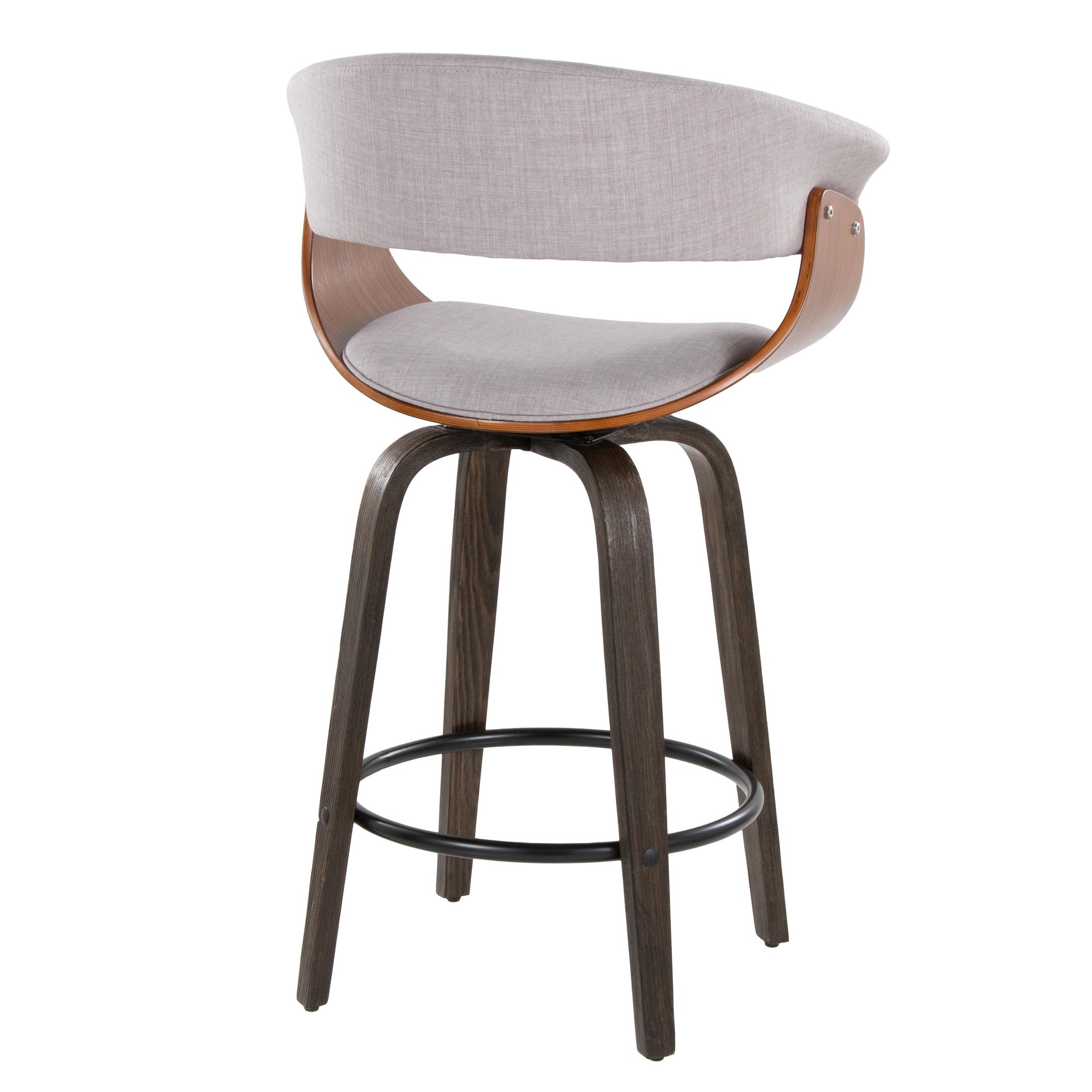 The Vintage Mod 26-Inch Mid-Century Modern Swivel Counter Stools are a statement piece for any space. These stools feature sophisticated rounded bent wood legs and a cushioned seat with an open back, designed for maximum comfort. Perfect for adding an impressive appeal to your kitchen or bar area.