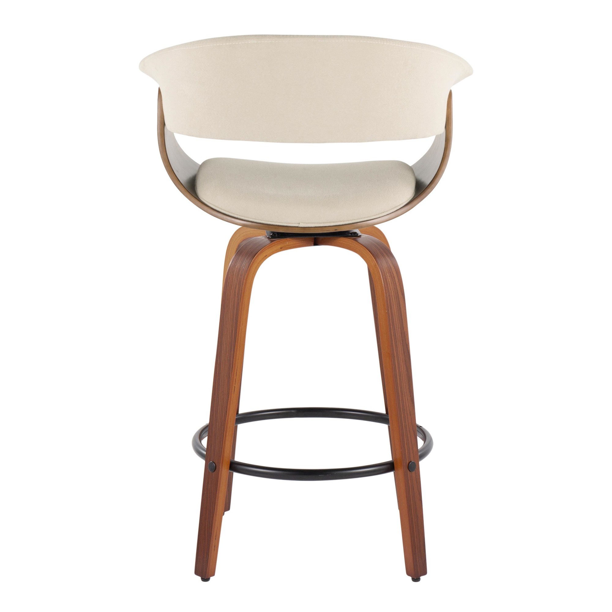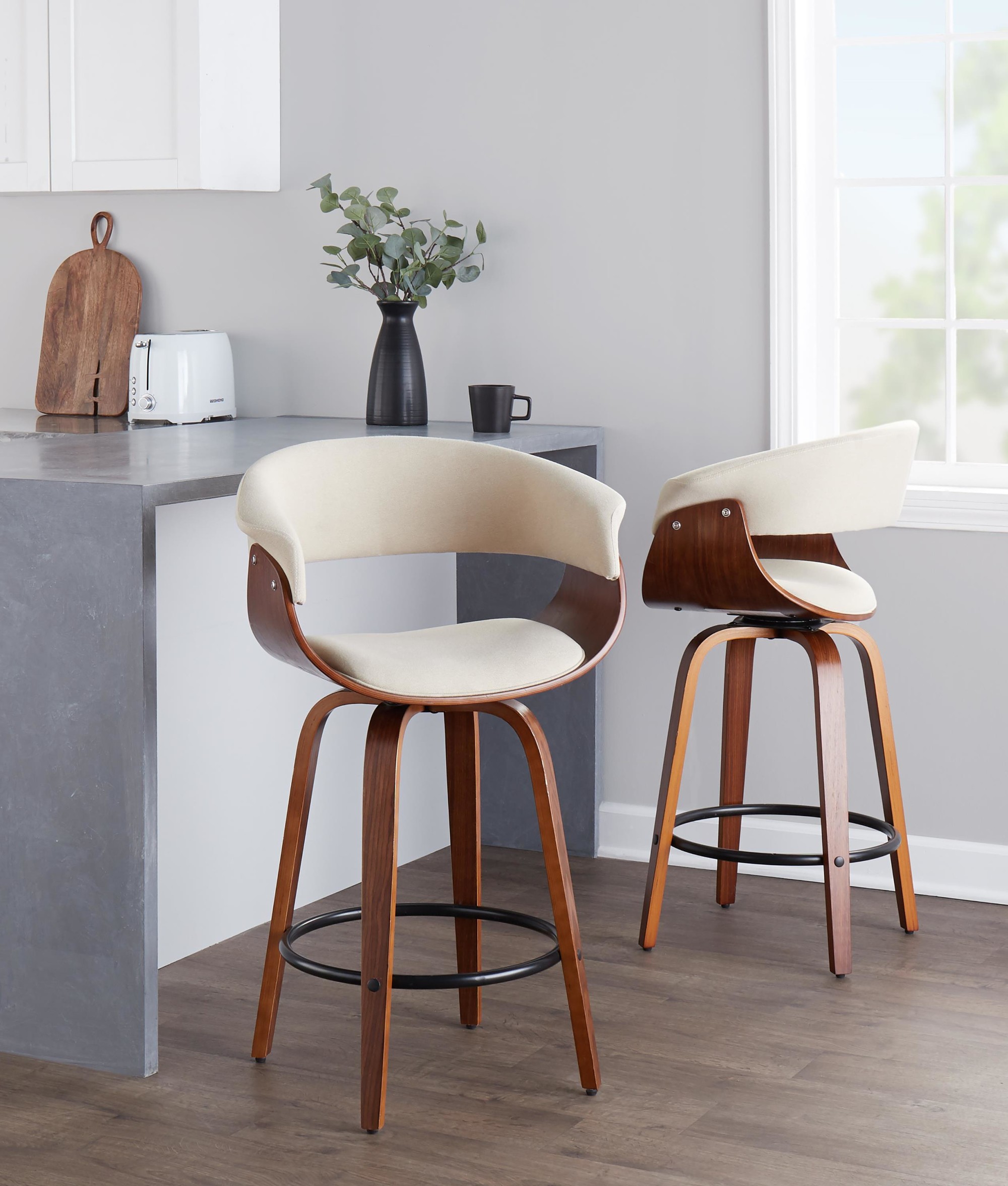 The Vintage Mod 26-Inch Walnut Cream Mid-Century Modern Swivel Stool is sure to make a statement, whether showcased on its own or as part of a set! These stools feature rounded walnut legs that radiate sophistication. The cushioned seat and open back are designed for maximum comfort, making this barstool the perfect fit for any setting. Add it to your kitchen or bar for an impressive appeal!