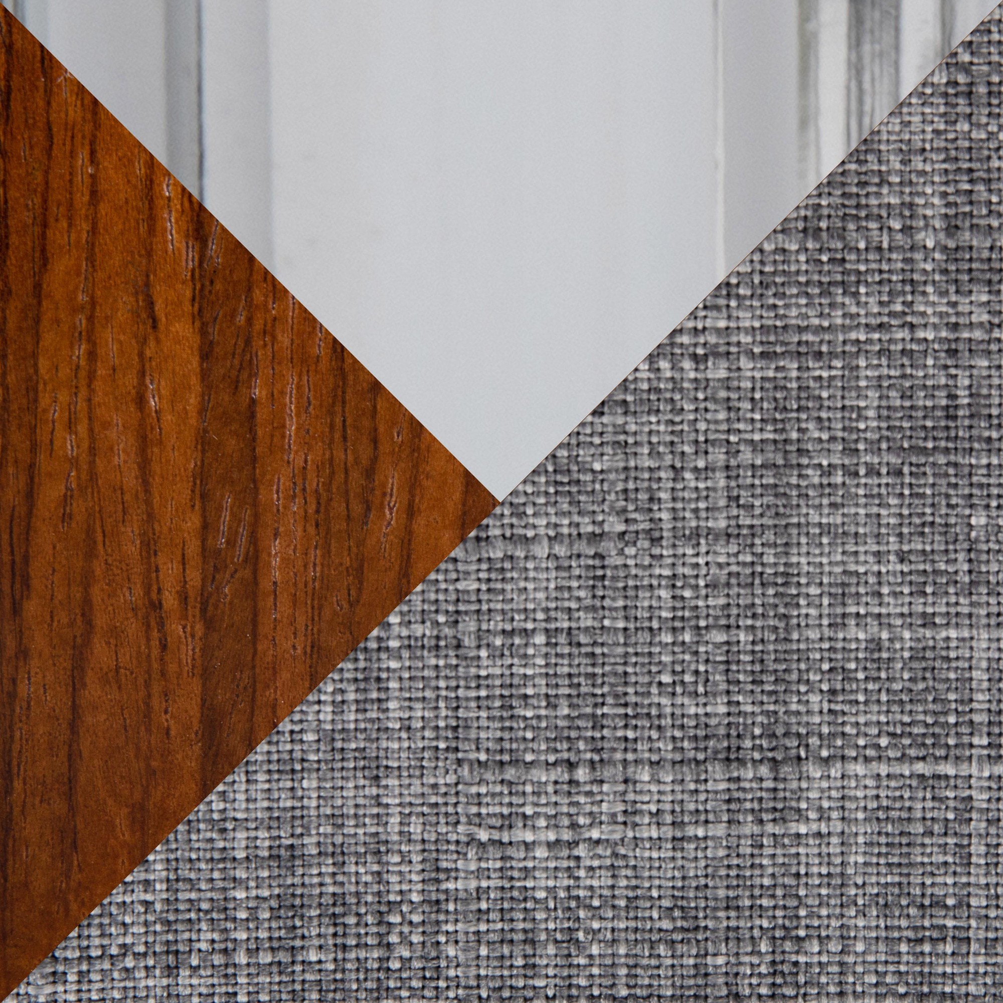 - Color: Walnut Wood, Chrome Metal, Light Grey Fabric
