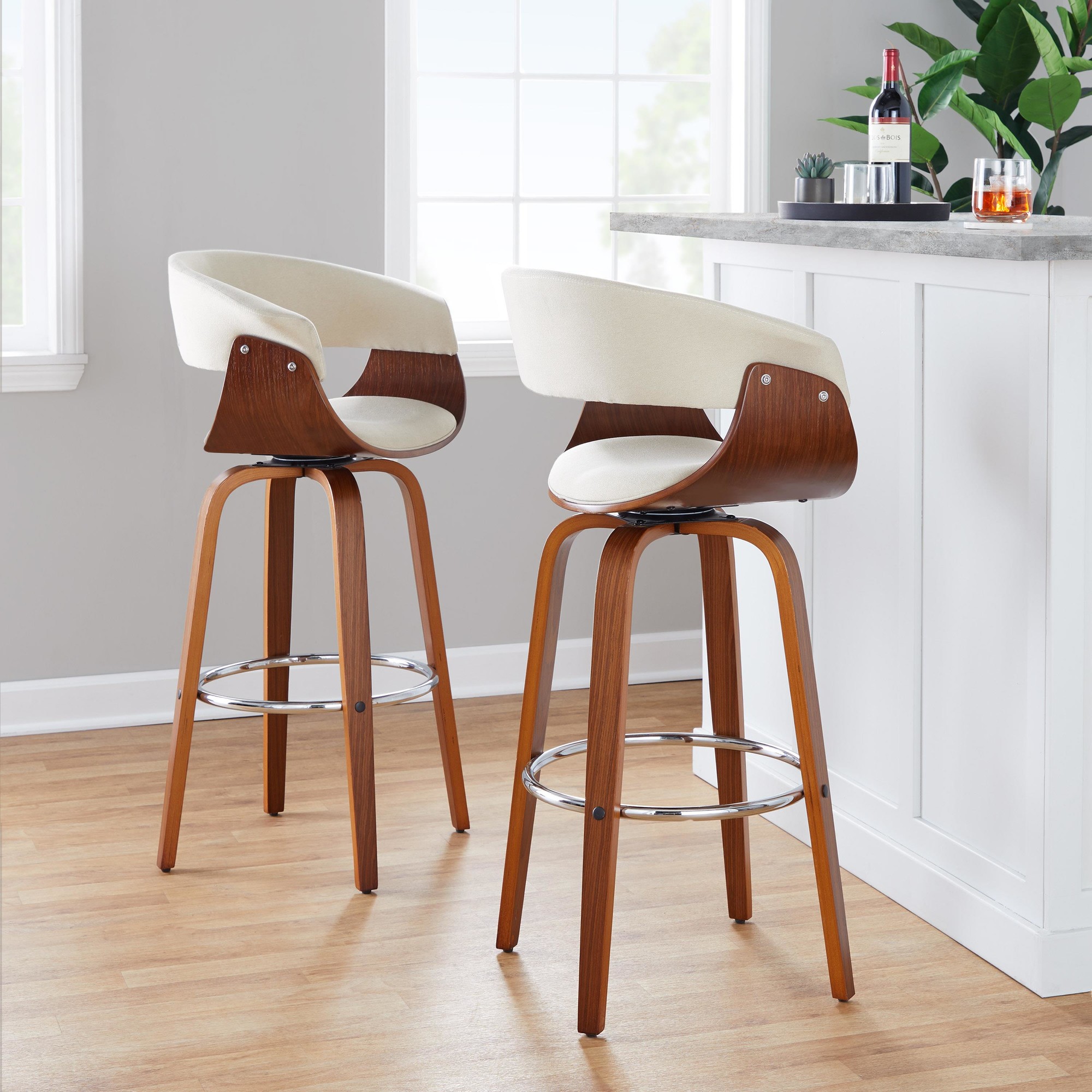 Looking to add some mid-century flair to your space? The Vintage Mod Fixed-Height Barstool is a perfect choice. With its rounded walnut legs and comfortable, cushioned seat and open back, it offers both style and comfort for any setting. Add these barstools to your kitchen or bar area for an impressive appeal. These stools are sold in sets of two.