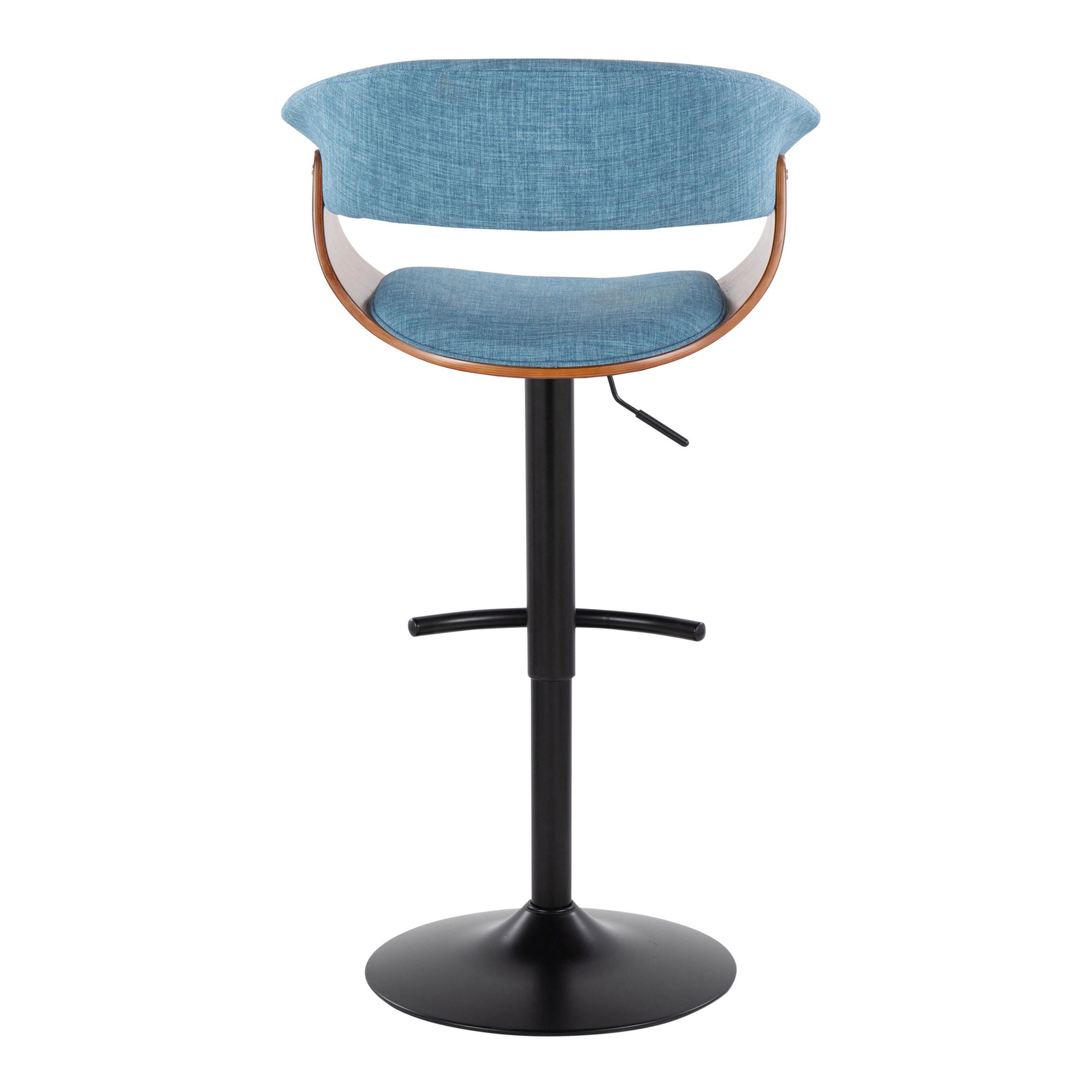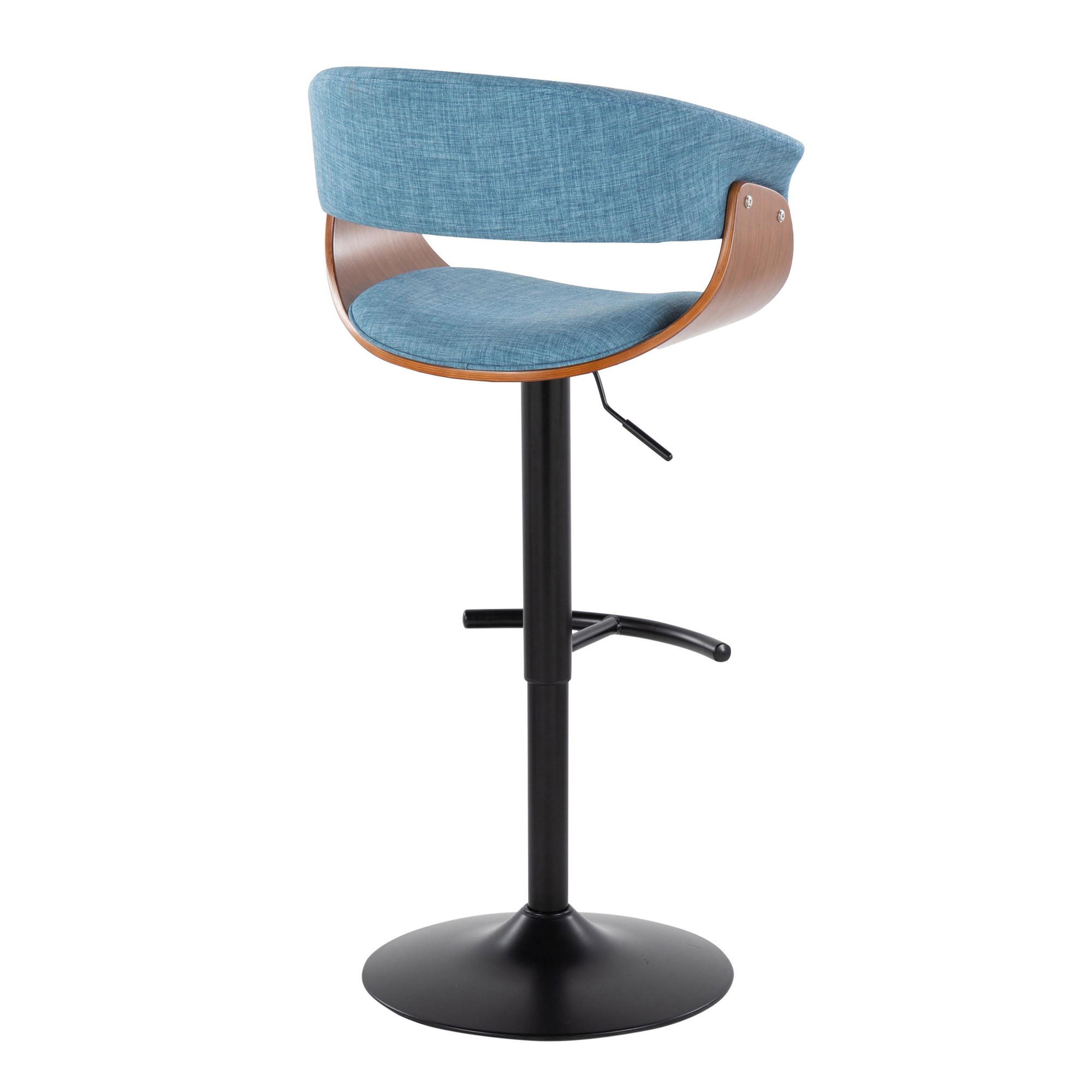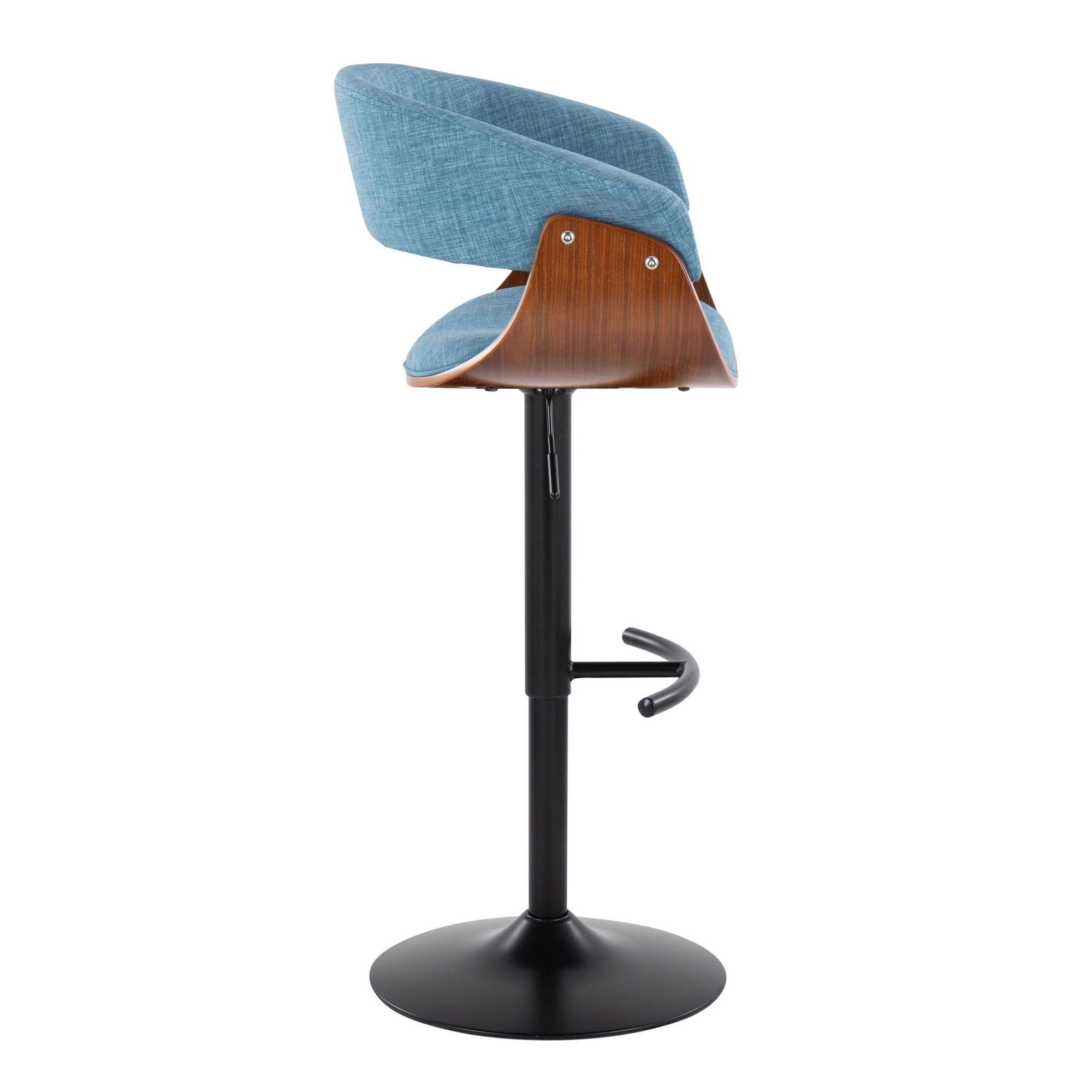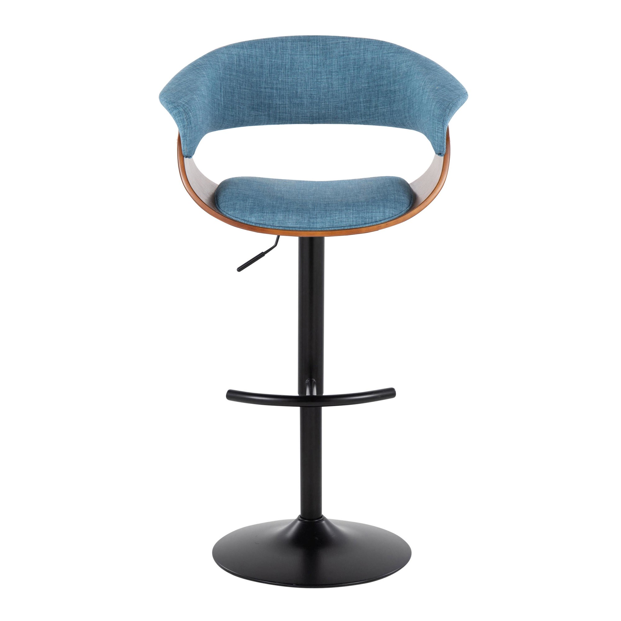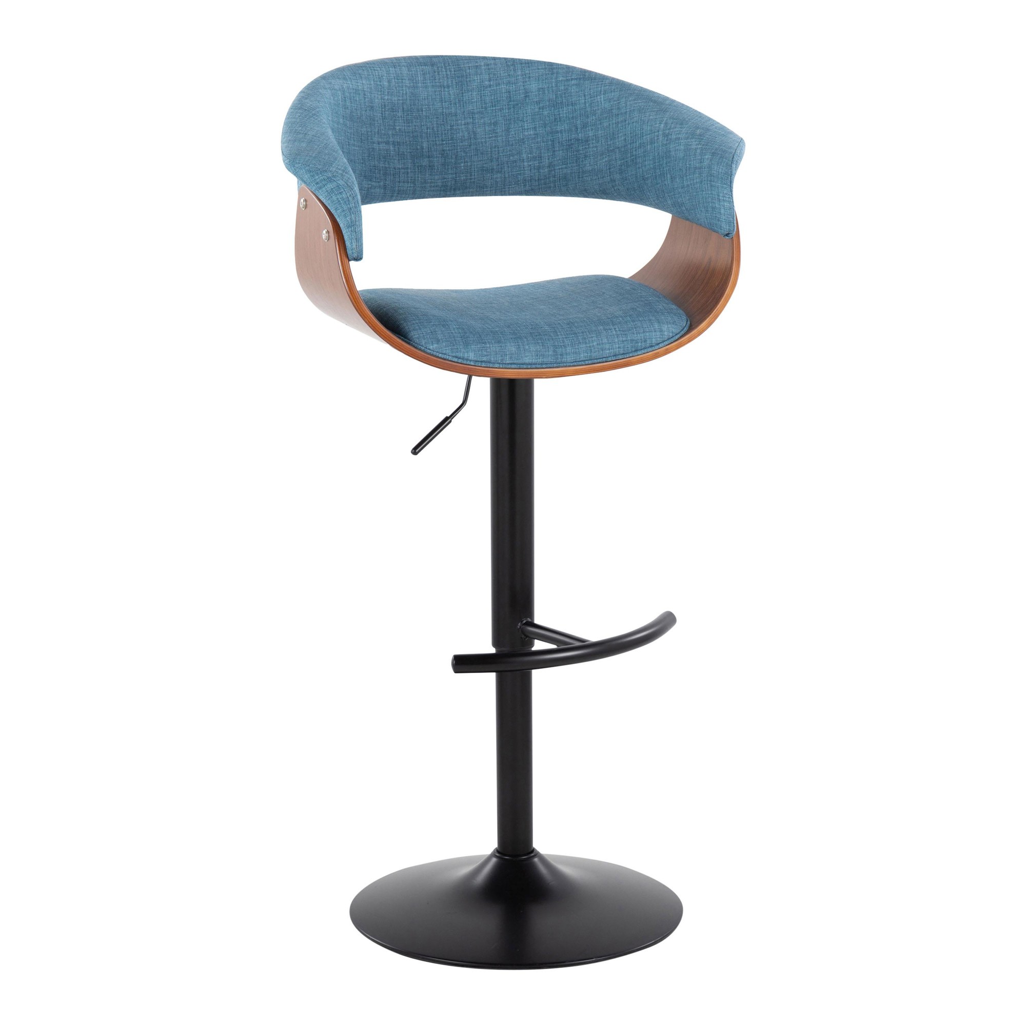 Add style and comfort to your man cave with the Vintage Mod Blue Mid-Century Modern Adjustable Swivel Barstool. These barstools boast mid-century modern styling and an adjustable height with a 360-degree swivel. The curved open backrest is upholstered in a stylish blue fabric. The black metal base includes a convenient “T” footrest. This set includes two barstools, perfect for your bar or game room. Assembly Required: Yes. Color: Black Metal, Walnut Wood, Blue Fabric. Material: Polyester Fabric, Foam, Metal, Wood. Dimensions: 16.5″L × 23.25″W × 37.5-42.75″H. Priced and sold in pairs. Indoor use only. Weight limit: 250 lbs (each).