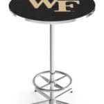 Upgrade your bar, game room, or man cave with this premium 42-inch pub table. Designed for durability and style, it combines a sleek chrome finish with a scratch-resistant, vibrant laminate top that highlights its bold design. The sturdy construction and adjustable floor glides ensure stability, while the easy assembly makes it a convenient addition to your space. Perfect for entertaining guests or showcasing your personal style, this pub table is built to last and impress.