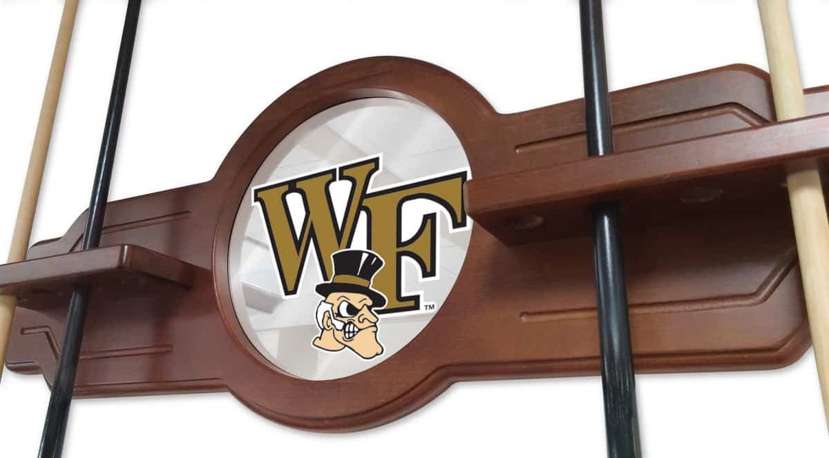 Elevate your game room with this premium Wake Forest University Black Logo Cue Rack, designed to showcase your team spirit while providing exceptional functionality for pool enthusiasts. This meticulously crafted cue rack offers a sophisticated solution for storing and displaying your pool cues with style and precision.